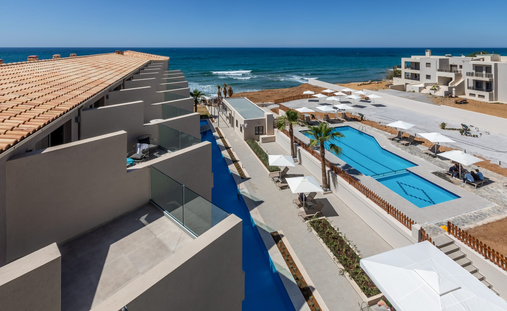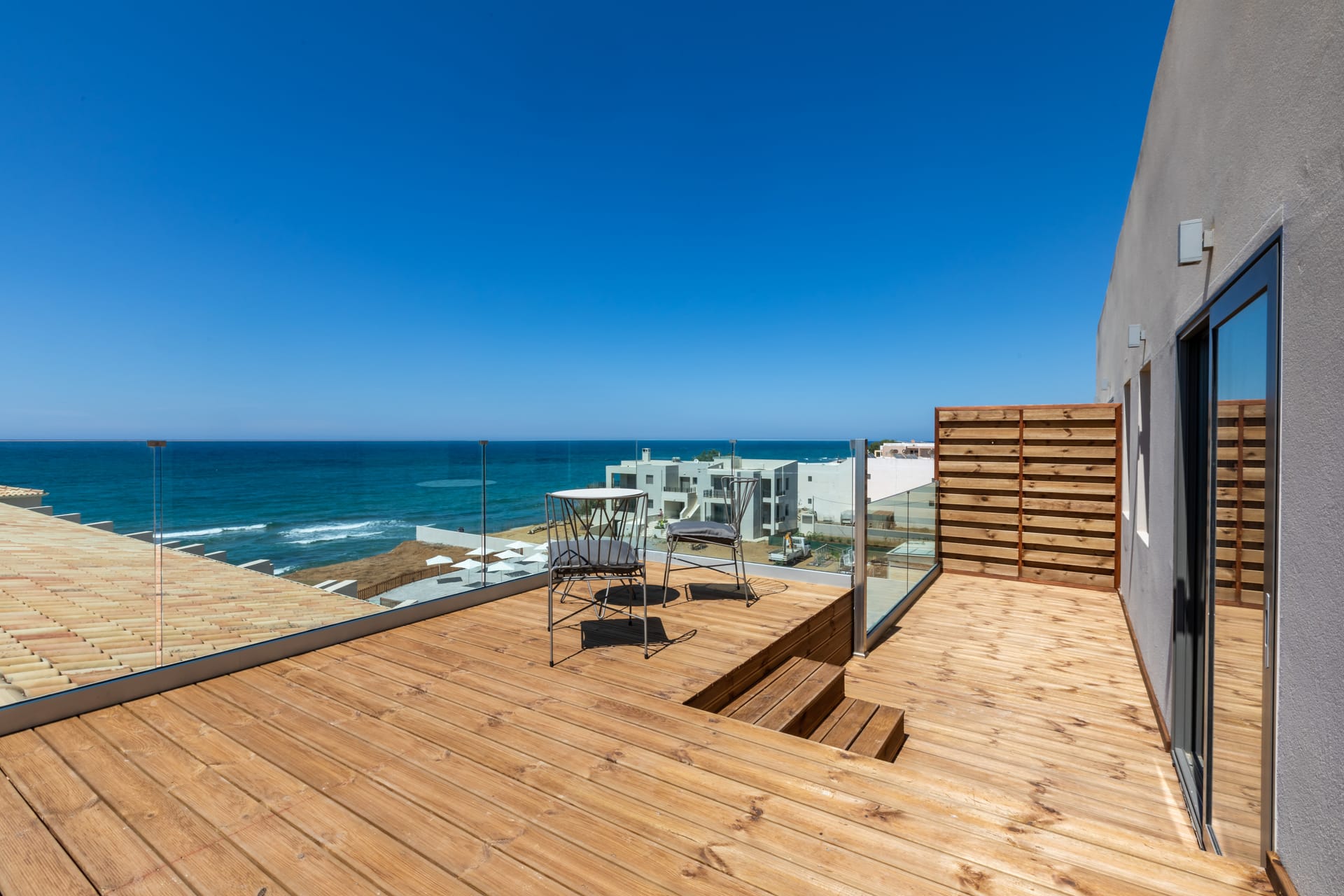 Our comfortable and spacious Suite with SeaView is decorated with a minimal design and warm coloυrs, creating a relaxing ambience, ideal for romantic & relaxing holidays.