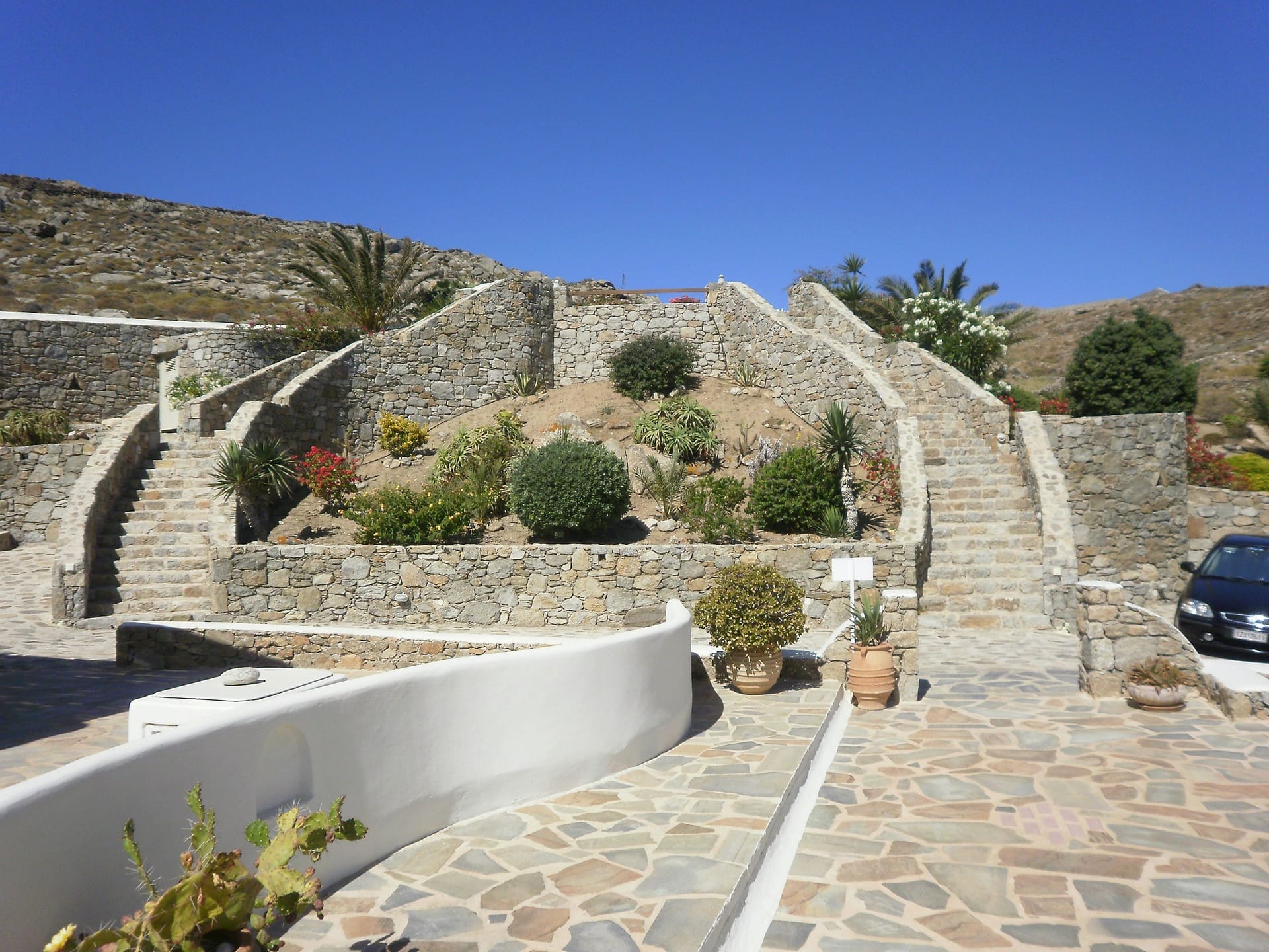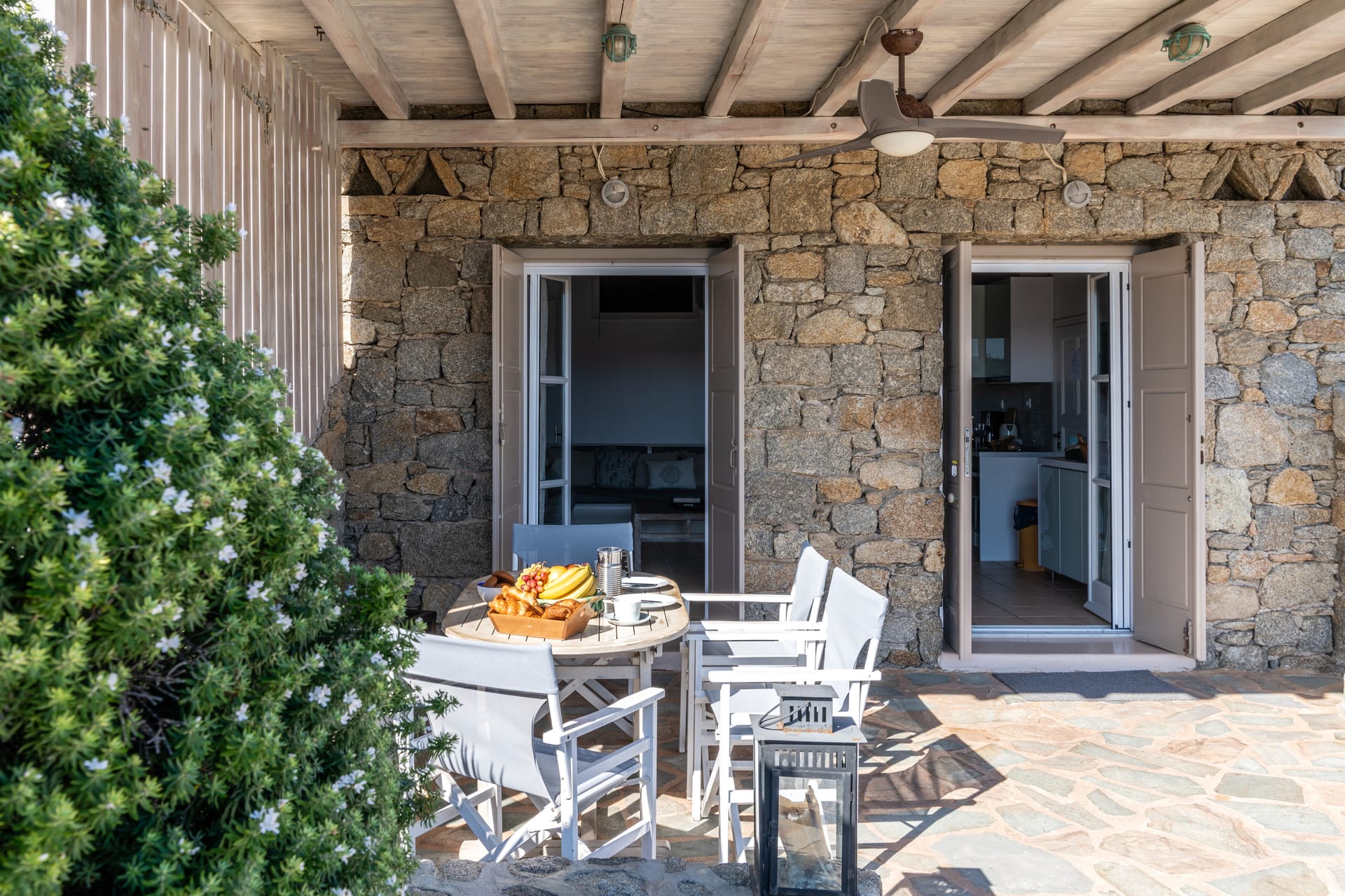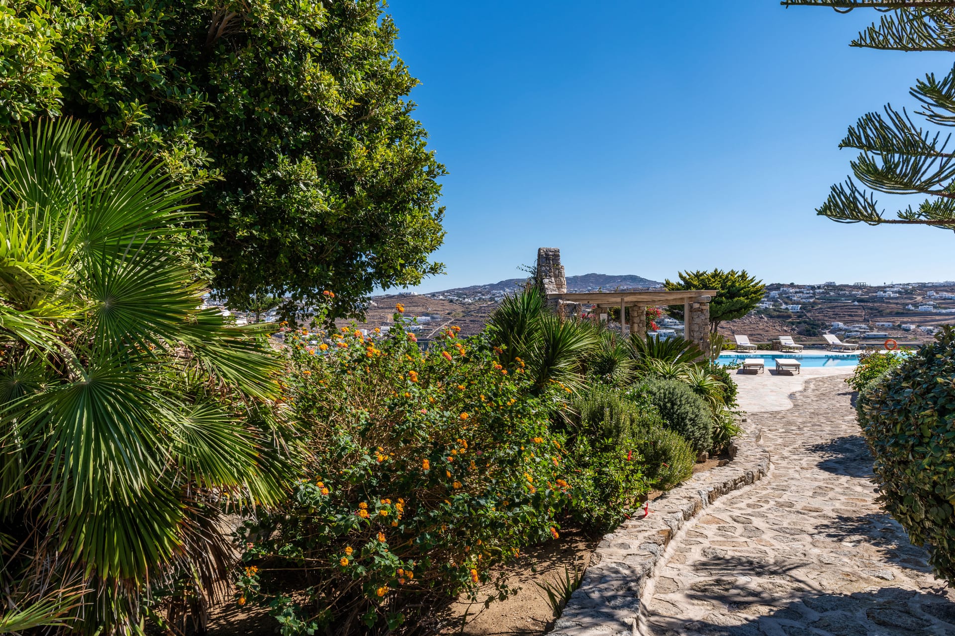There is a private outdoor area just for you can dine or relax overlooking the Aegean see and Mýkonos town and the swimming pool