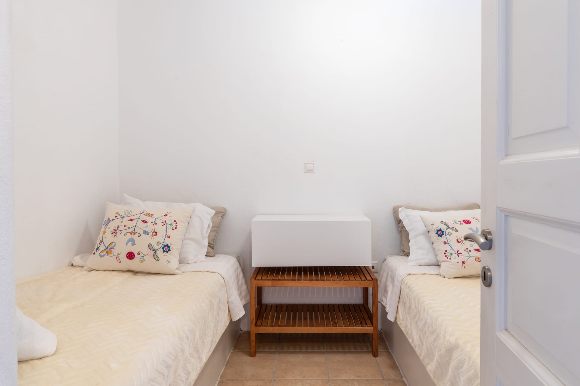 The house consist of 2 separate bedrooms, one room with a double bed and another room with 2 single built in beds.