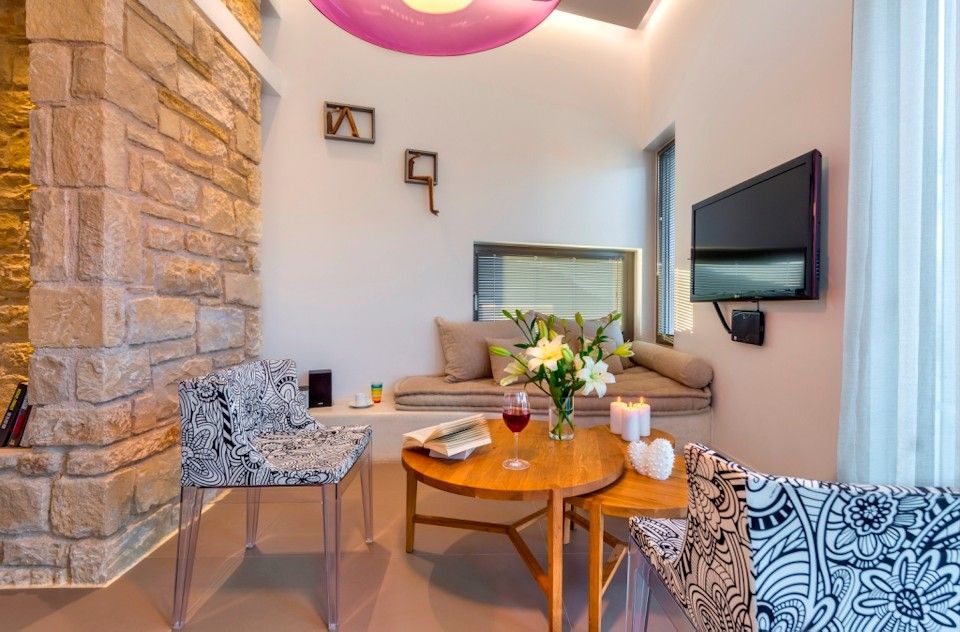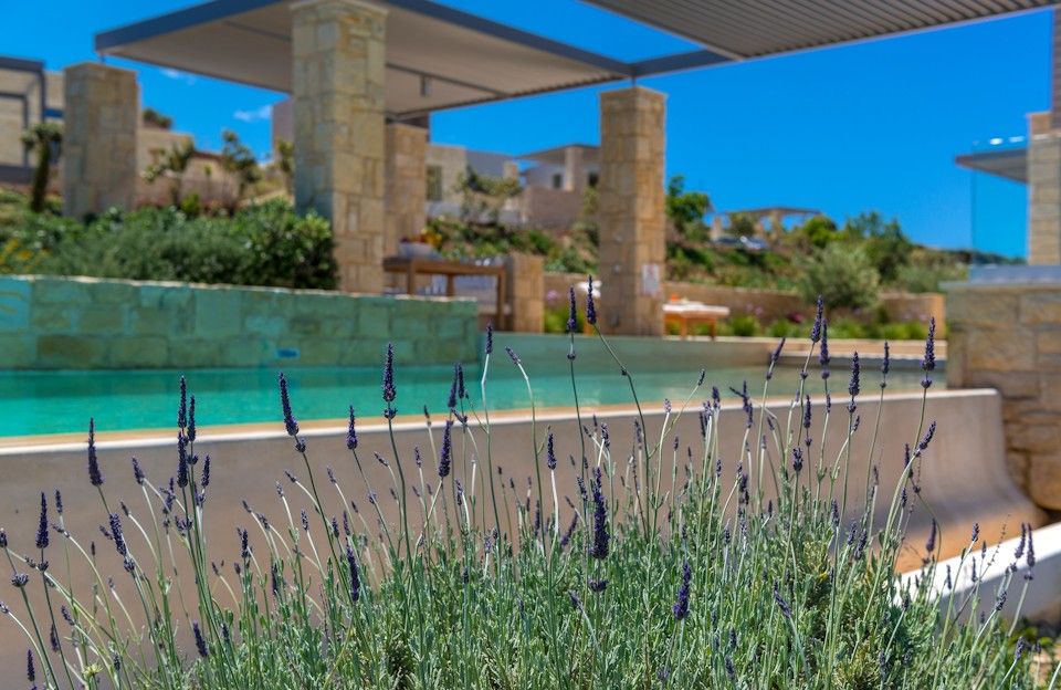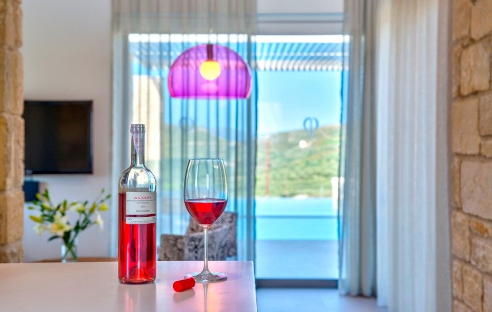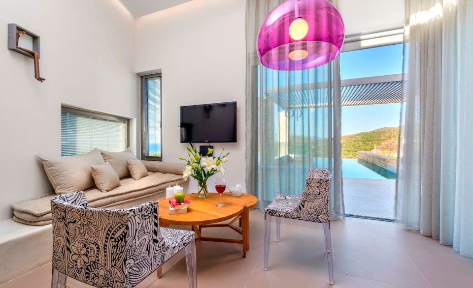 Picture windows let in the light and provide uninterrupted views over Kissamos Bay and across gardens planted with endemic shrubs, flowers and trees and are complimented by traditional stone walls that blend into the natural environment.The private infinity pool has full-width Roman steps overlooking olive groves towards the Aegean.