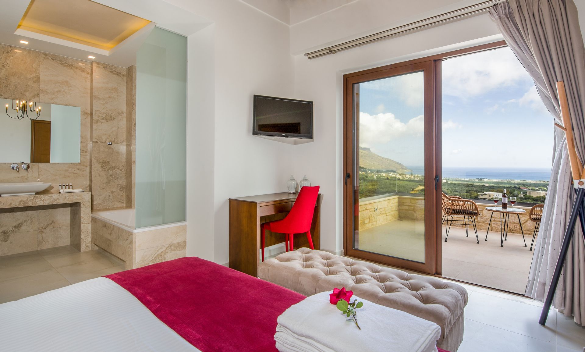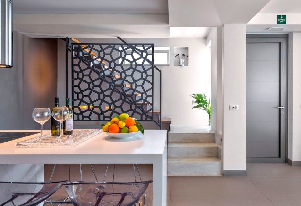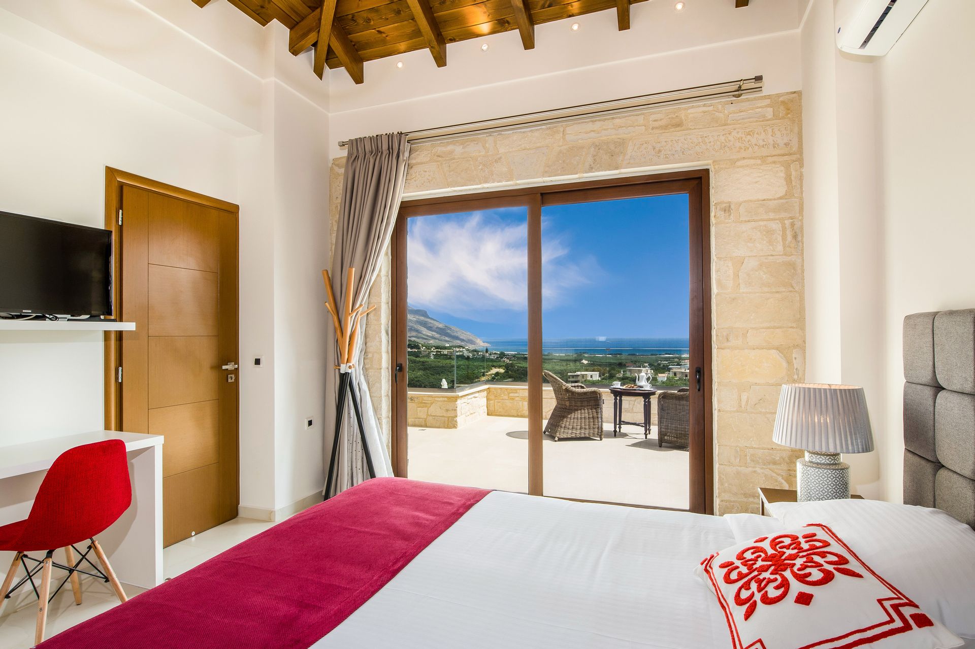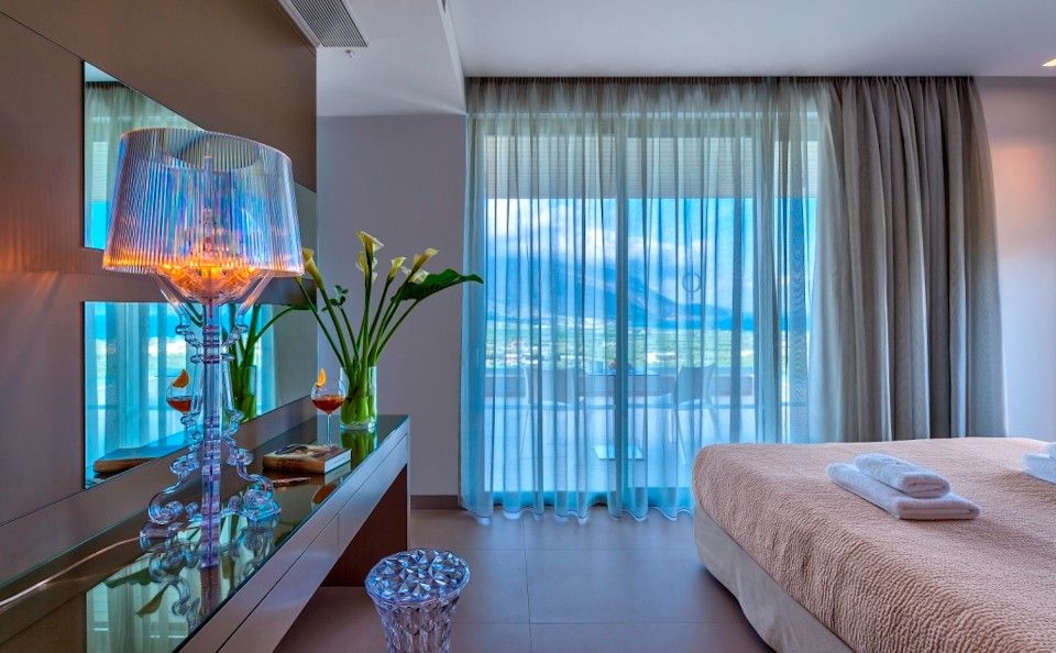 A sister property to the larger villa Thalassa, the living space of Charisma is over two distinct floors and features large “picture” windows that bring in natural light and offer impressive panoramic views.