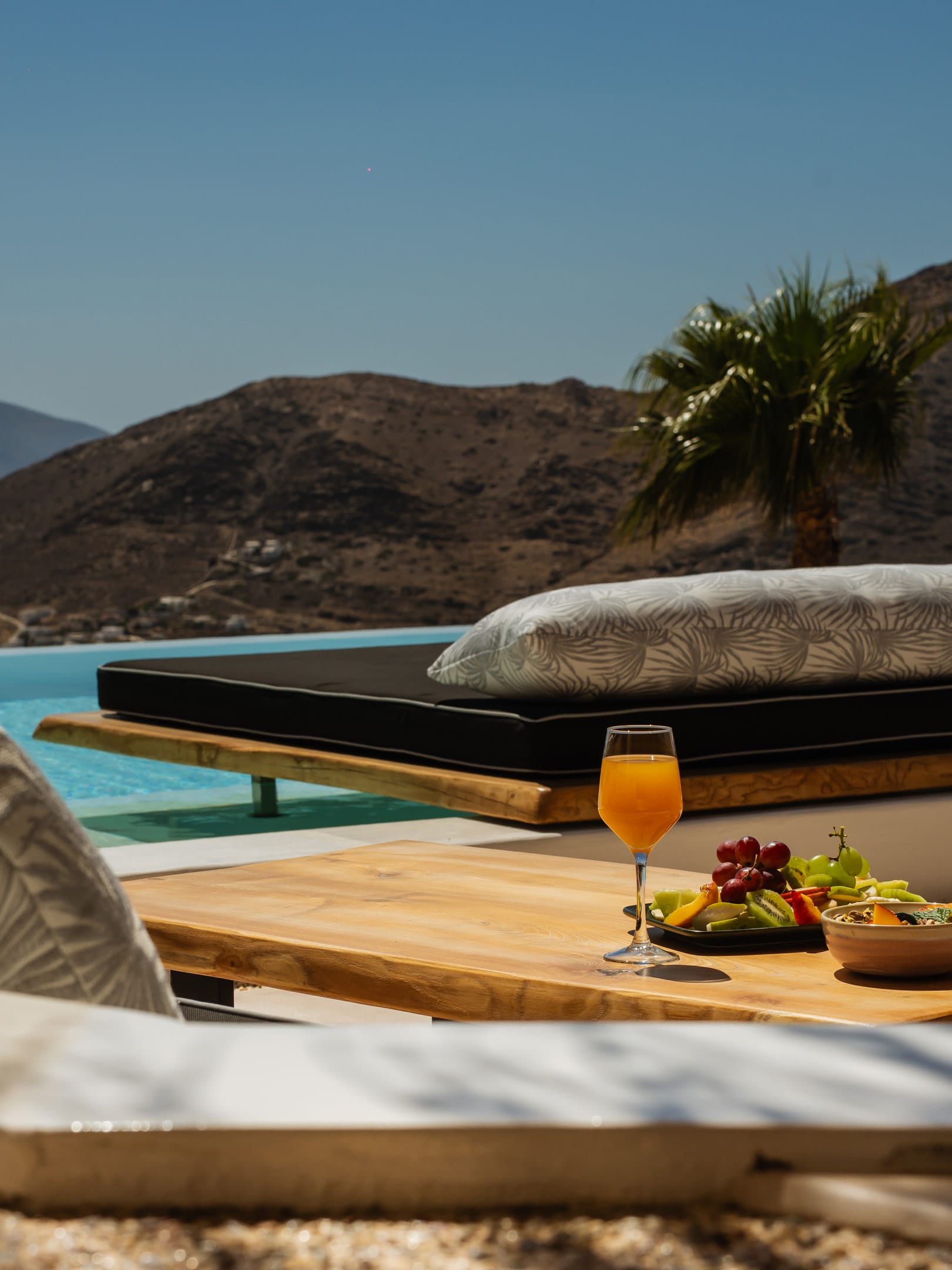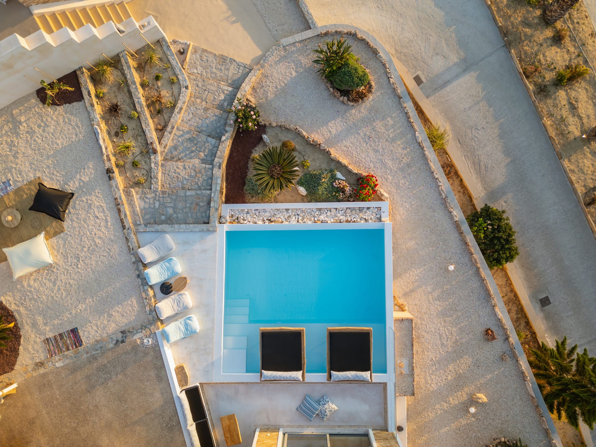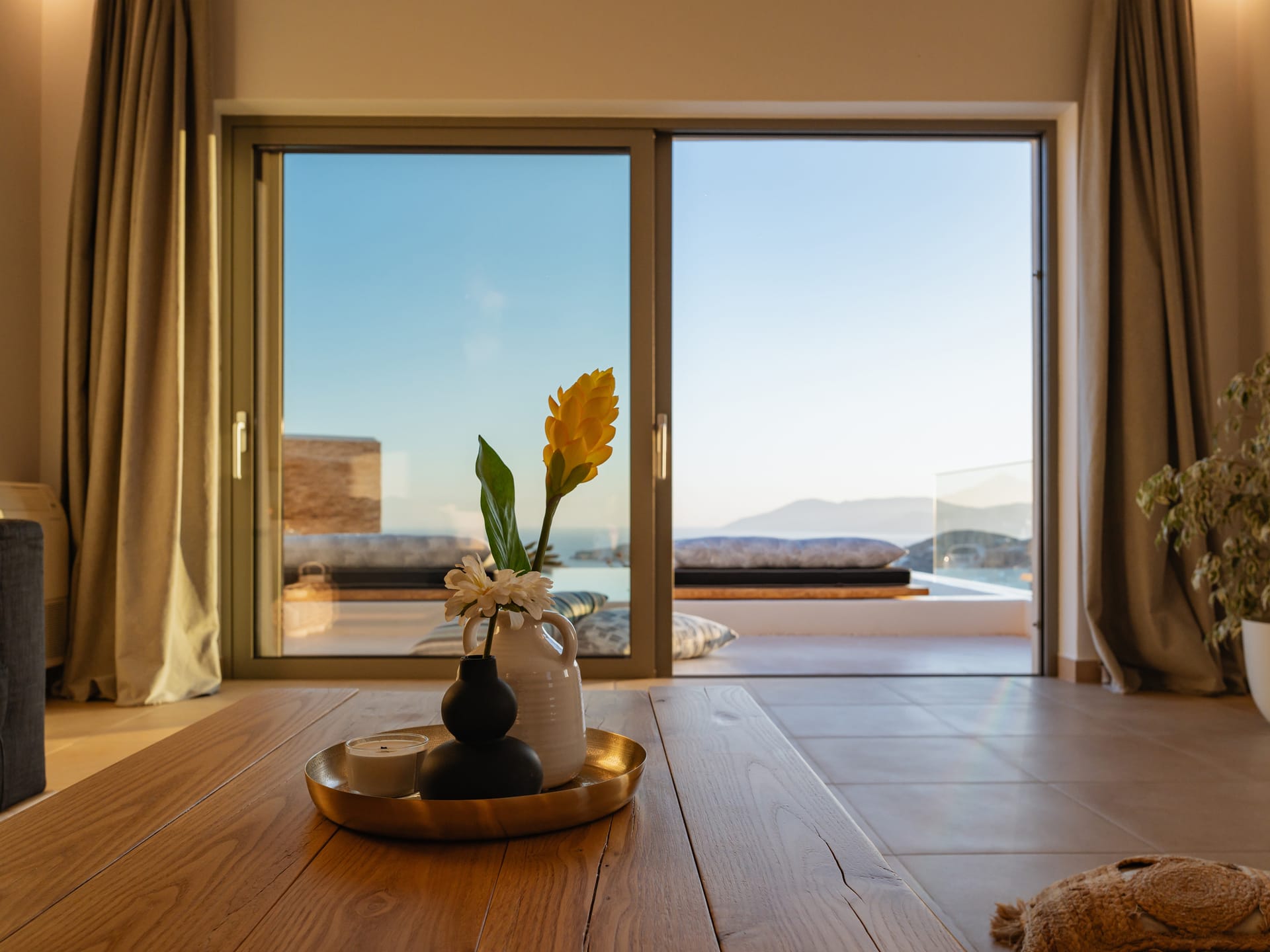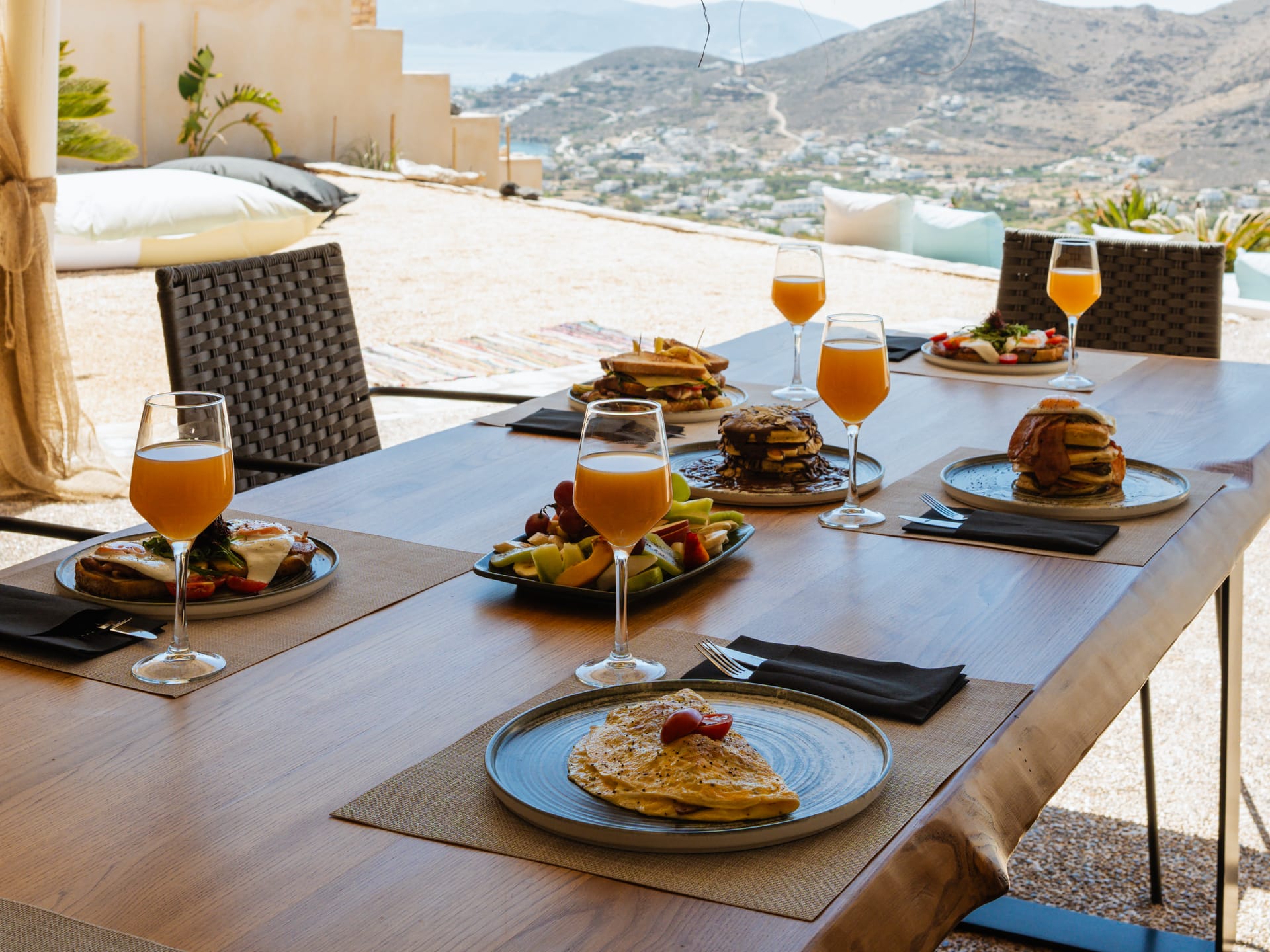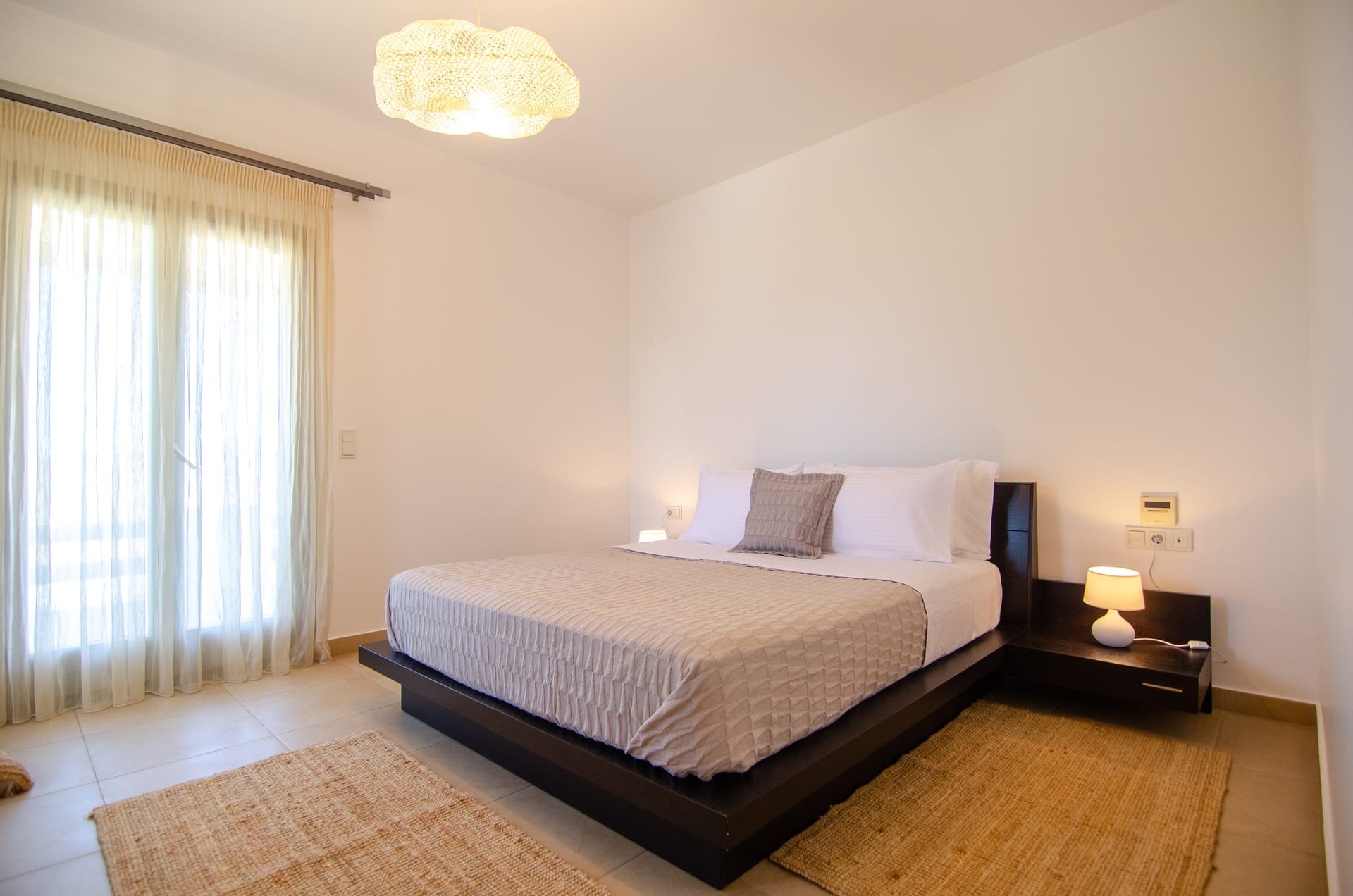 Independent Villa with great views and beautiful sunset. The villa is located in a quiet part of Ios Bouris.Can accommodate up to 8 adults as there are 4 bedrooms and 4 bathrooms , a big kitchen area ,dining table and a living room that looks the outside pool area and the sunset !The outside area has a private pool overlooking the sunset,sitting area ,dining table and barbecue facilities.