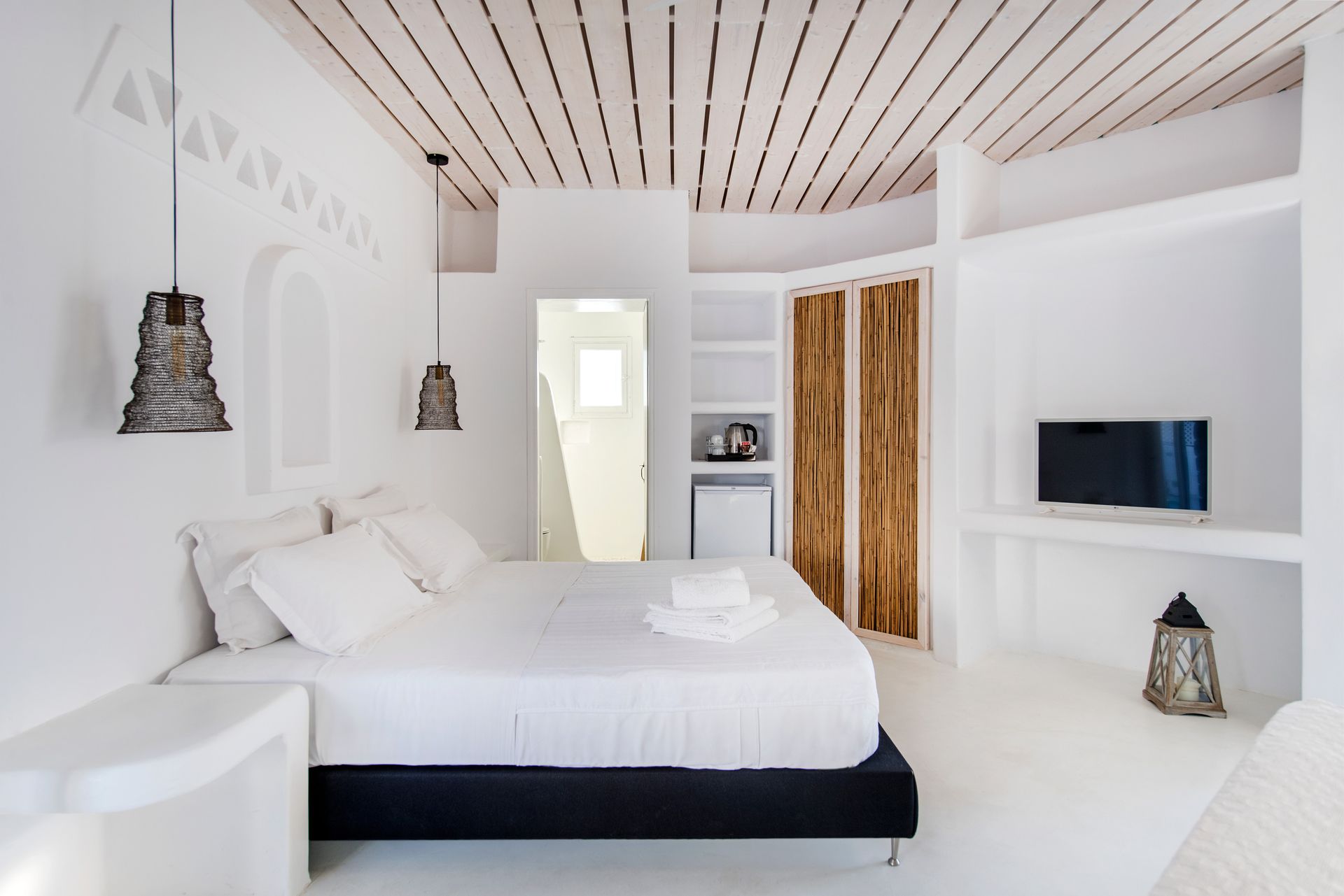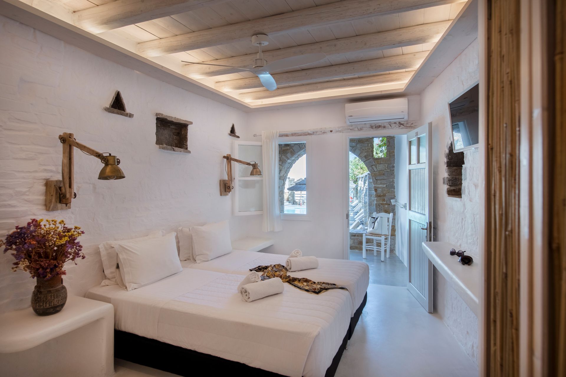 Brand new type of double/twin rooms with Contemporary interior design for the minimal style admirers with Refreshing opening to a balcony with pool views. Modern esthetic for the bathroom featuring the Parian built type design. This room has queen sized beds.
