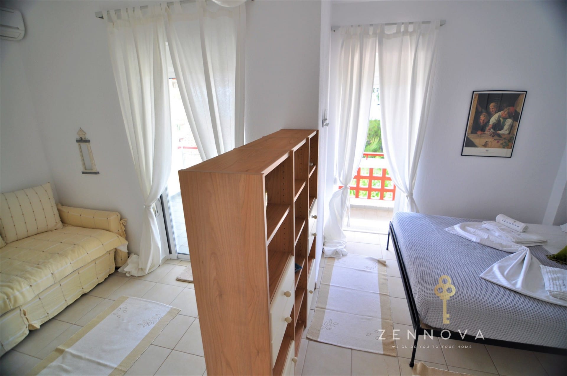 It consists of a single space kitchen (fully equipped) and living room, 2 bedrooms , a bathroom with a shower and a large beautiful veranda, first on the waters, from which you will enjoy amazing sunsets. It is located in front of a sandy beach and 5 minutes walk from the village of Siviri.
