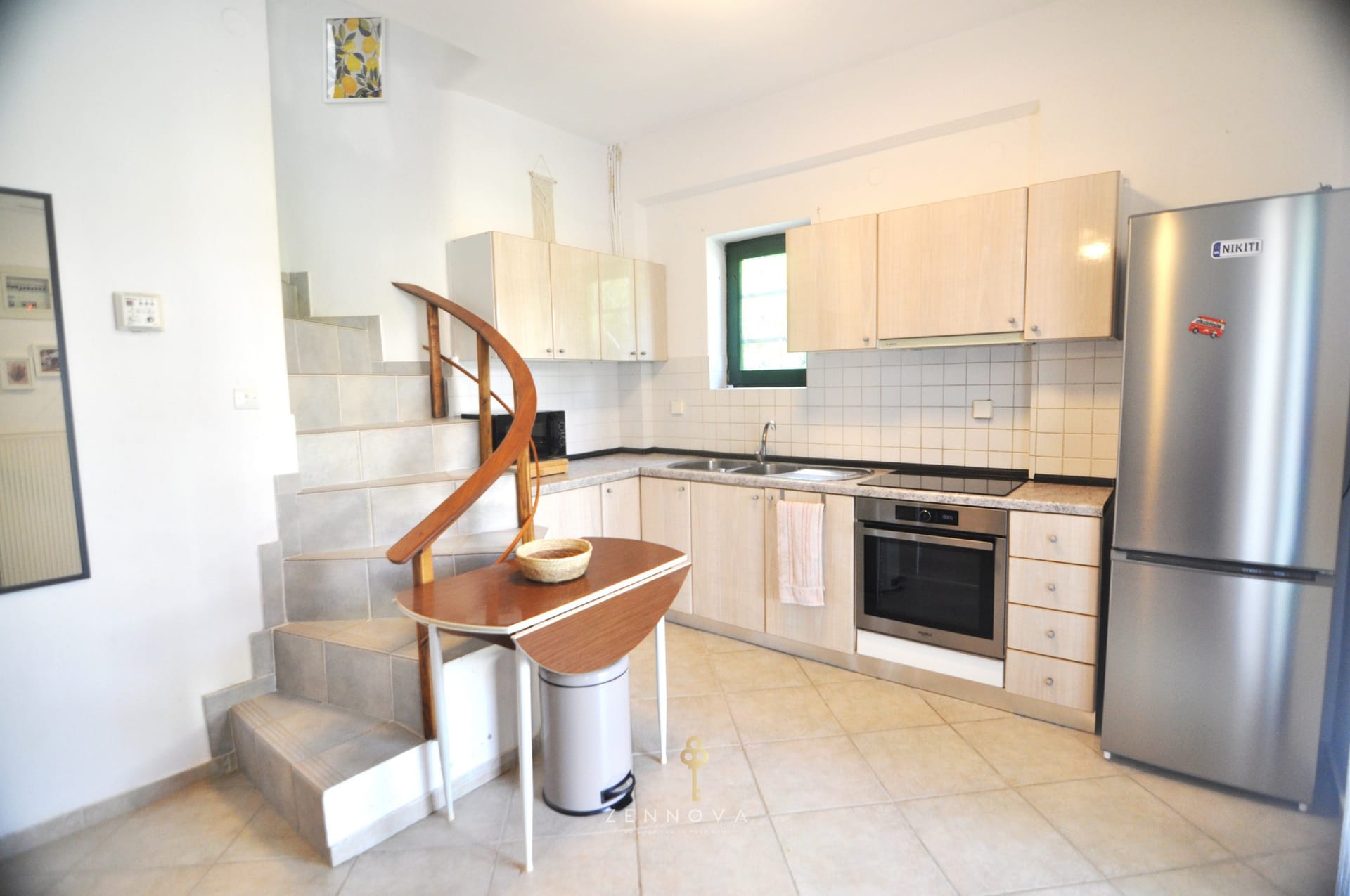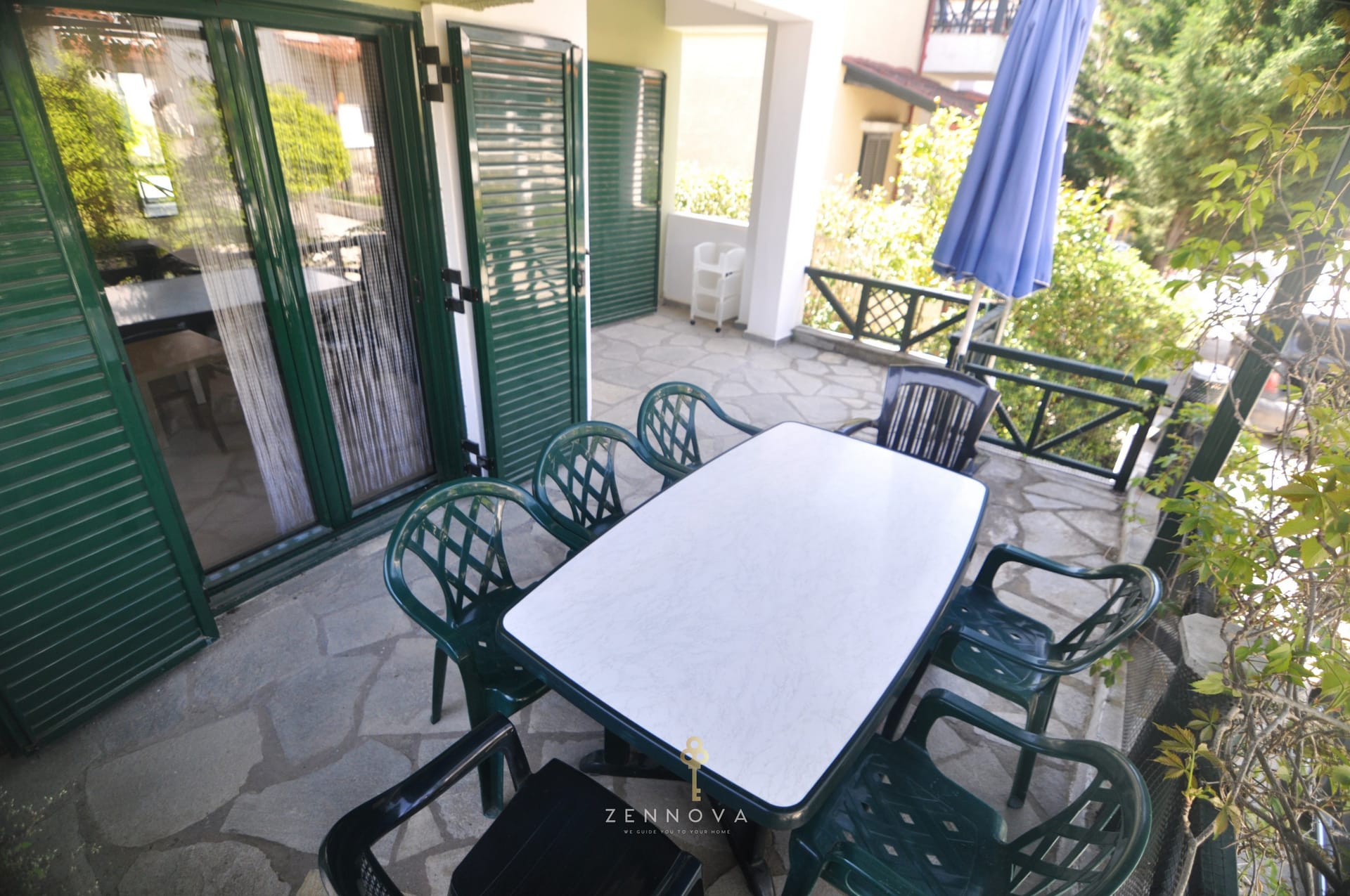 Enjoy your holidays in Nikiti Halkidiki in this bright and spacious maisonette, just 50 meters from the sandy beach! The house is located in a quiet location on Antheon Street and has a private garden, ideal for families or groups of friends looking for moments of relaxation by the sea.