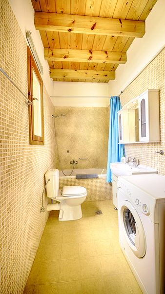1 bathroom downstairs, with bath tub and a washing machine which is essential if one stays long, and another small one with shower in the upper floor which is exactly what you need whilst spending time in the kitchen and living room.