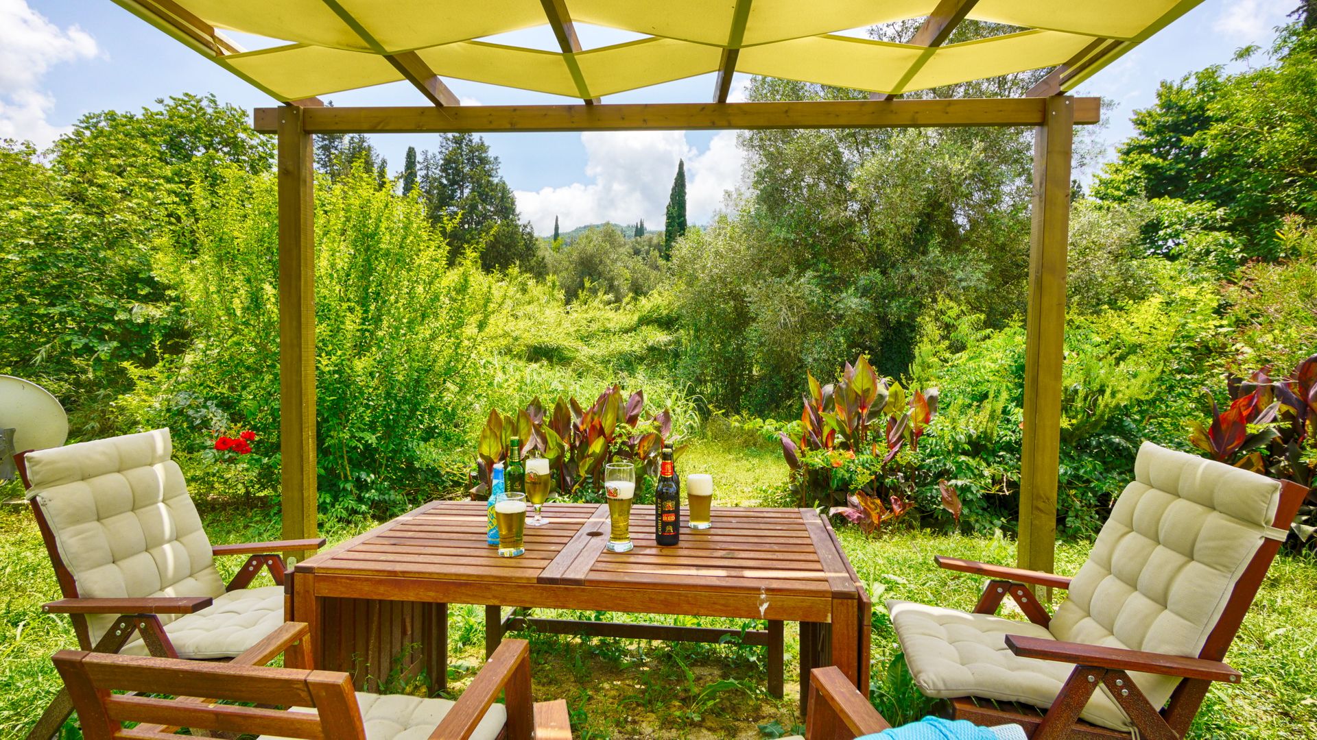 Large verandas with sitting and outdoor dining furniture. Portable BBQ facilities available for a real countryside outdoor dining experience. Sun loungers also available in order to enjoy the endless interaction of light and nature. Well maintained gardens that offer beautiful surroundings & privacy and parking space for at least 2 cars.
