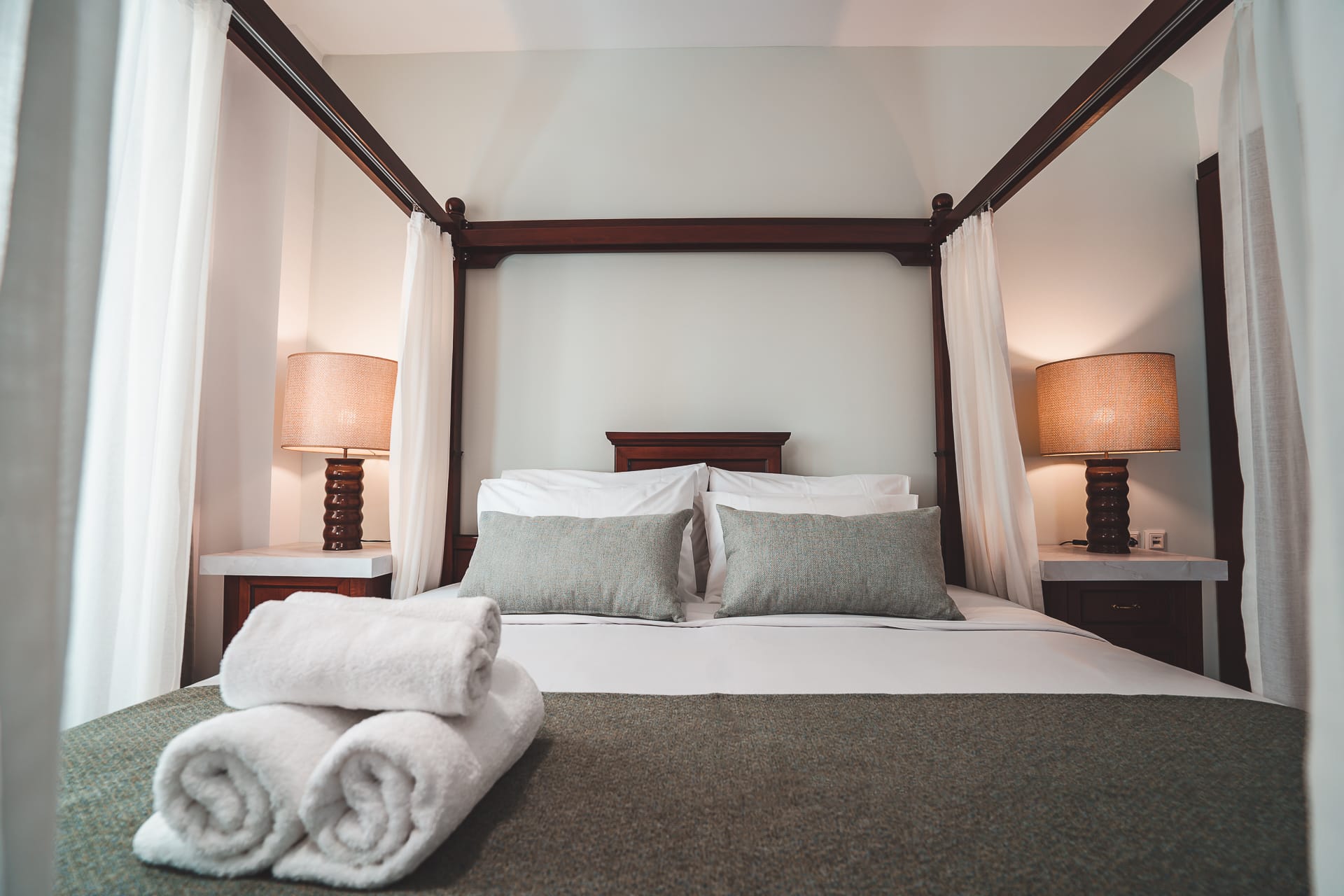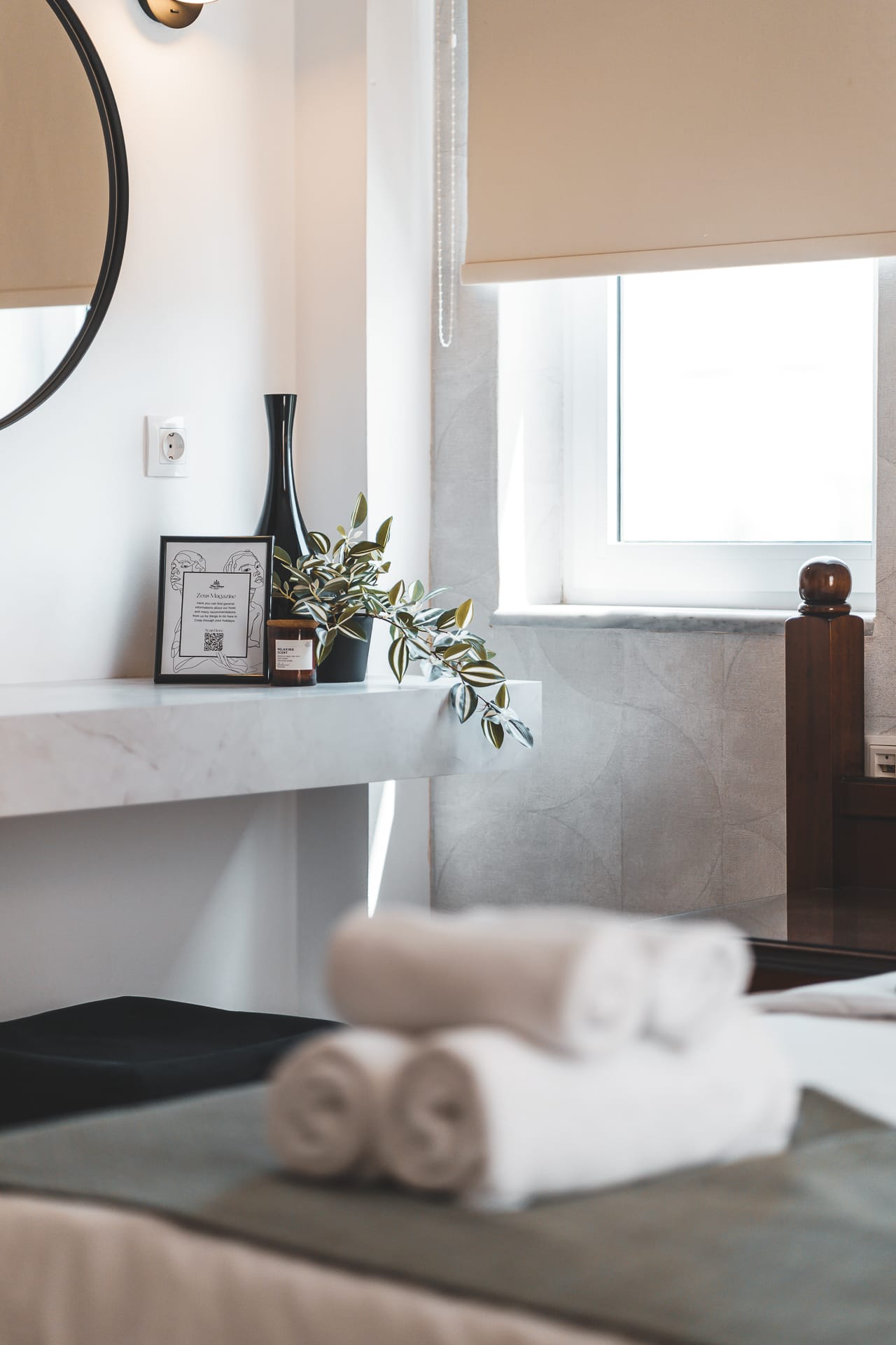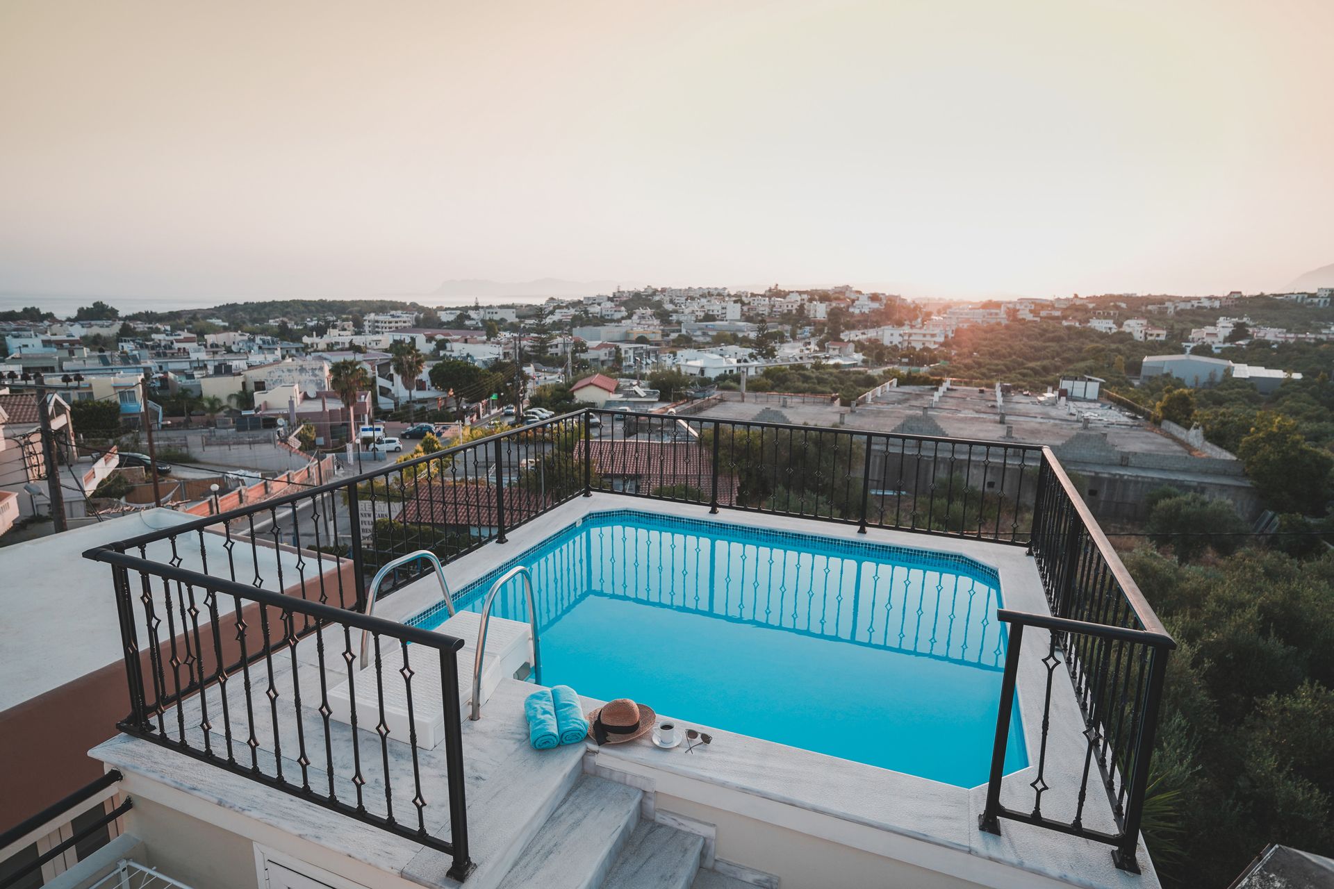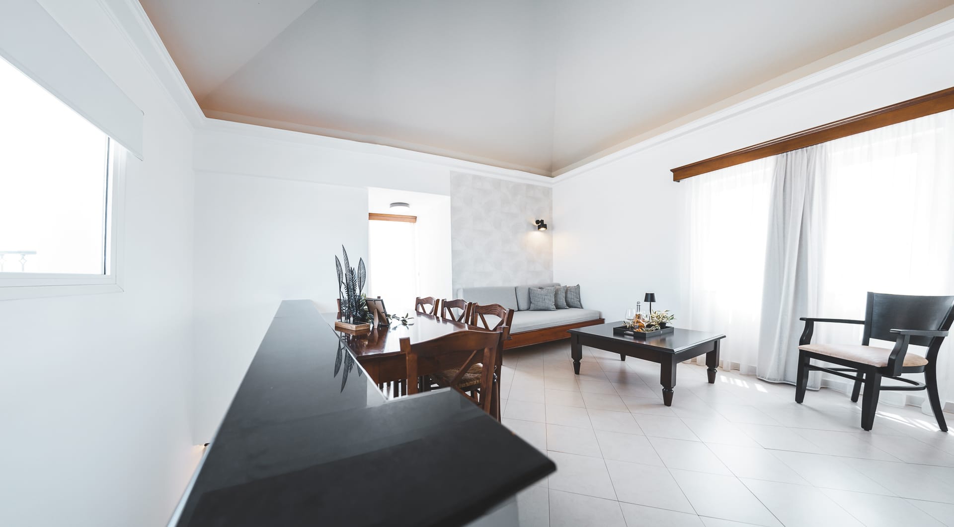 A spacious and elegant suite spanning 2 levels. The luxury suite on the first floor includes, two-bedroom with Queen-size bed with a bathroom with a bathtub. While the second floor includes a separate, spacious living room and dining area, a bathroom with shower and a fully equipped kitchen. At the top of the building, the private pool and terrace offer a unique panoramic view of the bay of chania, inviting visitors for moment of absolute bliss. The outdoor dining area and sun loungers complete the picture of the outdoor area.