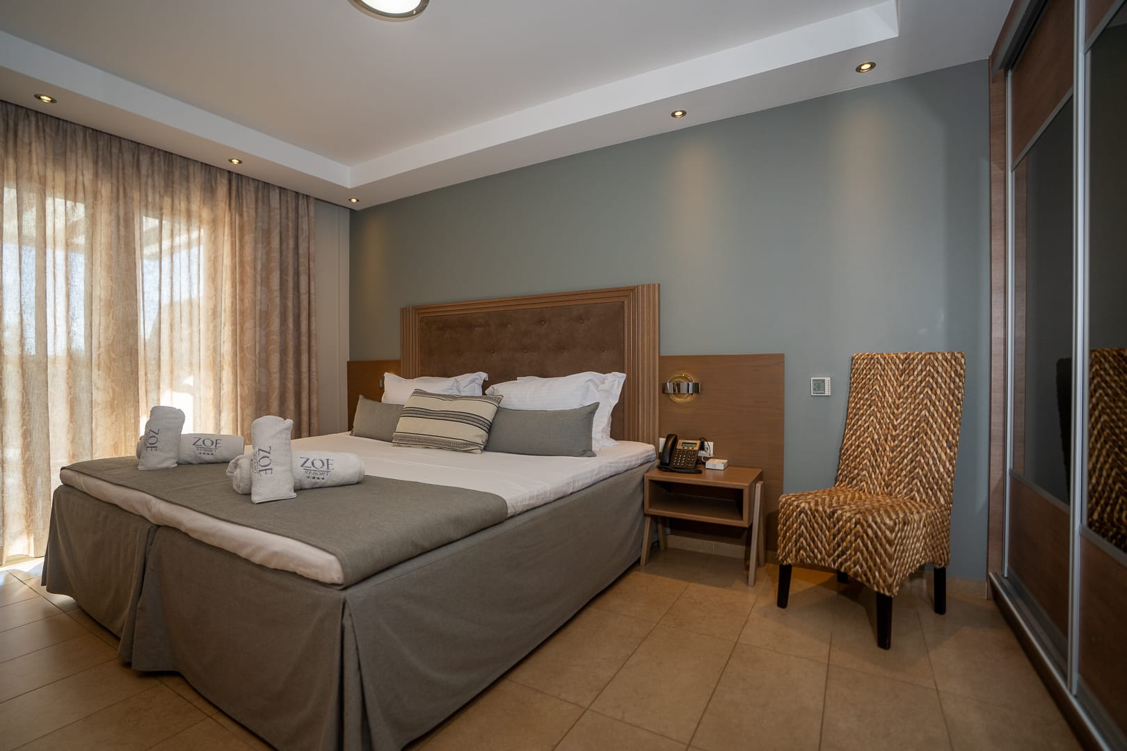 The executive suite consists of a living room with fully equipped kitchen, bathroom with bathtub, bedroom with queen size bed and private veranda. For 2 persons.