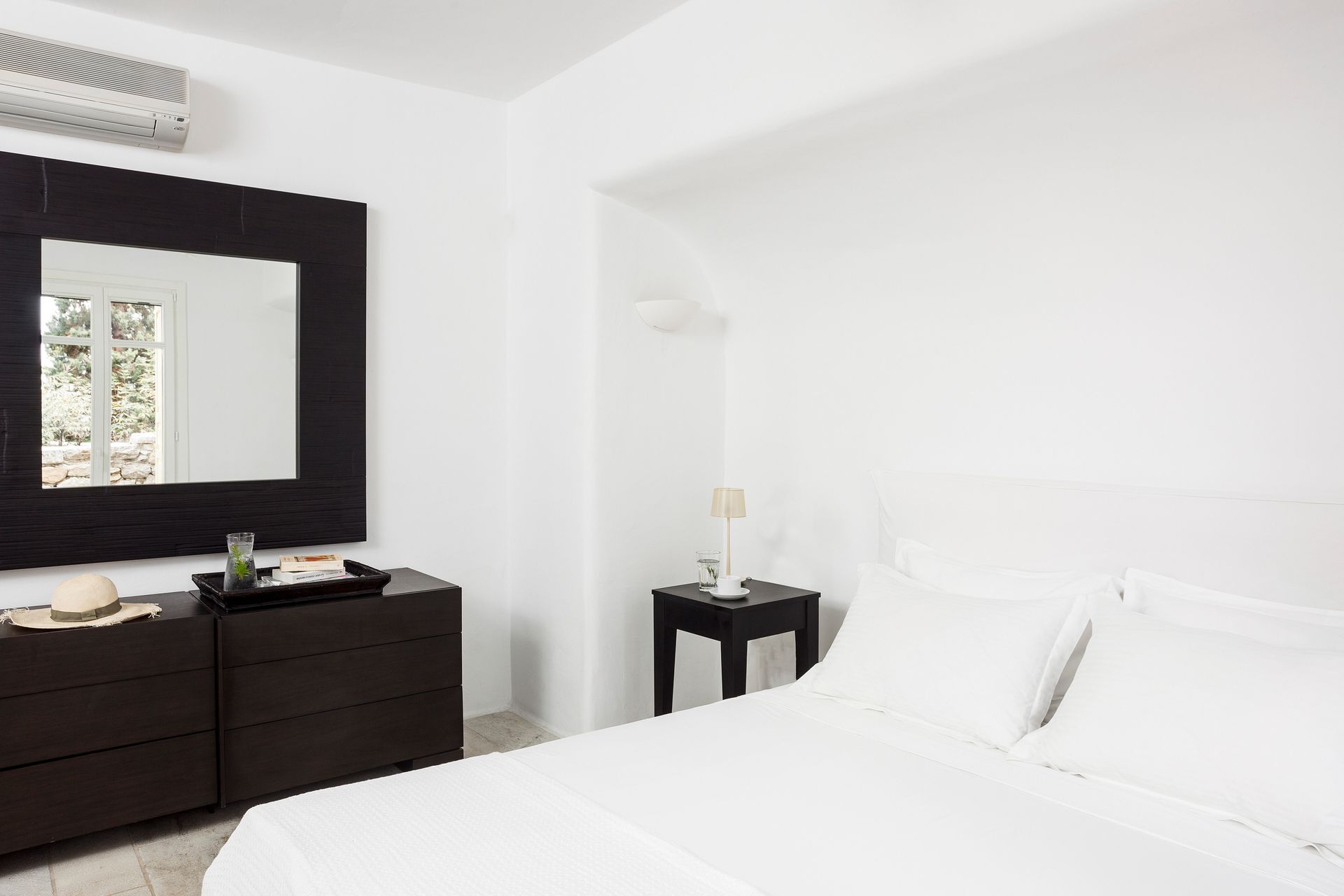 The interiors and exteriors of Villa Aphrodite are designed with brilliant white tones and subtle tasteful decorations, reflecting the Mykonian-elegance that the island is renowned for, providing a perfect setting for immersing yourself in the spirit of the island. The refurbished luxury estate provides daily, complimentary maid service, ensuring that your stay is as effortless and relaxing as possible. The estate is monitored 24/7 by CCTV at the periphery, which allows for unauthorized individuals to be quickly identified.