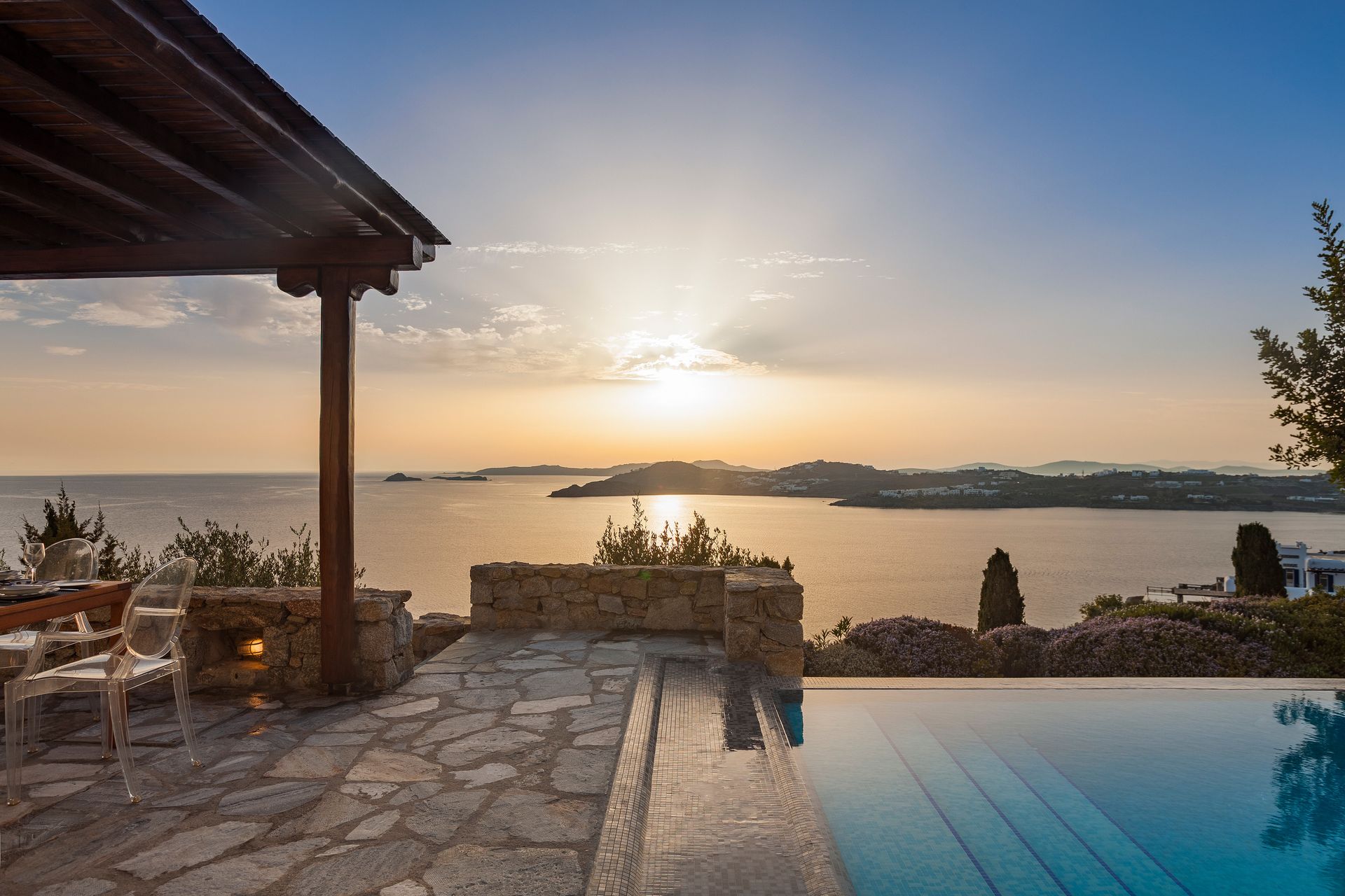 AGL Luxury Villas Aphrodite is a stunning villa located at the top of the Agios Lazaros Mykonos private 10-Villa Estate, offering breathtaking views of Delos and Rhenea islands and the picturesque Mykonos sunset. The villa features an outdoor BBQ and a dining & lounging area, all overlooking the 79m2 infinity pool that flows off into the Aegean horizon. The villa provides 5 bedrooms and 4 bathrooms, offering ample space for you and your guests to enjoy a comfortable and luxurious stay.