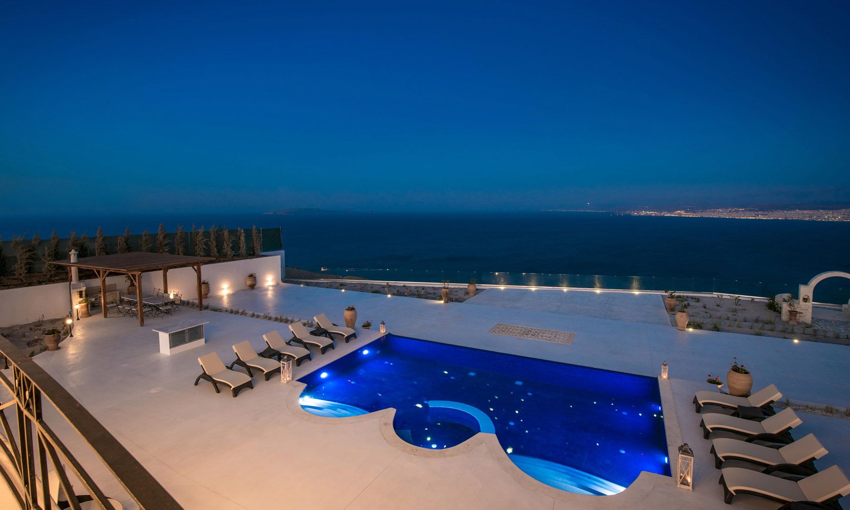 Welcome to AGL Luxury Villas Pinto, a luxurious villa perched on the edge of the Agios Lazaros Mykonos private 10-villa estate. With uninterrupted views of Delos and Rhenea islands, this villa offers the perfect vantage point to enjoy the picture-perfect Mykonos sunset. Named in honor of world-renowned designer Alberto Pinto, the villa is adorned with stunning frescoes depicting images from Greek Mythology and original works created in honor of the Olympic Games hosted in Greece in 2004.