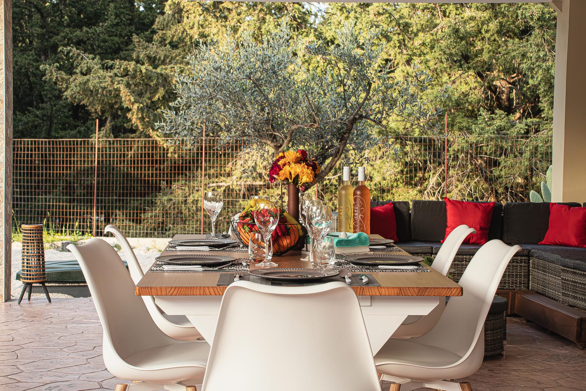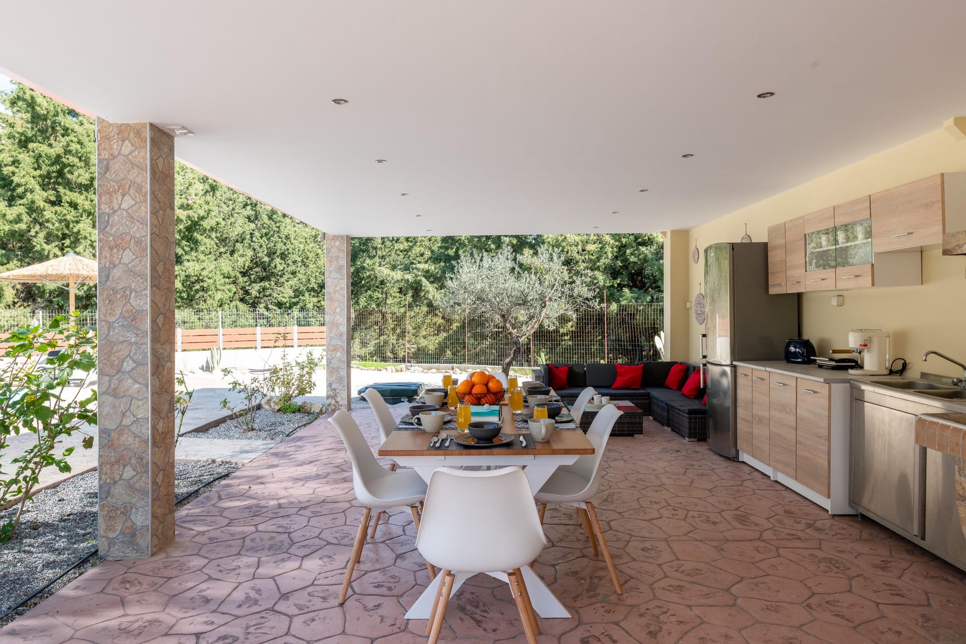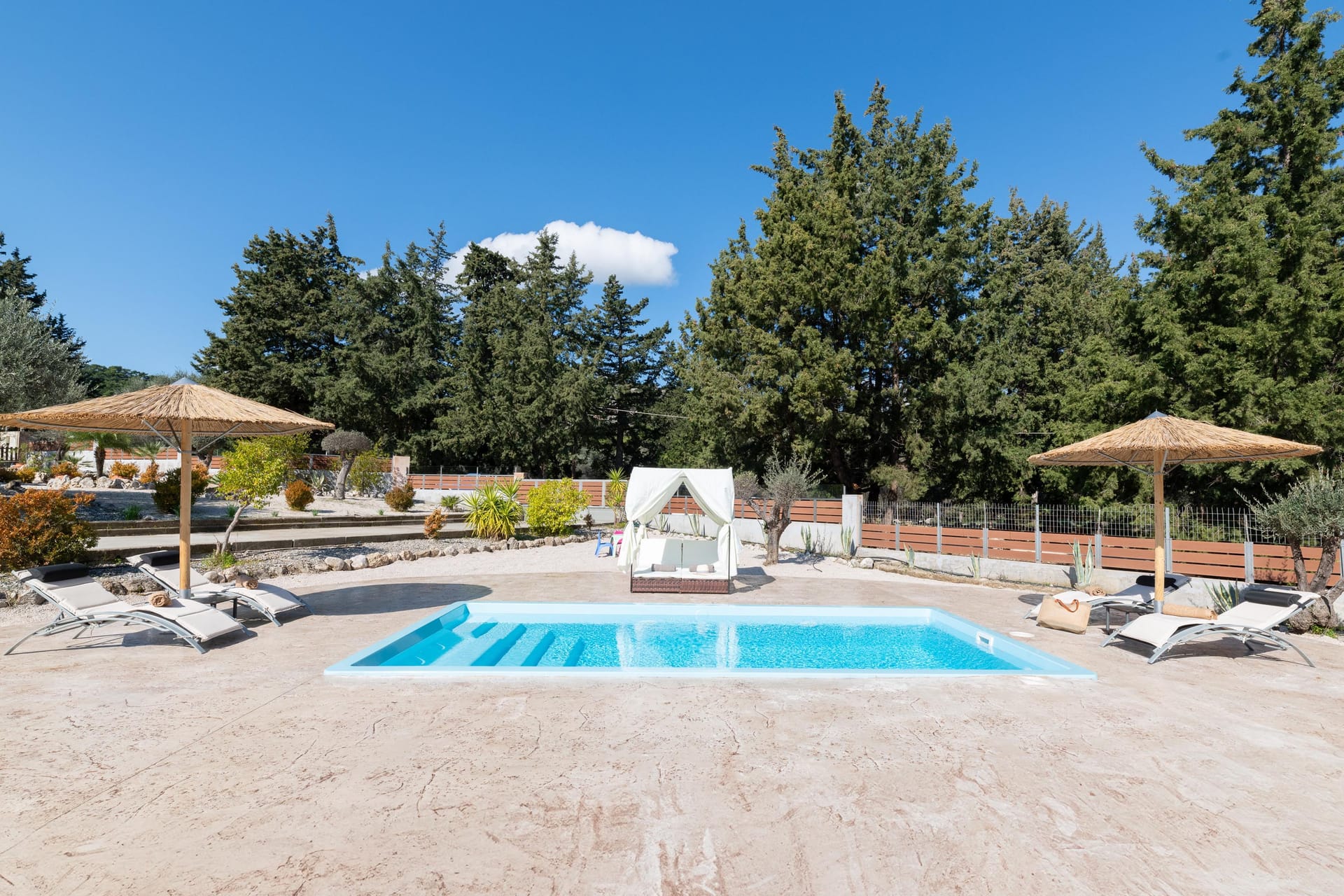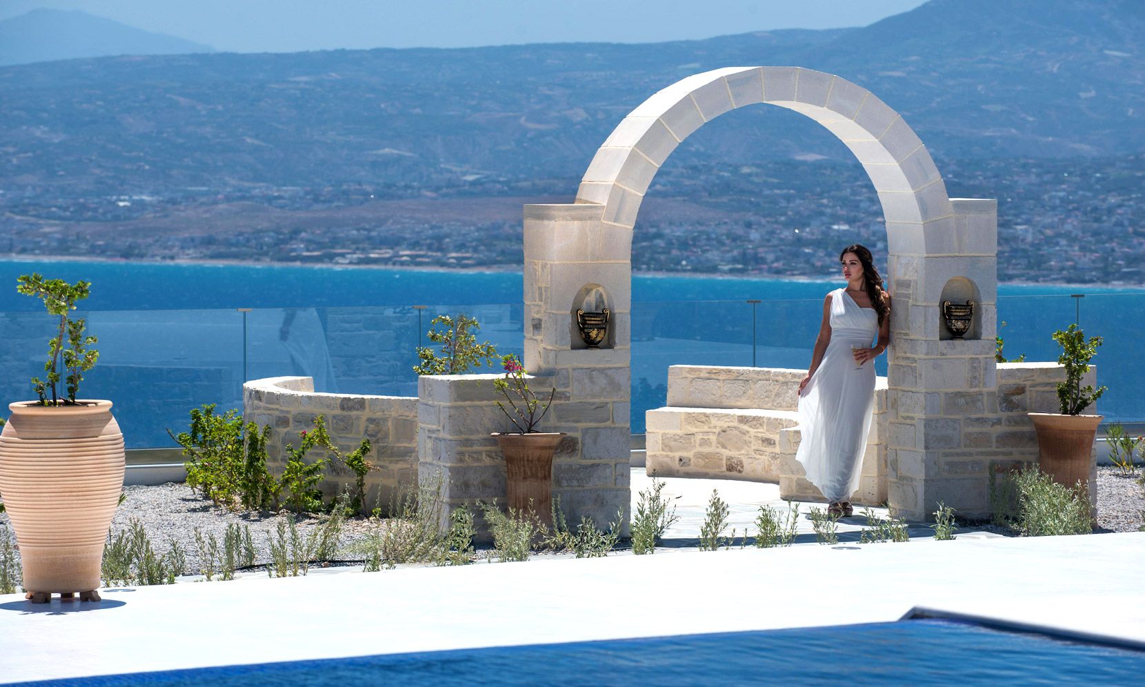 The villa boasts an outdoor BBQ and dining area tucked up against the rich vegetation of the pergolas with a magnificent sea view. There are sunny and shady areas in front of the 135m2 infinity pool that flows off into the Aegean horizon, and you are less than a two-minute walk to the sea, still within the estate.