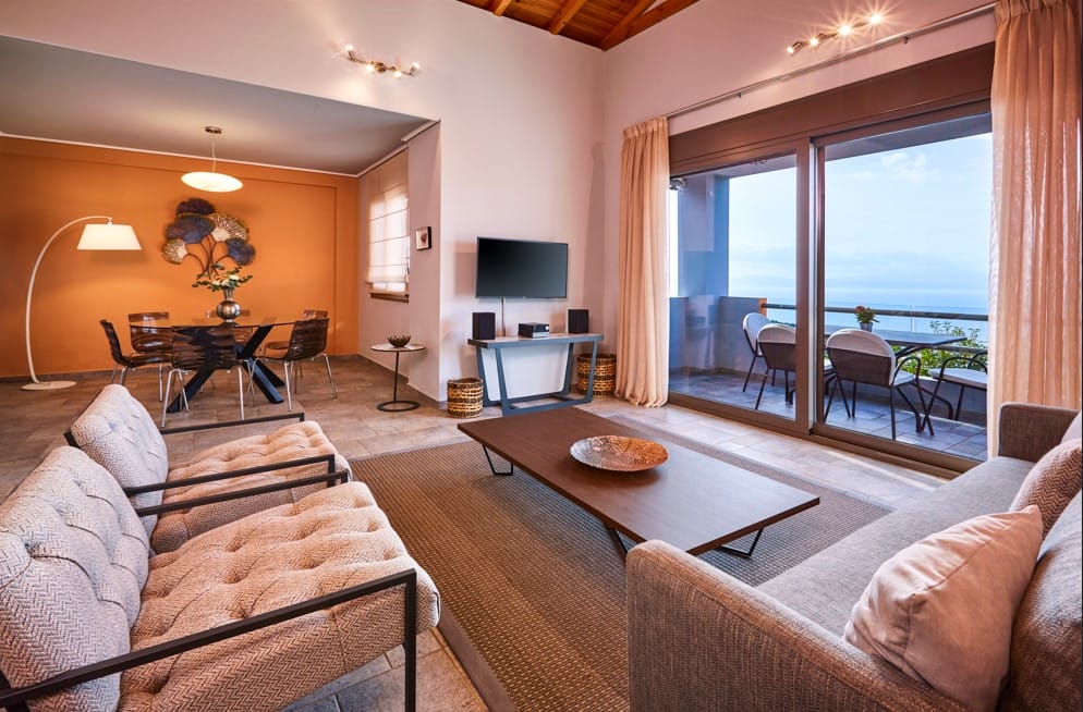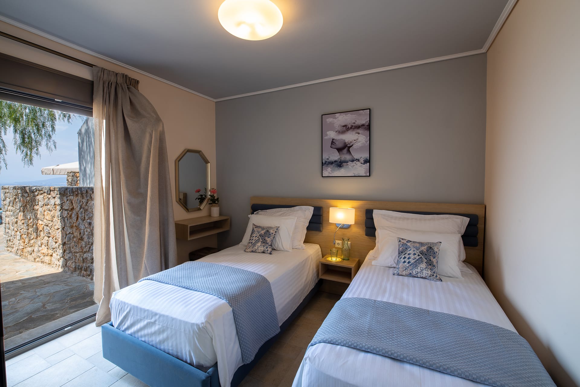 The villa features an array of luxurious amenities, including an outdoor BBQ and an outdoor dining area overlooking the sea, as well as another dining and lounging area in front of the 118m2 infinity pool that flows off into the Aegean horizon. With less than a two-minute walk to the sea (still within the estate), you can indulge in the tranquility of the surrounding landscape.