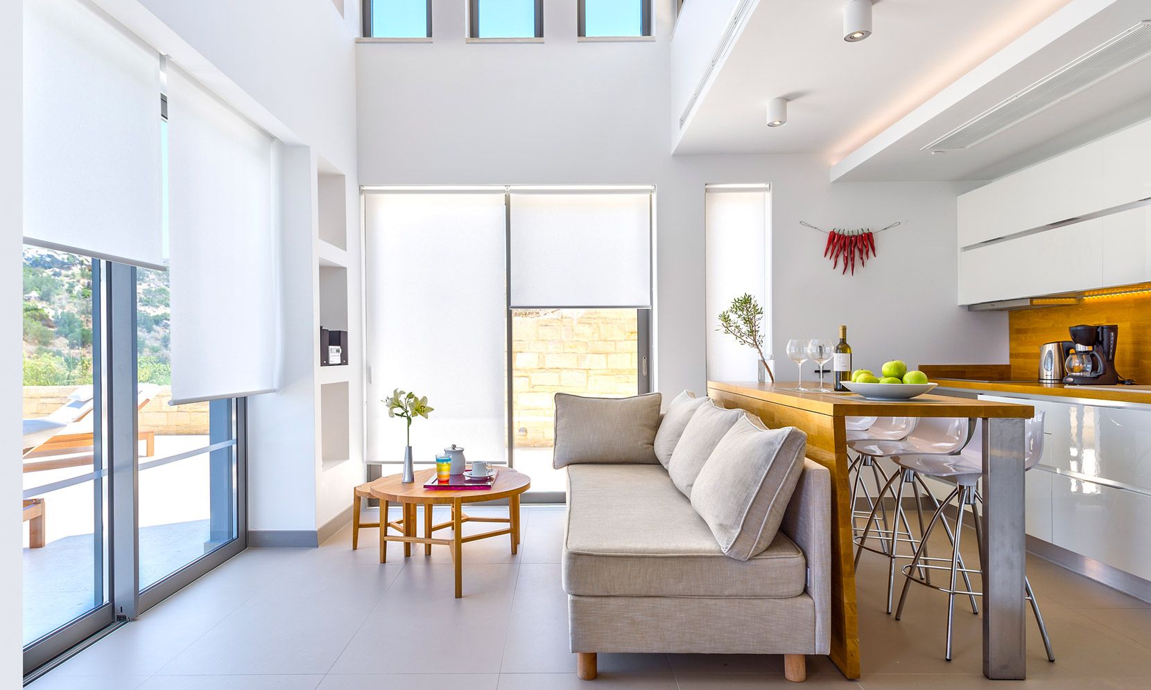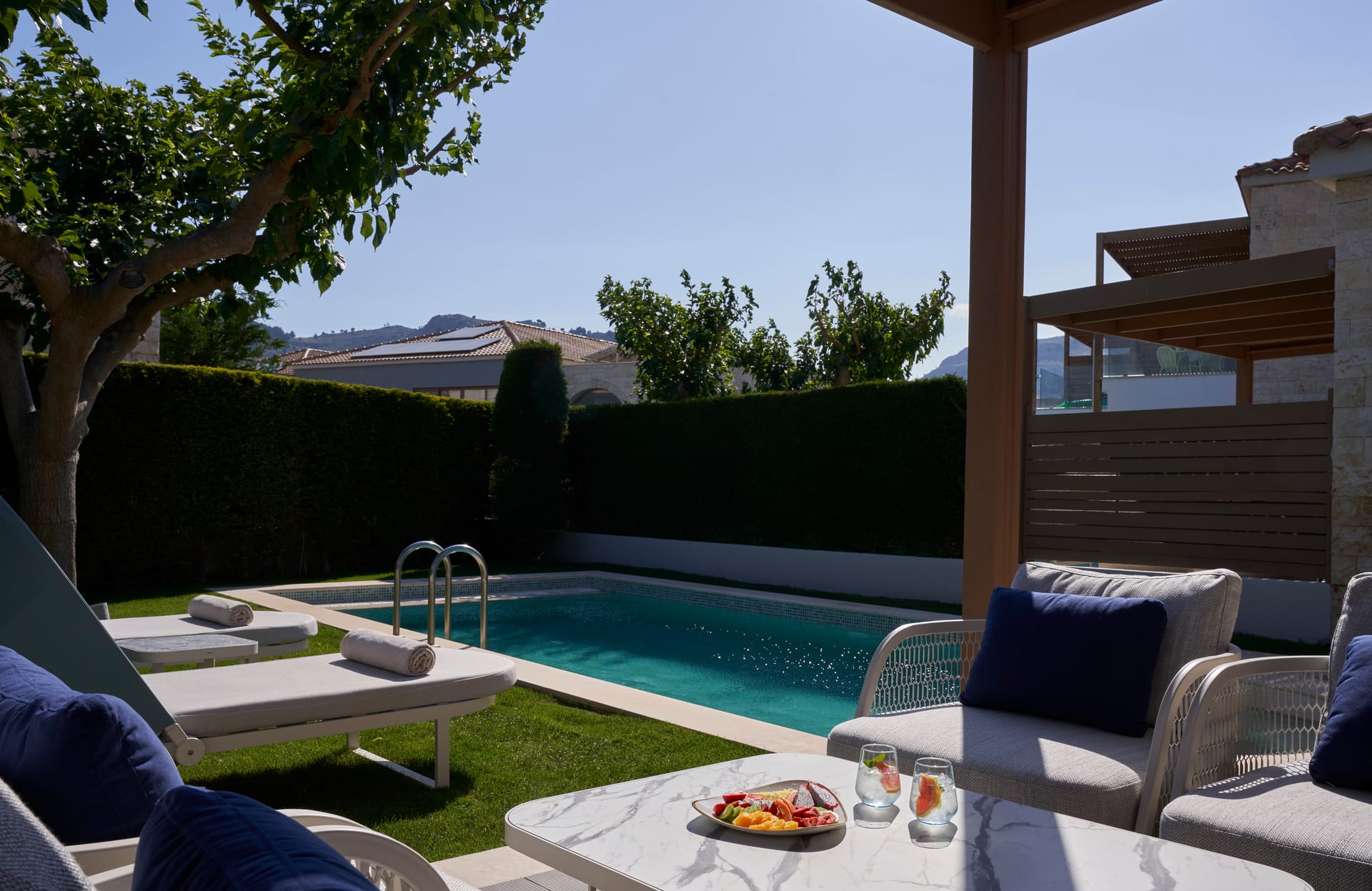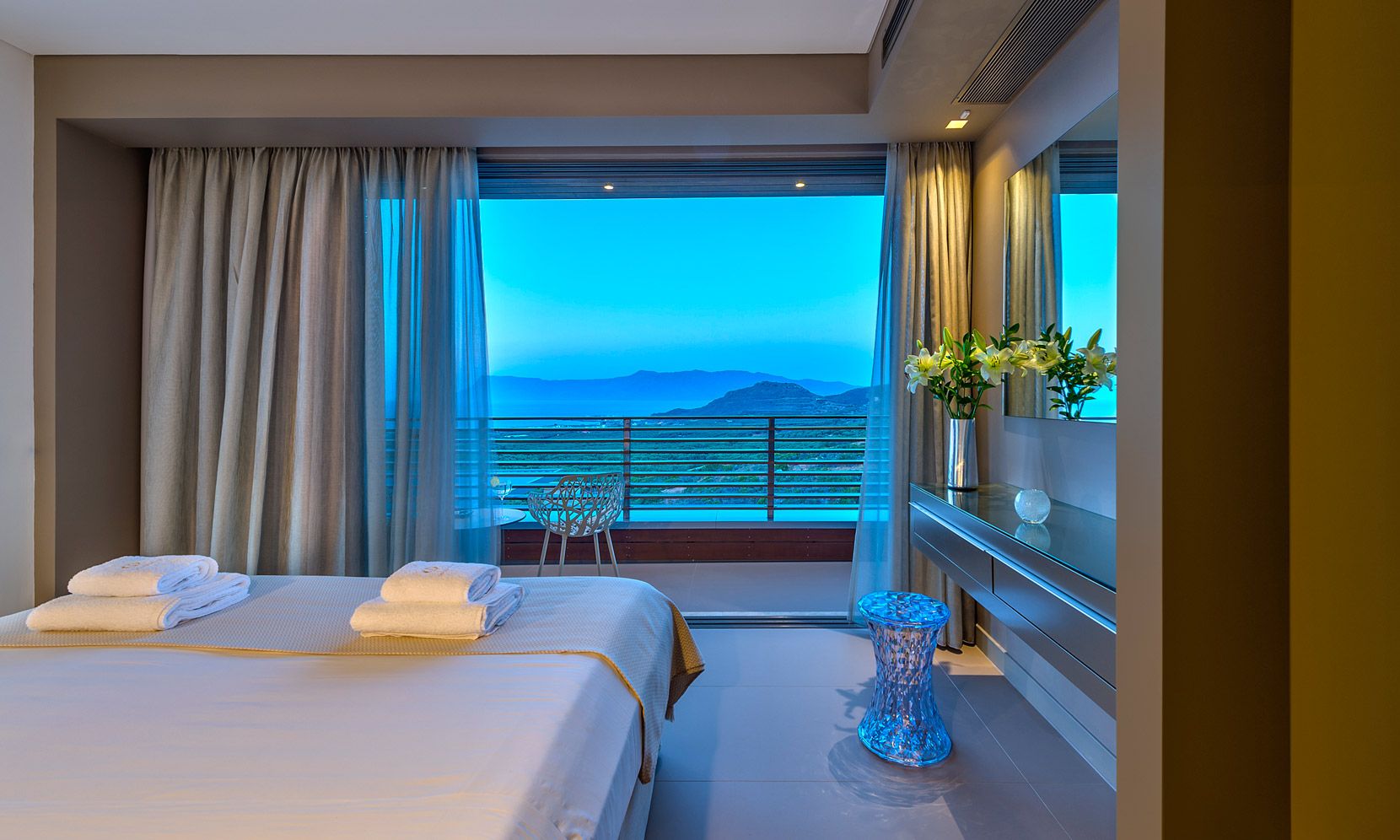 Facing north east, this villa enjoys a splendid sunrise view and savours a panorama worthy of the Greek Gods.