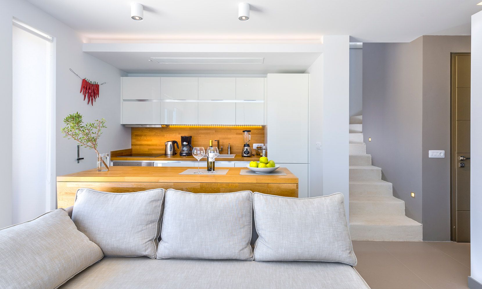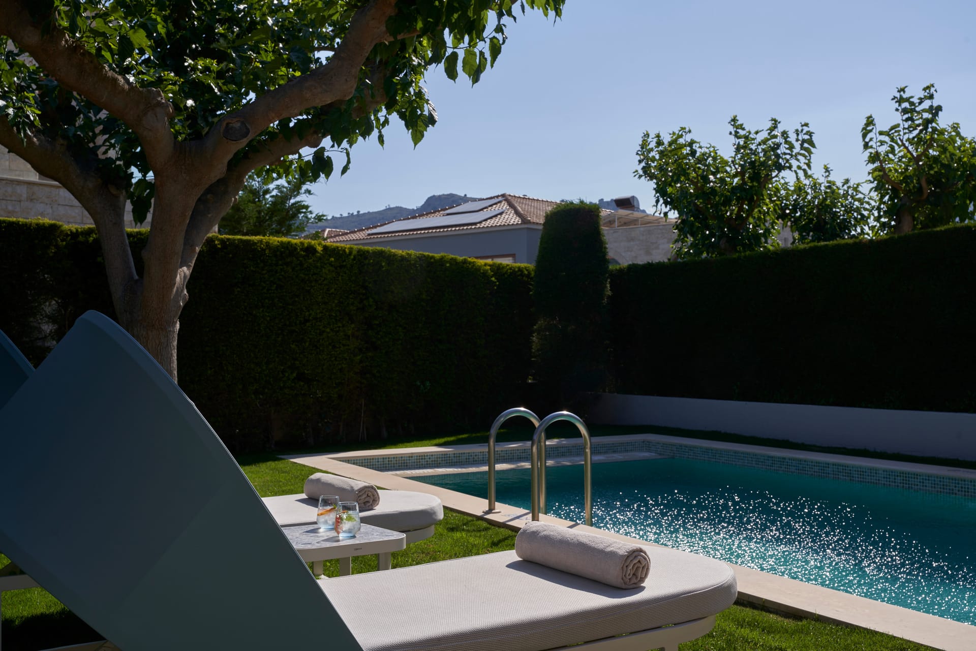 Carefully chosen endemic plants such as wild thyme, rosemary, broom, fennel and oleander, blend sensitively into the natural landscape with the stone walls and gardens ensuring privacy.