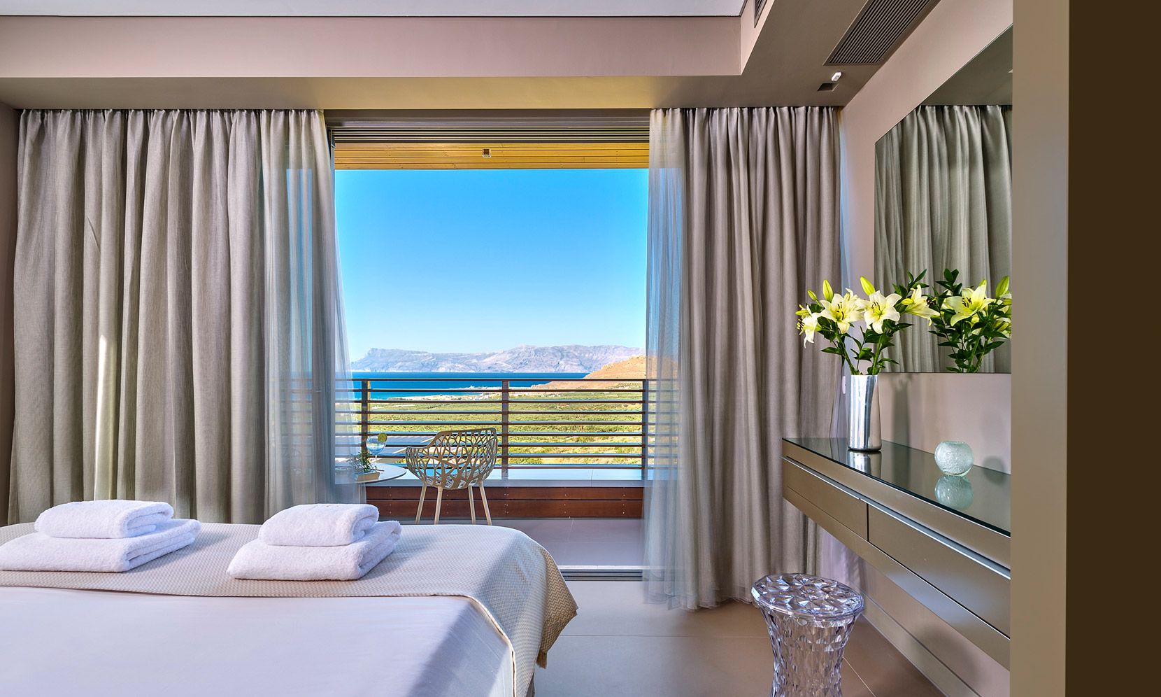 Inspiring interiors and ornate style will ensure villa Plethora appeals to those seeking total relaxation. Offering the perfect hideaway, it is close to the villages of Kissamos and the picturesque harbour of Kolymbari with its arc of fish restaurants…perfect for a romantic dinner overlooking the Aegean.