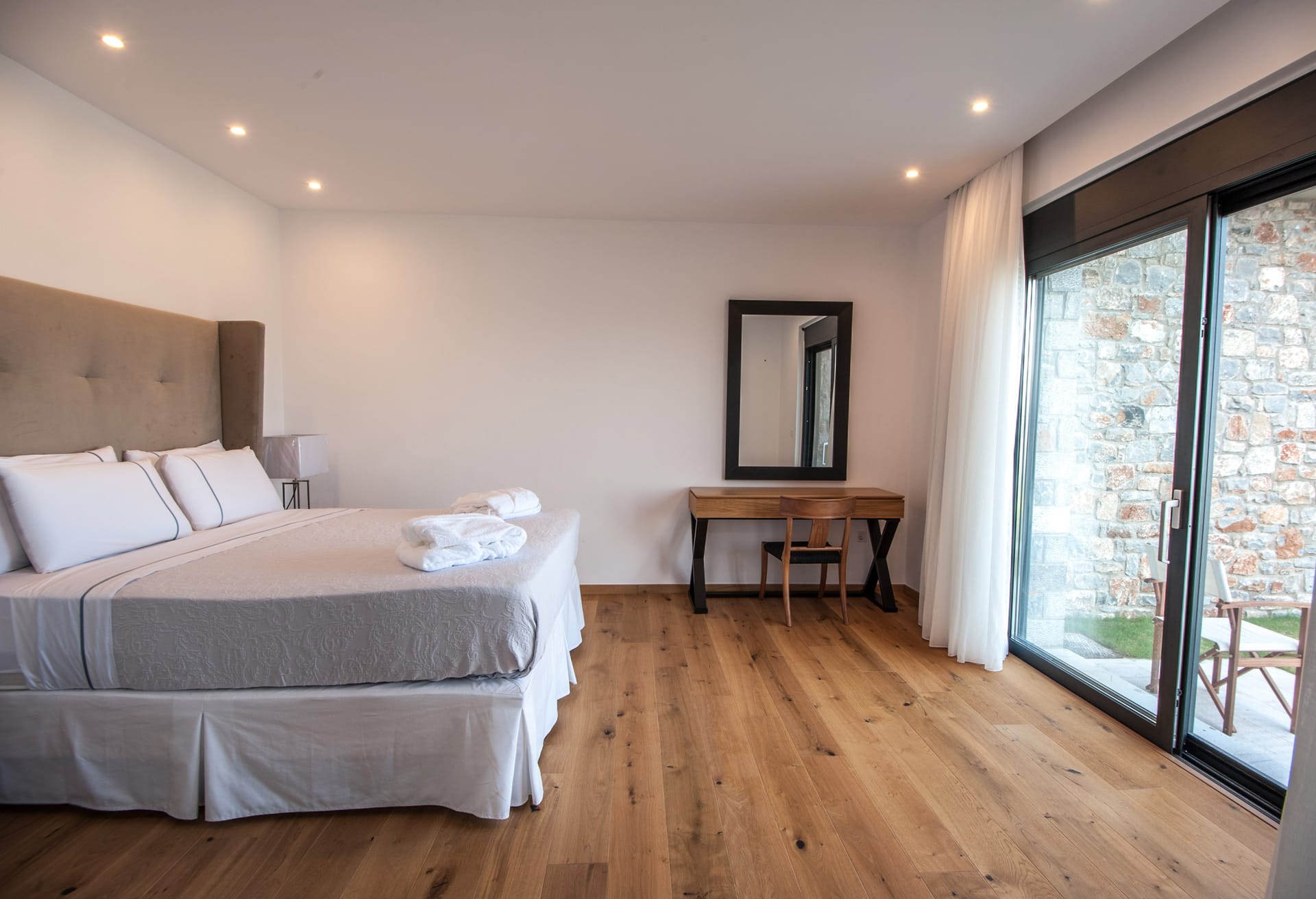 Venturing further, the first floor beckons with four double bedrooms, each adorned with a sumptuous king-sized bed. Two of these bedrooms boast ensuite walk-in showers, ensuring privacy and convenience. The remaining two bedrooms on this level feature private bathrooms with walk-in showers, offering a luxurious retreat for every guest.