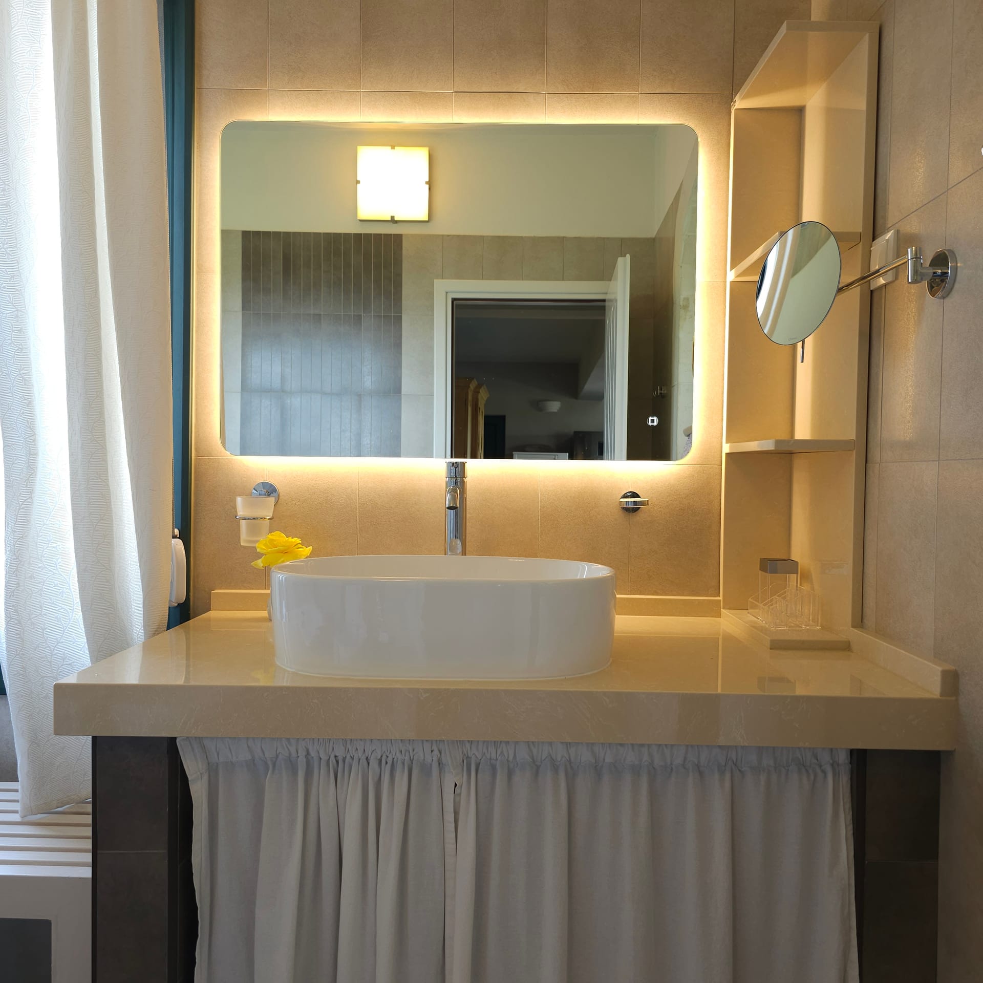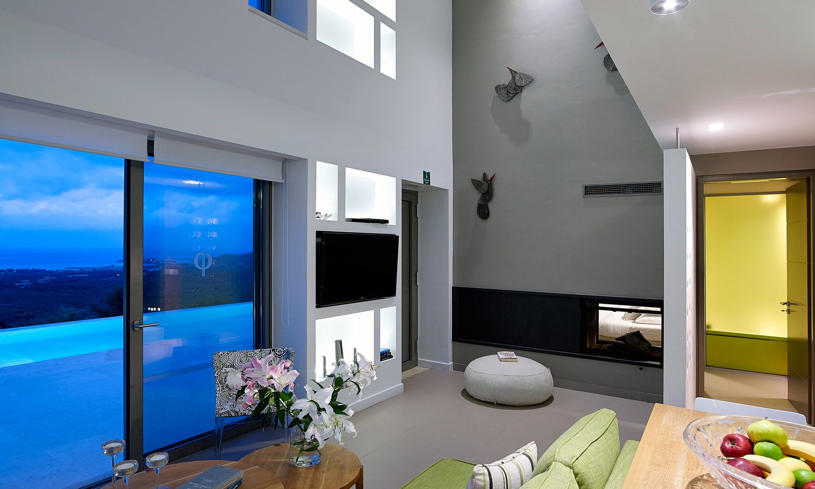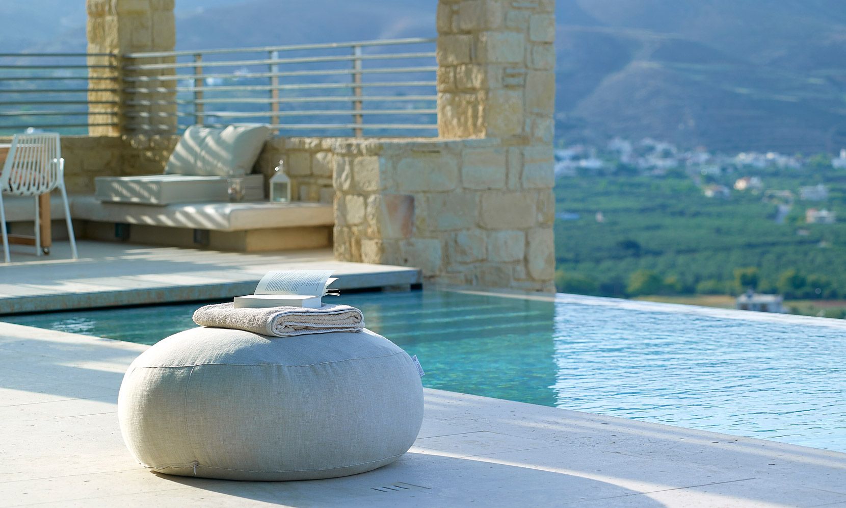 The spacious natural stone terrace fronting the property has a private infinity pool with Roman steps. As you slip into the refreshing water, admire the Gramvousa and Spatha peninsulas before you.