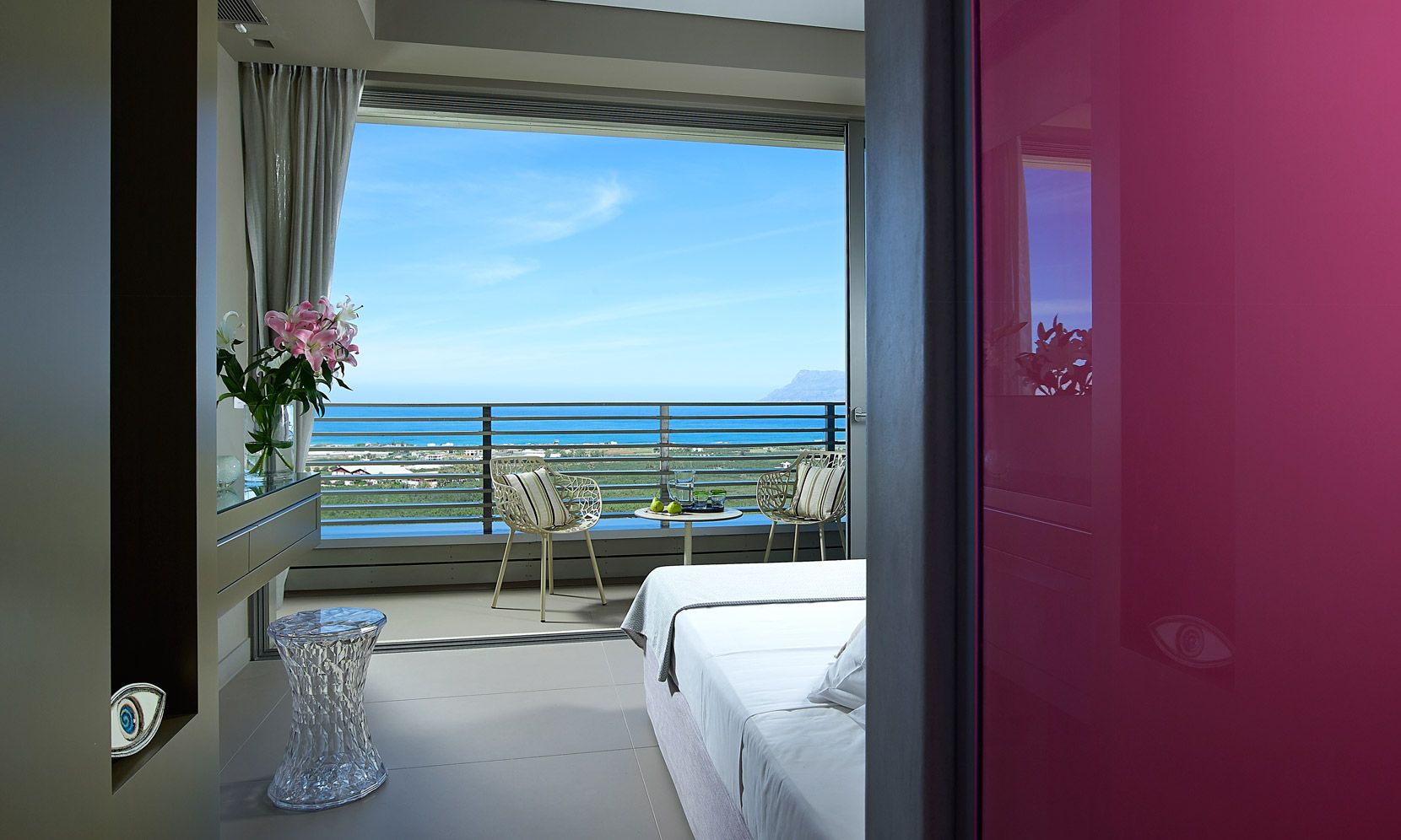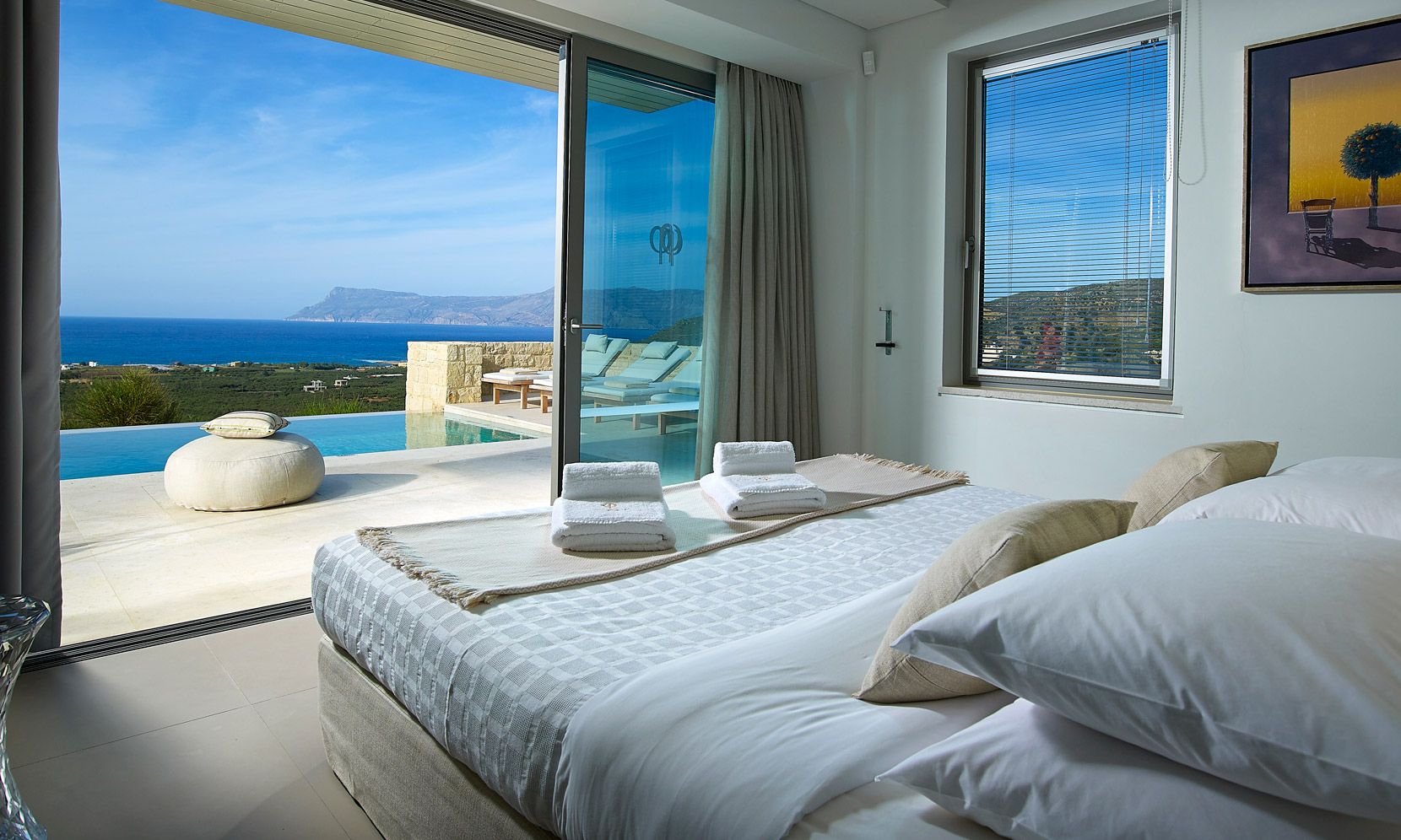 Overlooking the traditional Cretan village of Agios Georgios, villa Brussel enjoys unparalleled sea views.