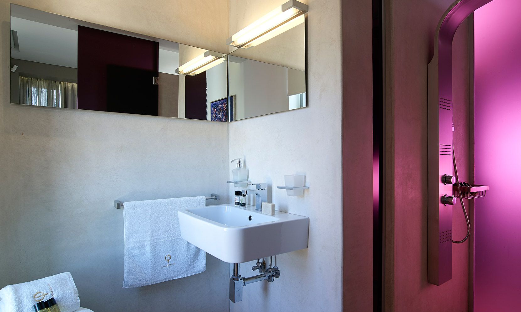 At night, a relaxed and soothing atmosphere can be created with the clever use of dimmer lights and coloured glass doors in the bedrooms.