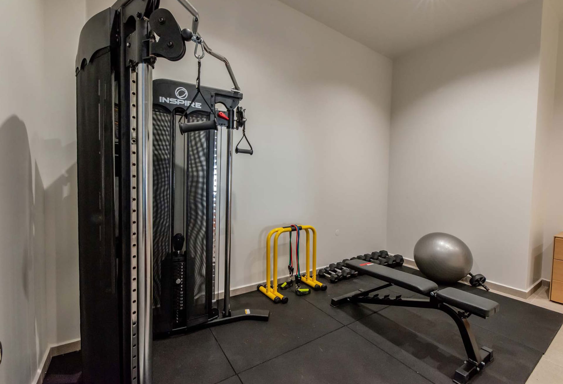 -Gym (multi-fitness device, dumbbells, fitness ball, fitness bench)