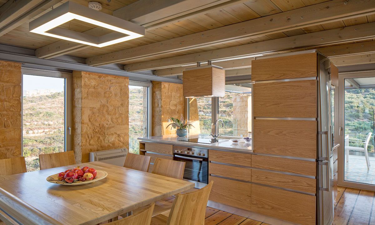 Crete Villas Danae built in stone, harmoniously blends with the natural environment and are an architectural delight featuring airy rooms and large windows. The pastel interiors combine simple elegance and beautiful design with comfort and luxury.