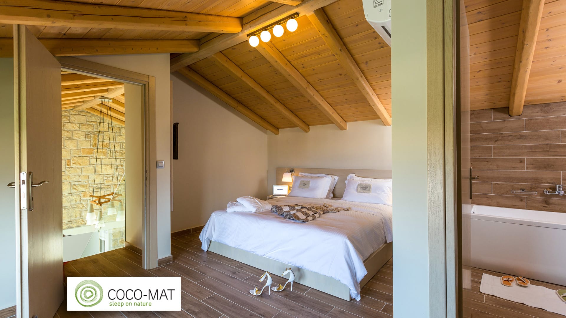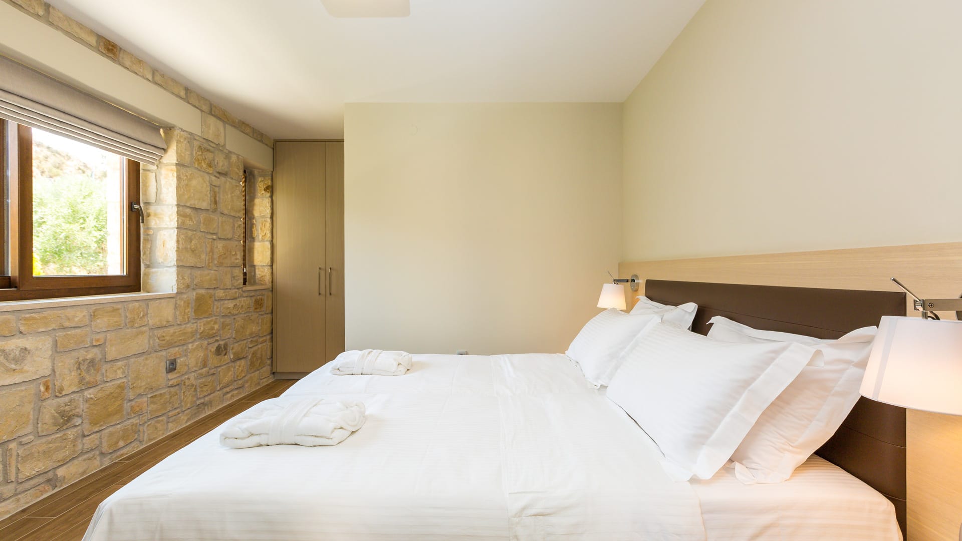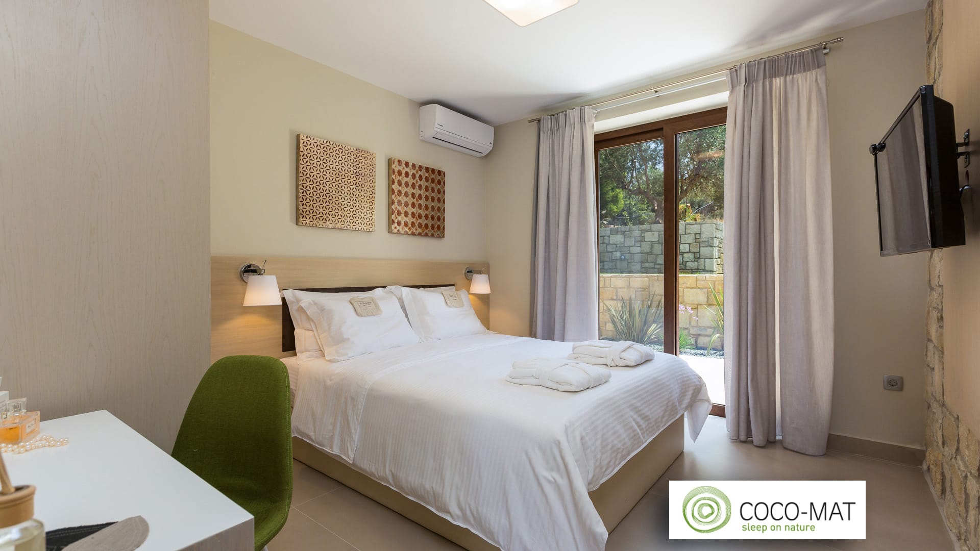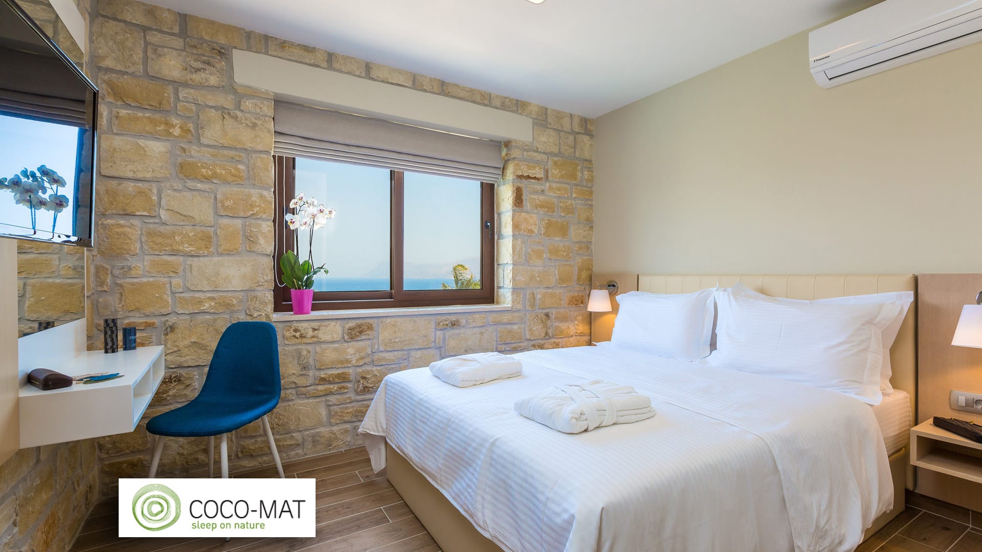 Bedroom 5: Double size bed (1.60x2.00) by Coco-Mat, A/C, 32’’Satellite TV, ensuite bathroom with bathtub & hydromassage, Seaview