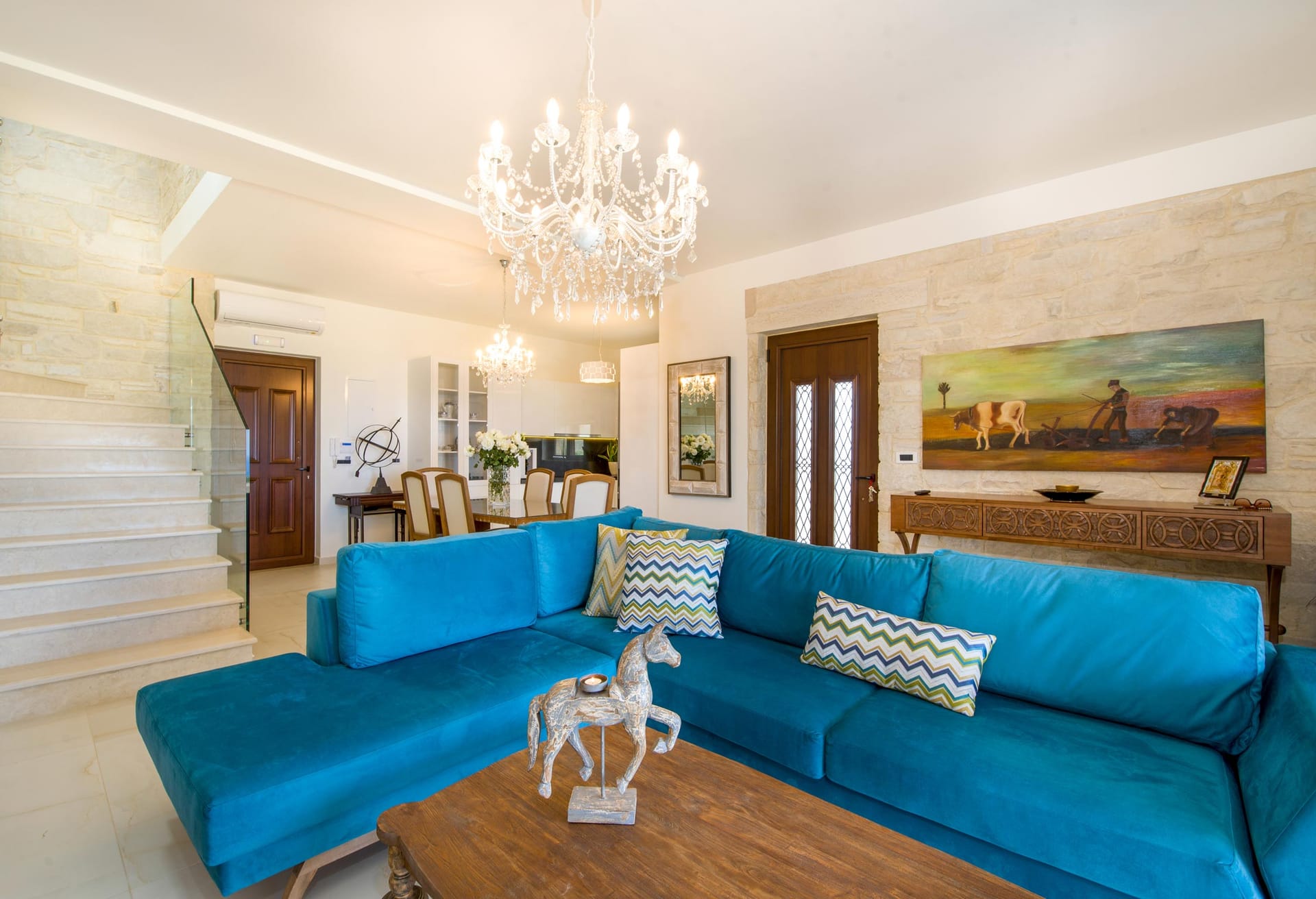 Crafted from carved stone and rich wood accents, Crete Villa Filippa exudes a welcoming ambiance, offering a harmonious blend of beauty, comfort, and opulence to fulfill the desires of every guest.