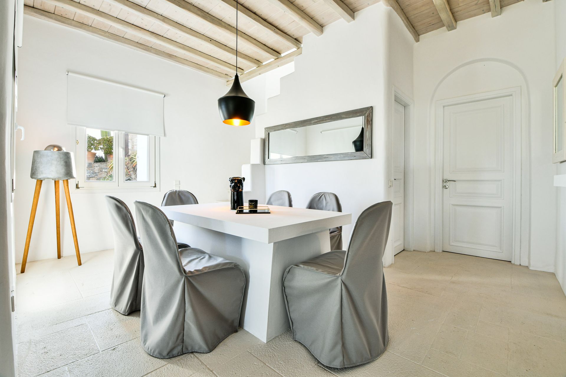 The spacious outdoor area offers panoramic sea views to the early sunrises, offering them beautiful sunsets too. Enjoy the sun and a good book under the sun! Last but not least for lovers of cocktails and drinks you can enjoy one right next to the dining area where you can relax and have some fun moments with your loved ones. Don’t forget that a secure parking area is provided outside the villa.