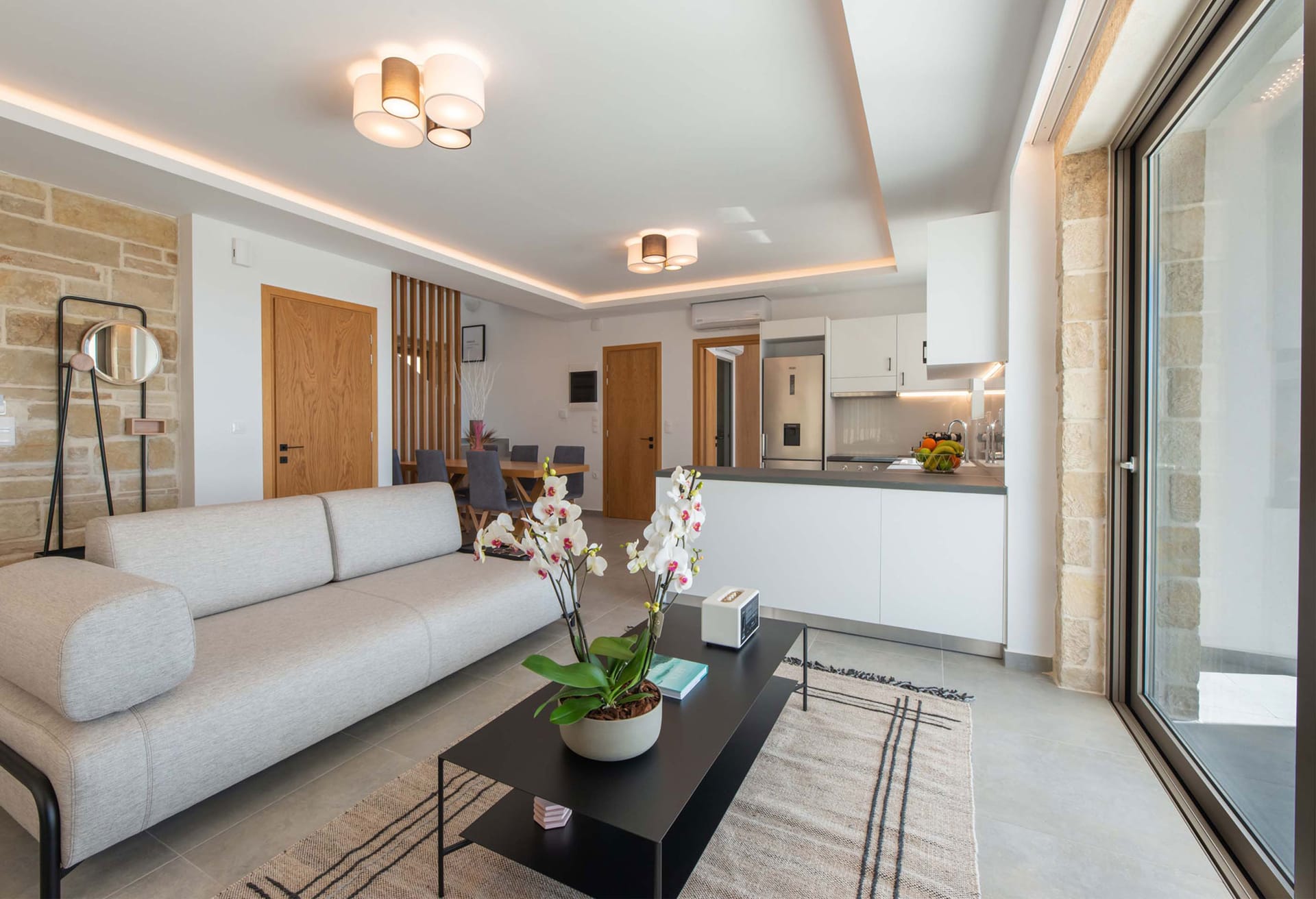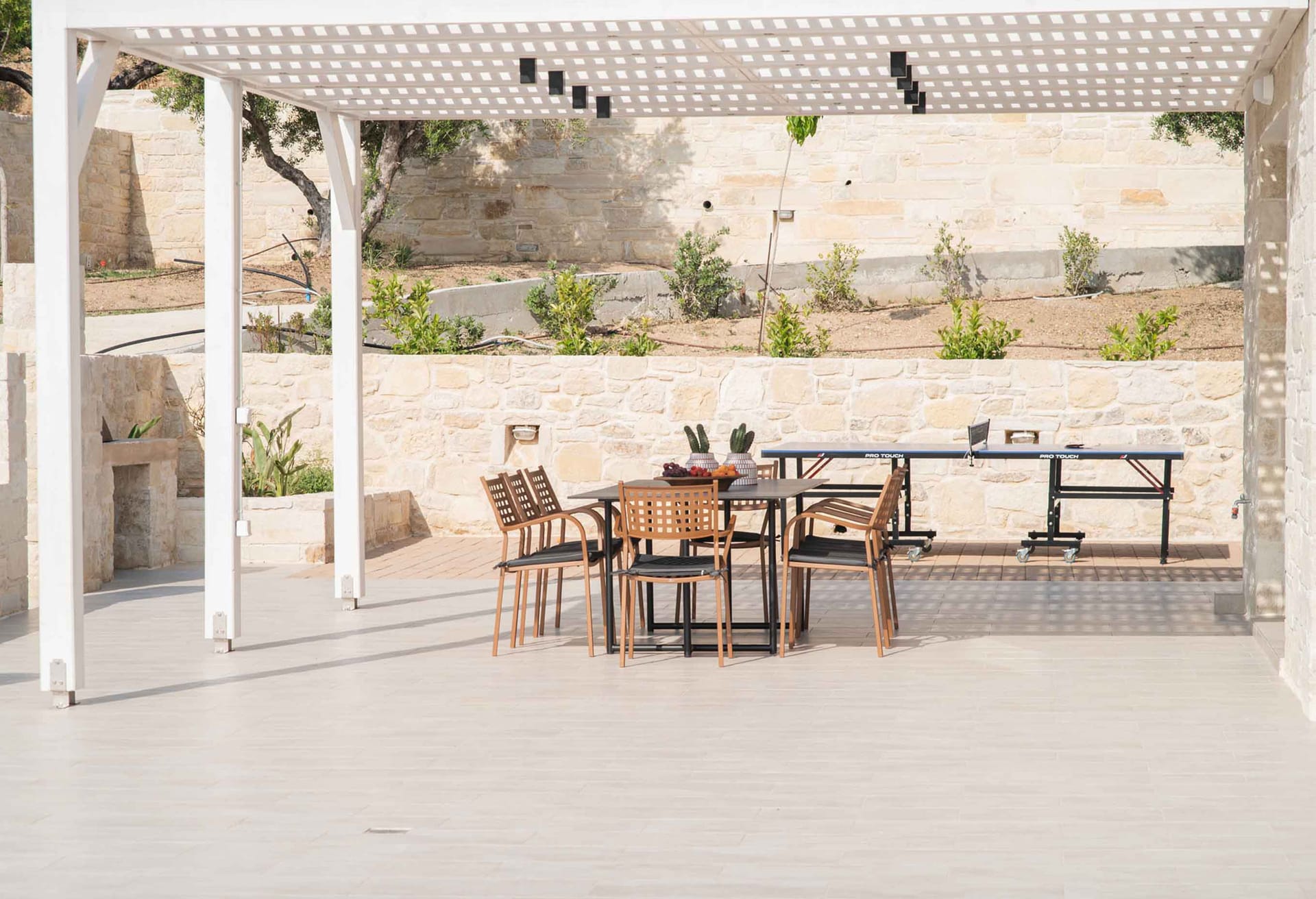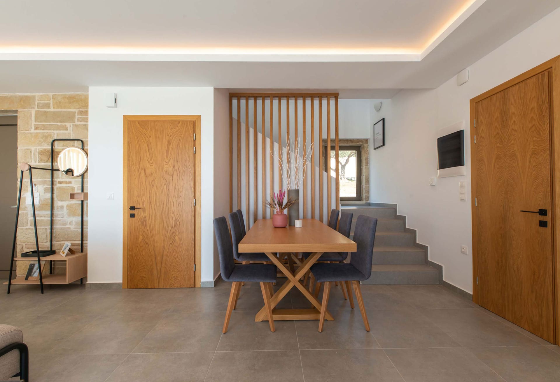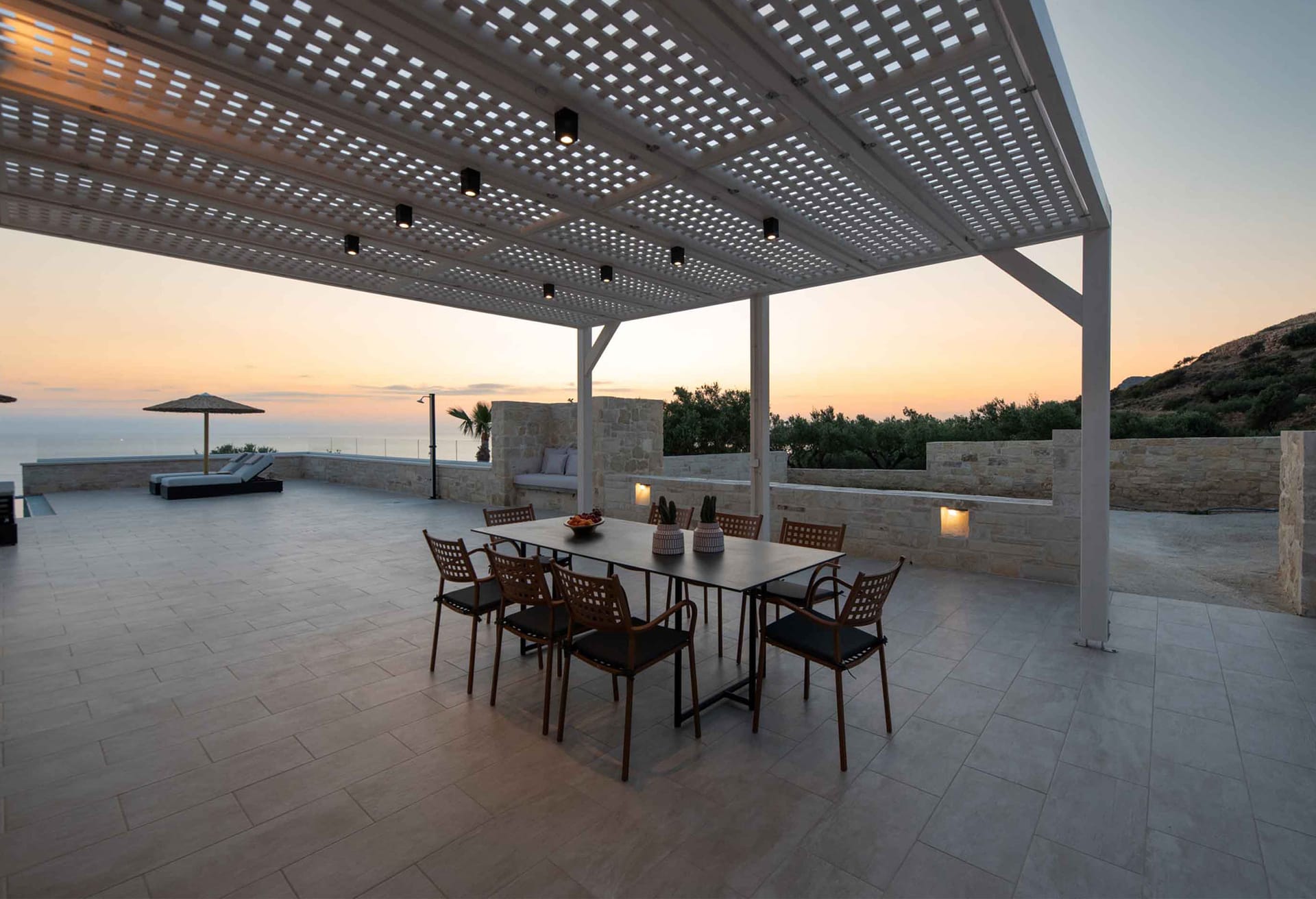 The best part of the residence is the refreshing outdoor private pool where you can have unspoiled moments of relaxation on the sunbeds next to the pool soaking up and enjoying the Cretan sun. For more fun, you can enjoy a ping pong match with your friends and after that, you can have a glass of fine wine or a cocktail in the lounge area. The perfect location of the villa offers proximity to the sandy beach and the crystalline waters. The perfect spot where residents can enjoy optimal habitation and a dazzling view, with a private garden lawn and don’t miss the parking space for your cars.