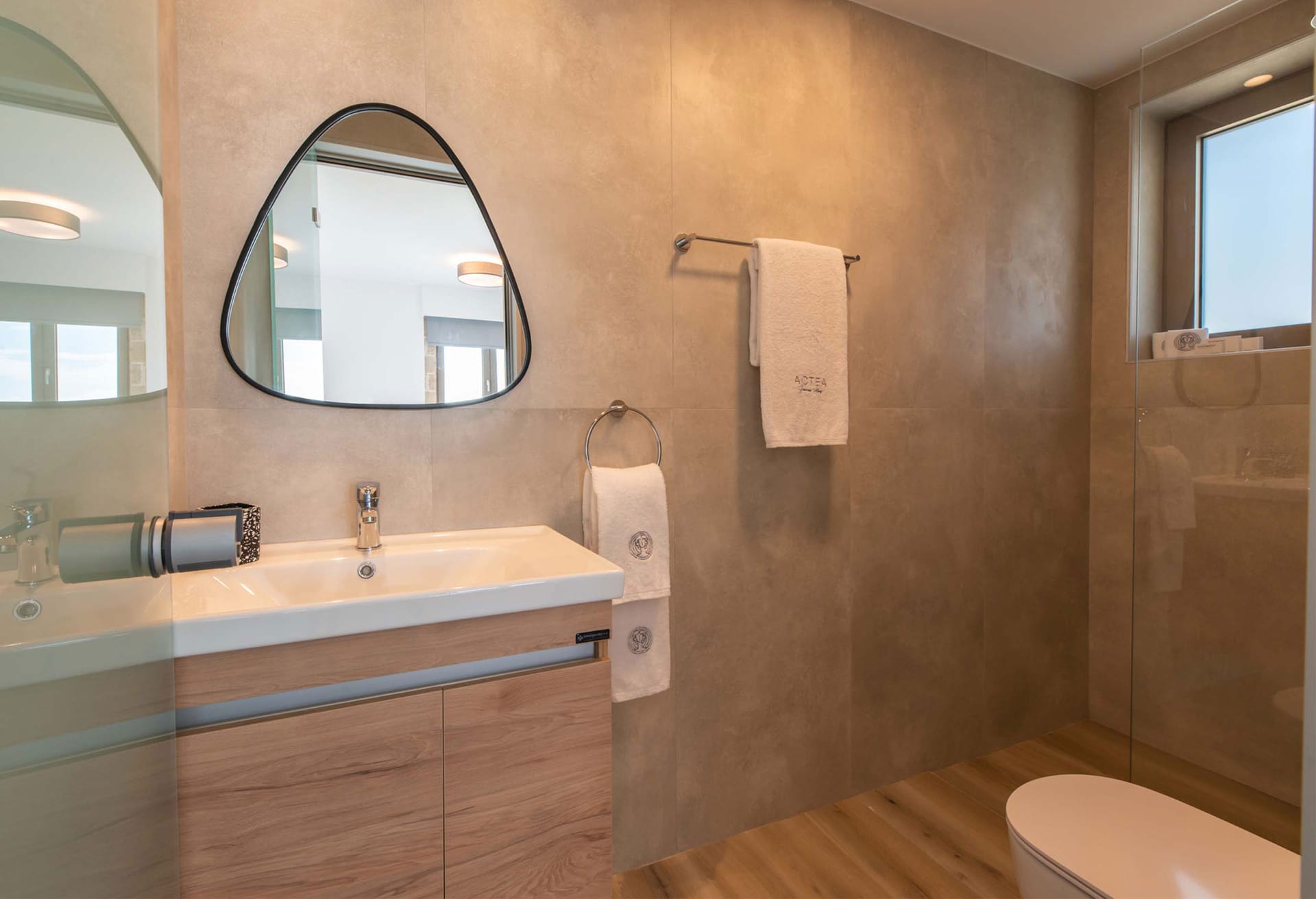 - Bedroom 3: Queen-size bed (1.60x2.00), A/C, 32’’ Smart Satellite TV, ensuite bathroom with shower, hairdryer, private balcony, Seaview