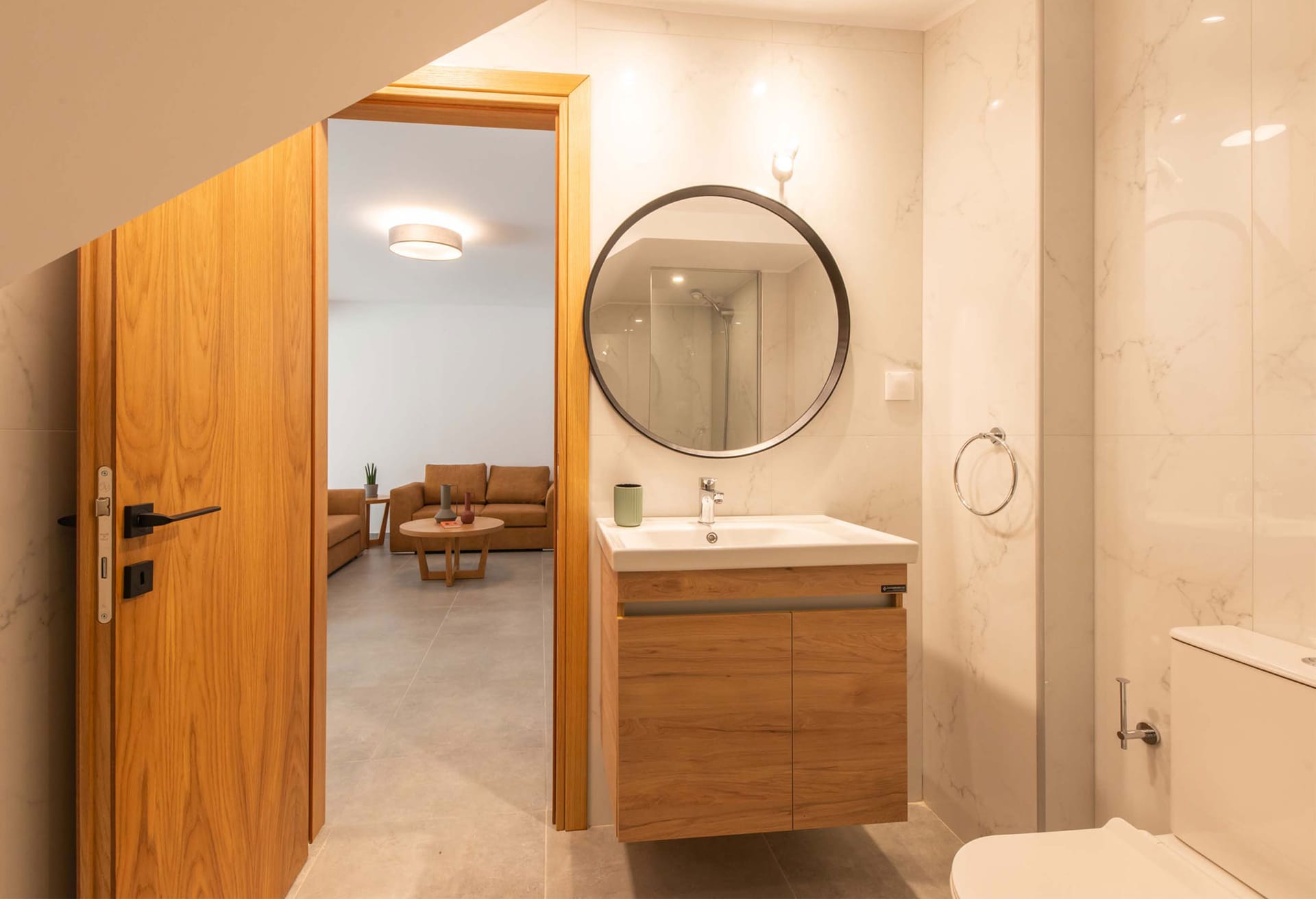 When you reach the upper floor you will find 2 modern-designed bedrooms with ensuite bathrooms offering complete autonomy and privacy. All the spaces in it, offer an indelible mark on the visitor's heart. Its location provides the perfect shelter for you and your loved ones adequate to enjoy carefree days away from your everyday life.