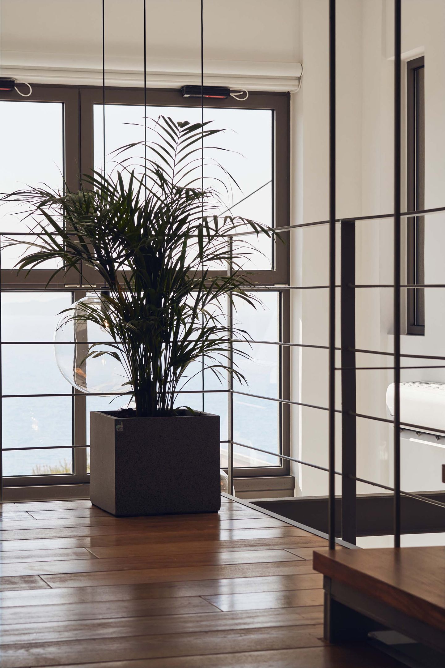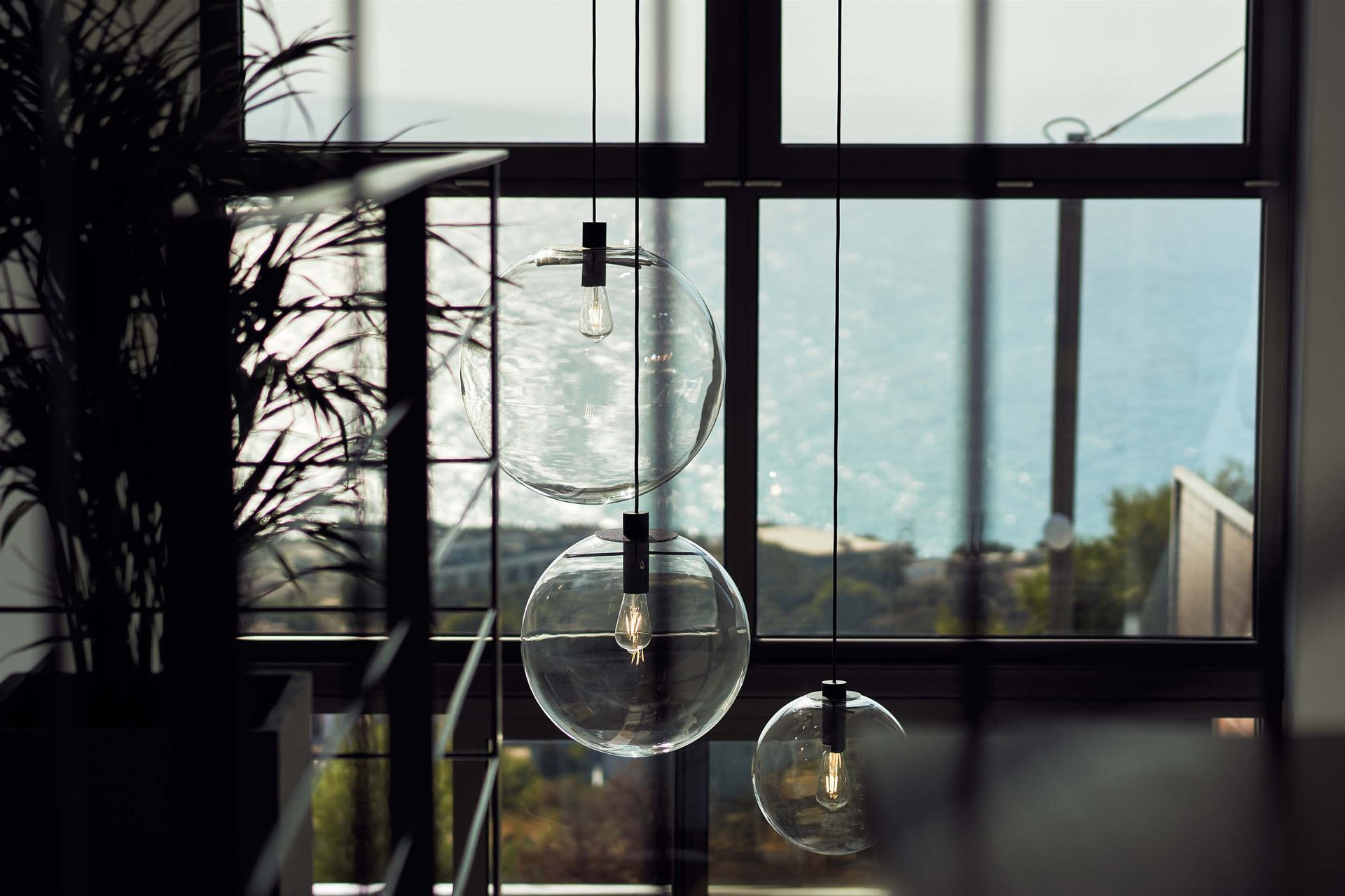 The villa is designed to accommodate 6 guests in the existing beds and two more (adults or kids) in the sofas that are from high-quality mattresses. It is divided into three floors that can be connected either from the stairs or from the elevator.
