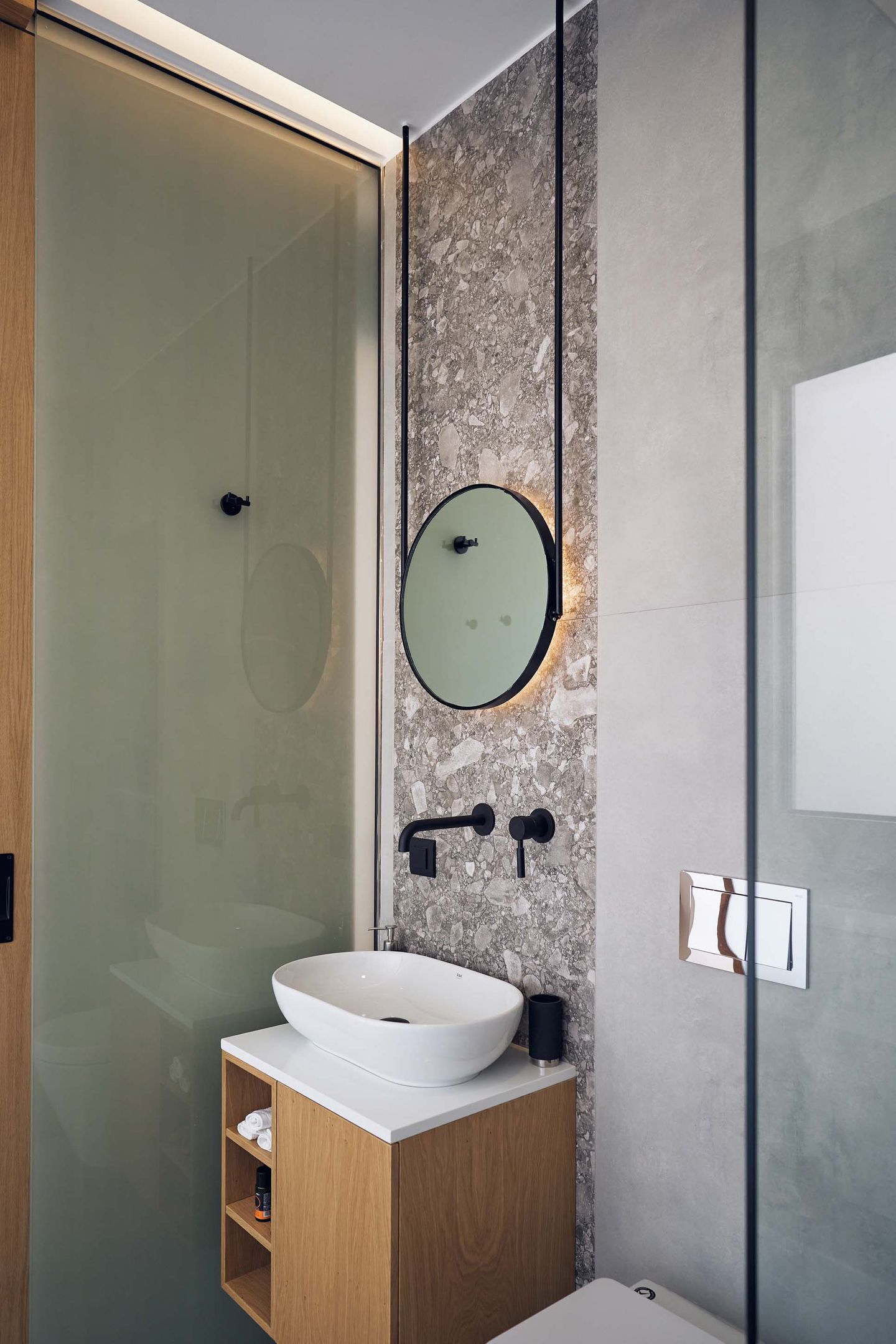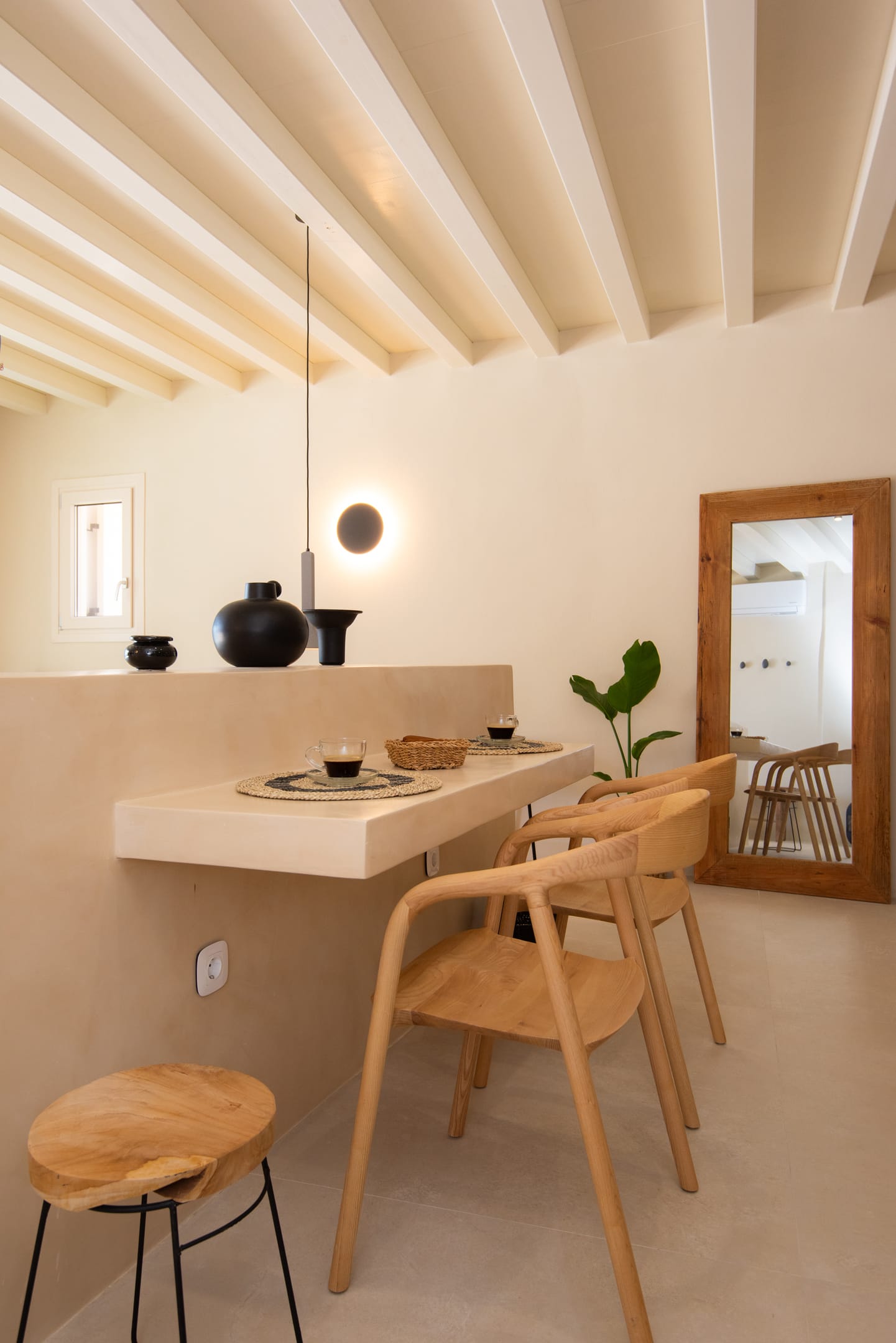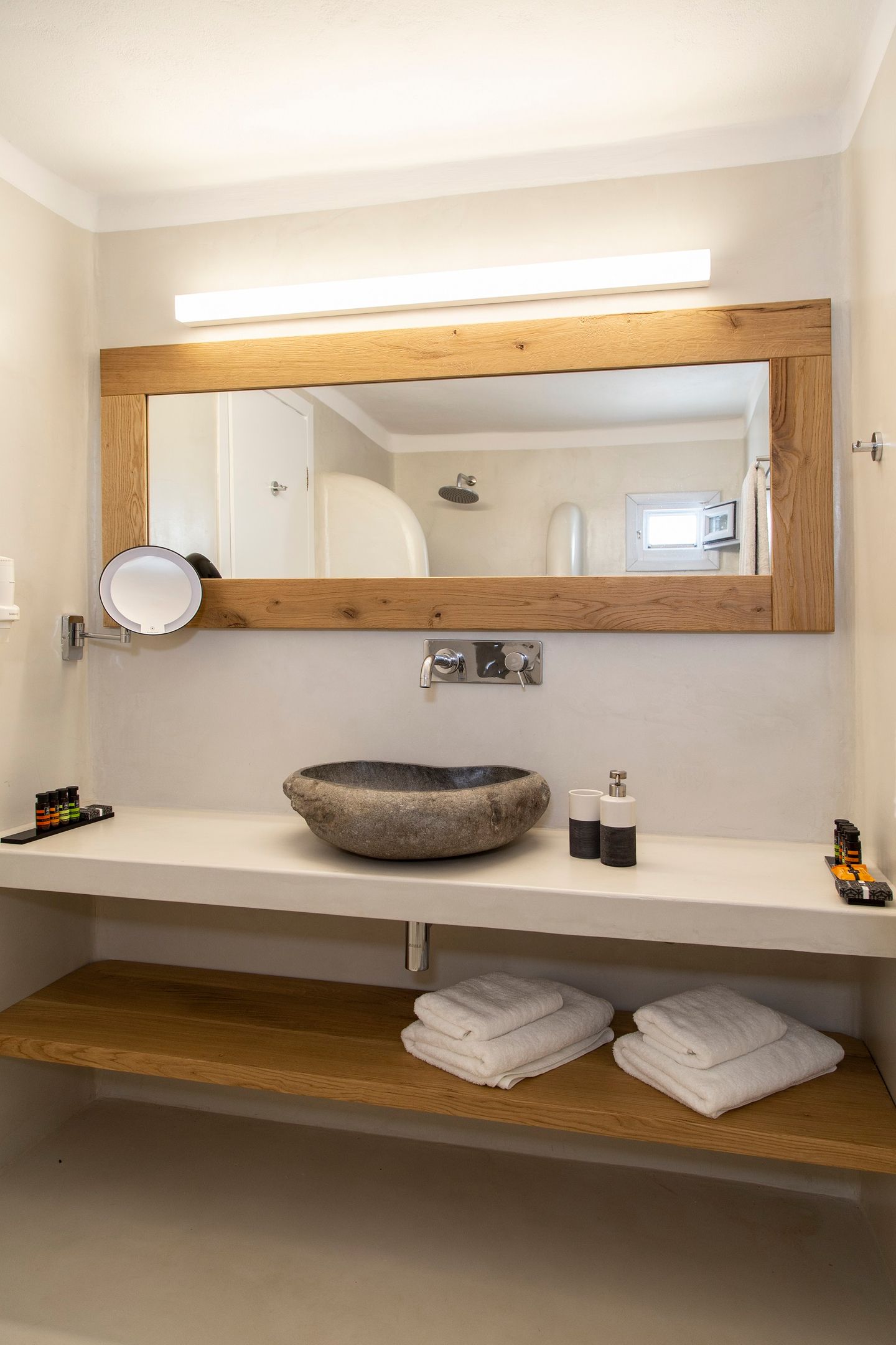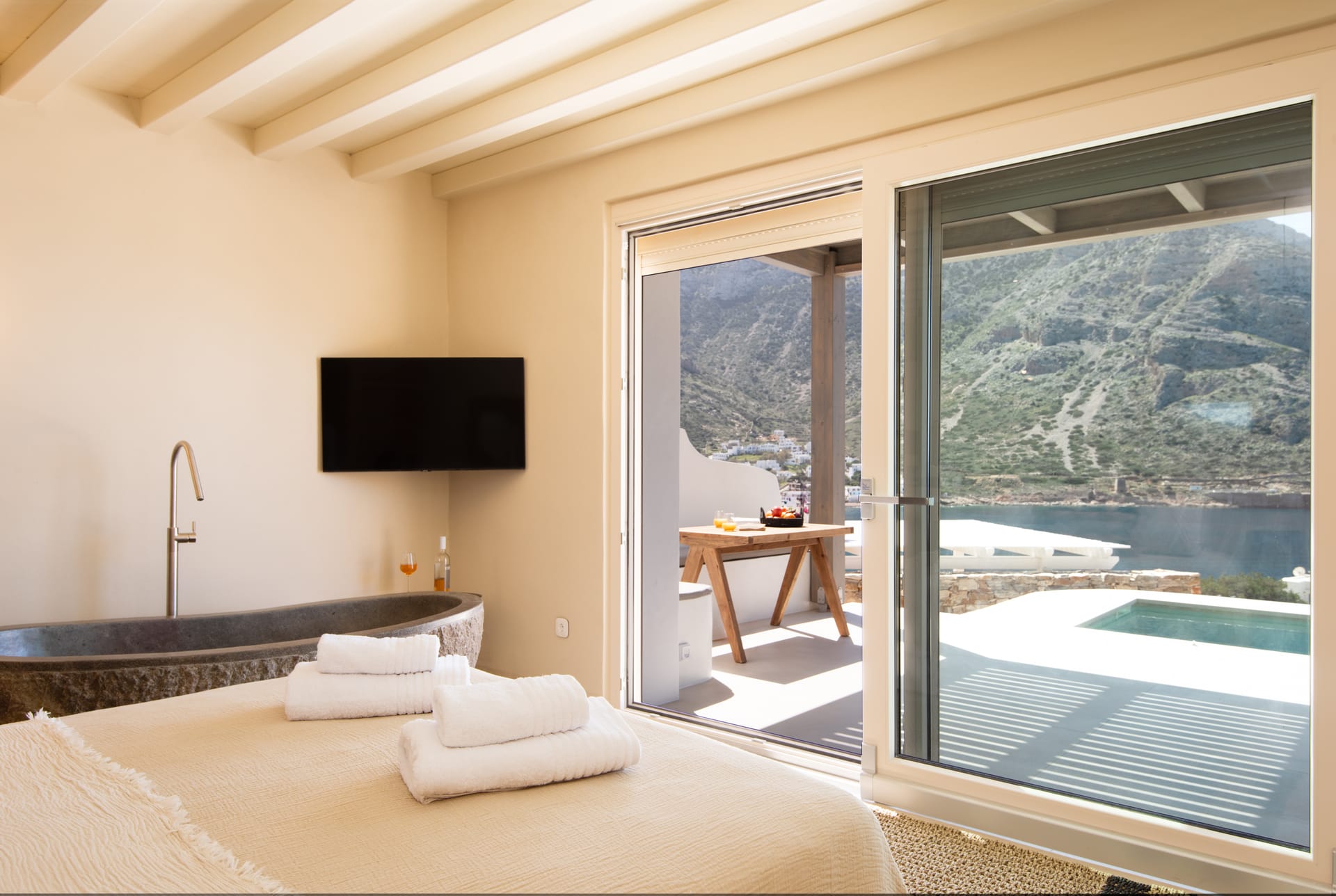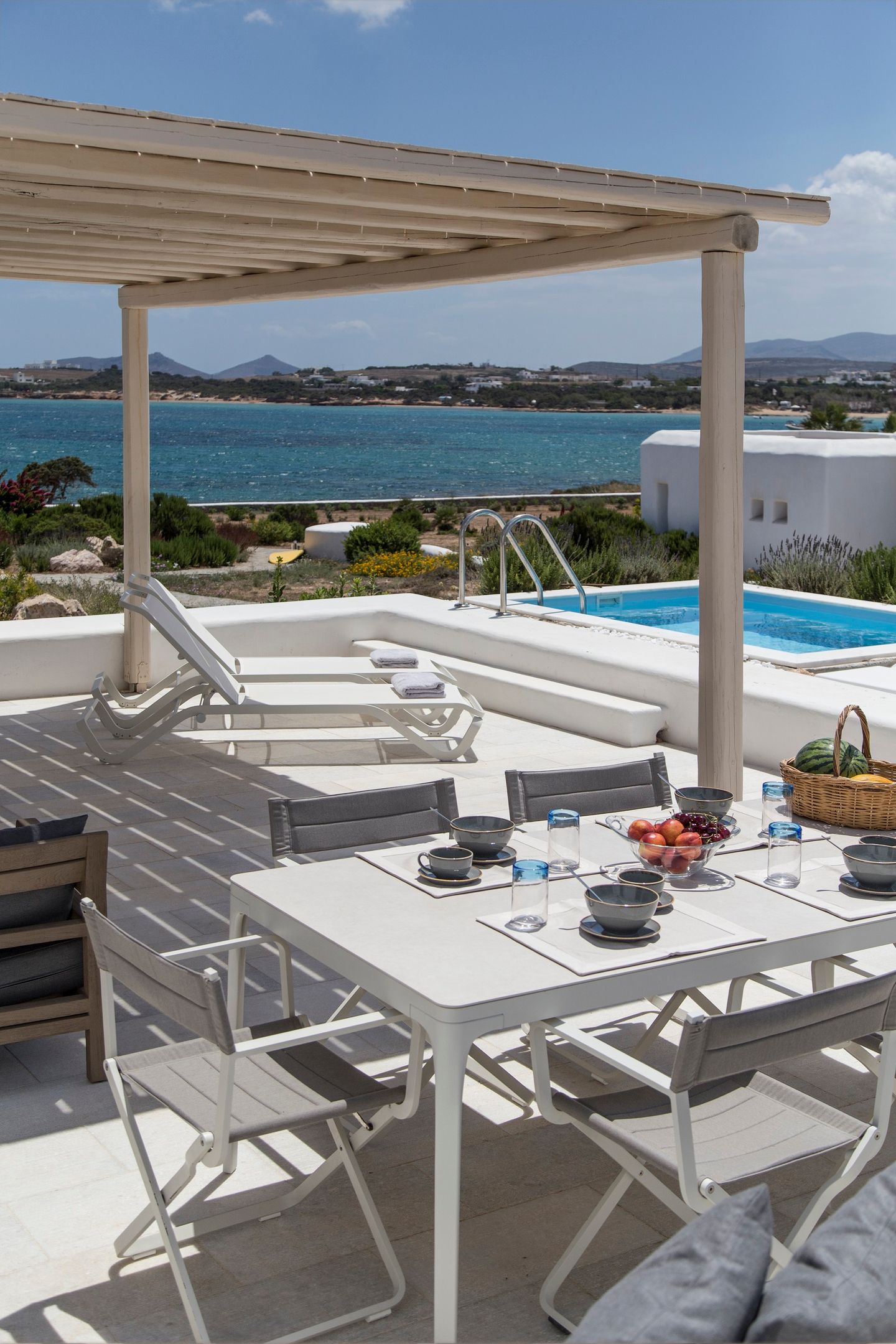 Getting out, the view will definitely impress you! Swimming in the outdoor pool or drinking a glass of wine above the sea will offer you the most awesome experience you may ever have. Sunbeds, a shower, and a table with chairs complete the outdoor area. Let your kids swim with safety as there is a specific part for them in the pool with a shallow part.
