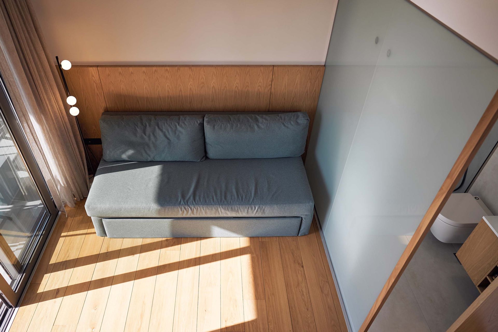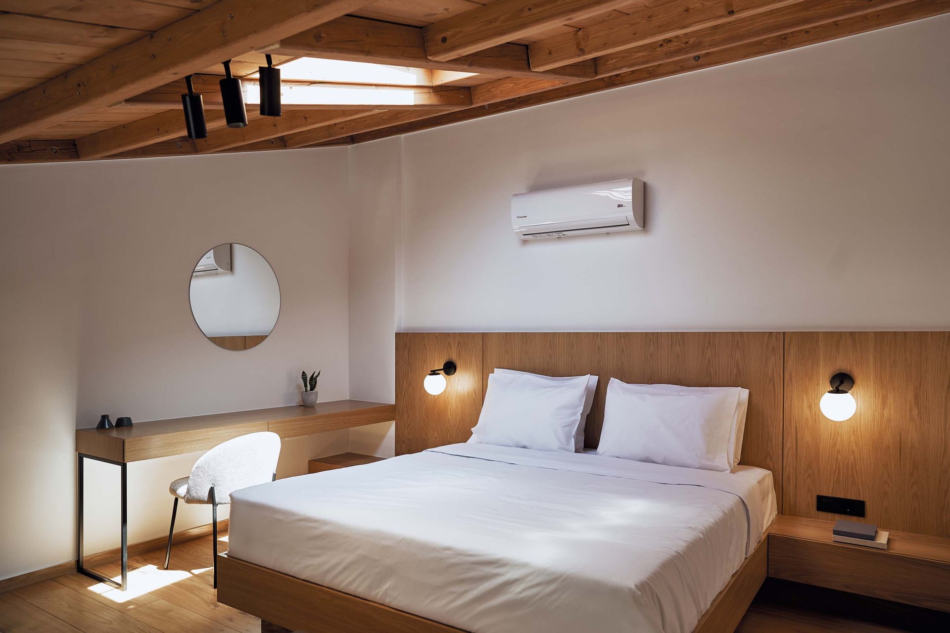 The three bedrooms of the villa are located on the first and the second floor. The first bedroom has a double-sized bed(160*200) and ensuite bathroom with shower, the second one has a double-sized bed(160*200) and an ensuite bathroom with a bathtub while the third one has a king-sized bed (180*200) on the roof and a sofa bed that can be converted into two single beds. Each bedroom has direct access to the balconies, smart TV with satellite channels, free Wi-Fi access, bath amenities (shampoo and shower gel) linens and towels (pool and bath) for all the guests, a hairdryer and high quality of mattresses.