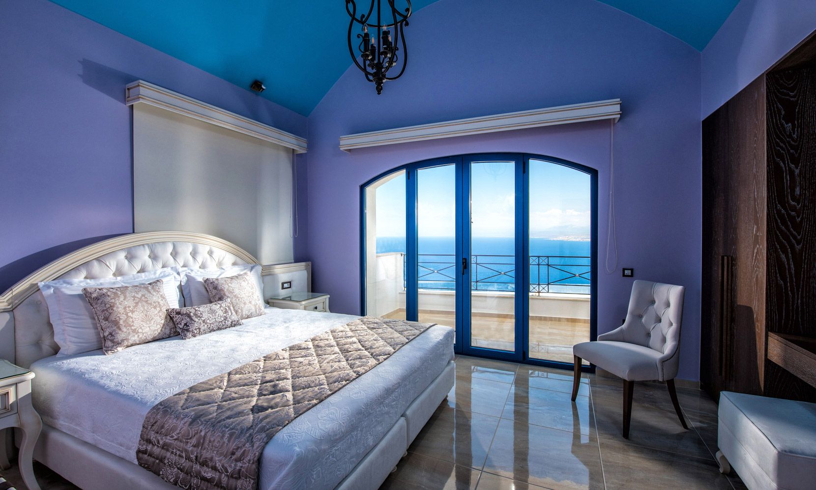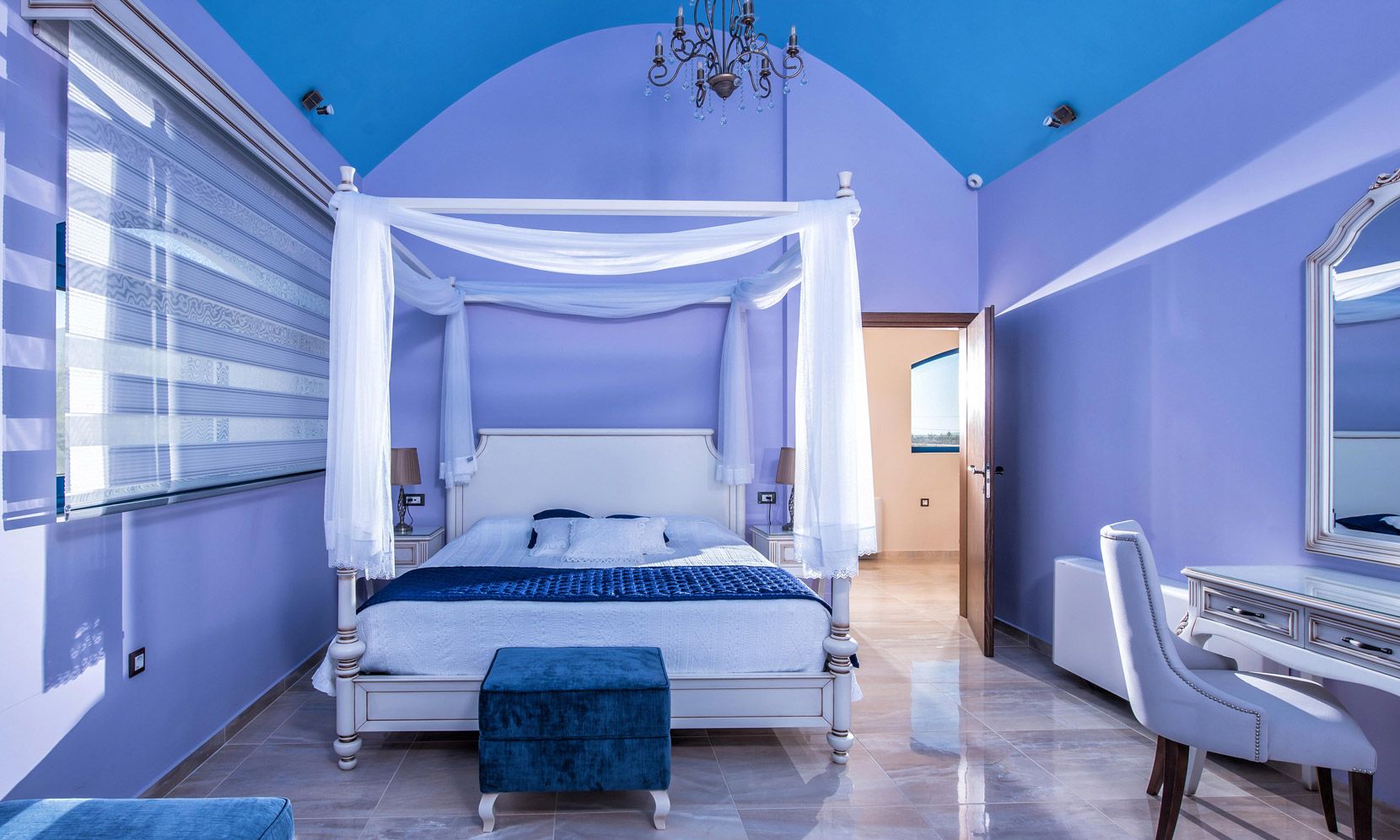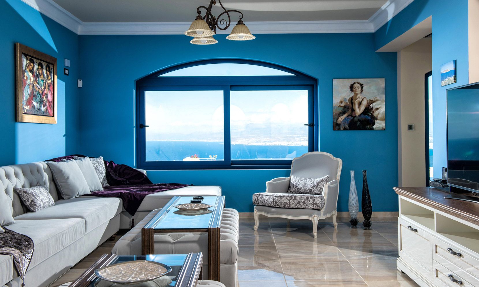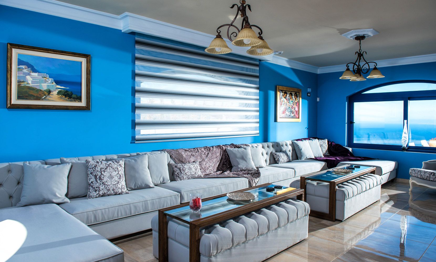 Villa Pauline sits atop a dramatic cliff that makes it seem like the dividing line between the sea and sky. Shining bright white for all to see, it stands against the bold blue seas in glorious contrast that immerses our guests in the true Greek Island experience. Villa Pauline was designed to reflect the architecture found in the Caldera, where classic white buildings and blue-domed roofs reflect the bright Greek sun.