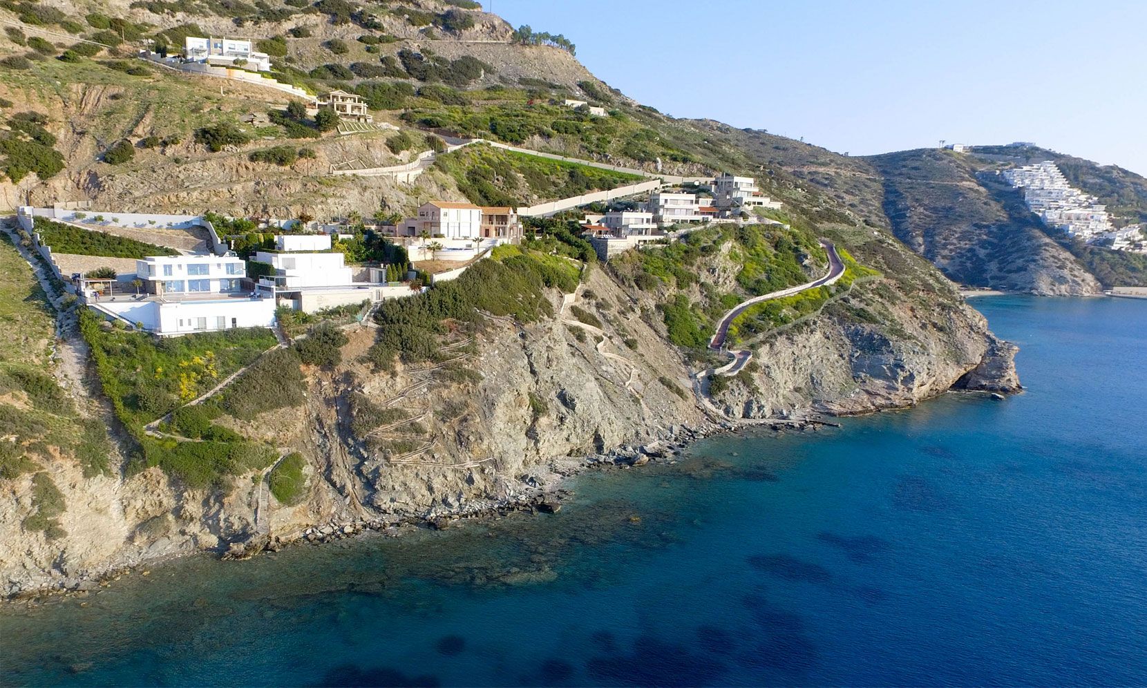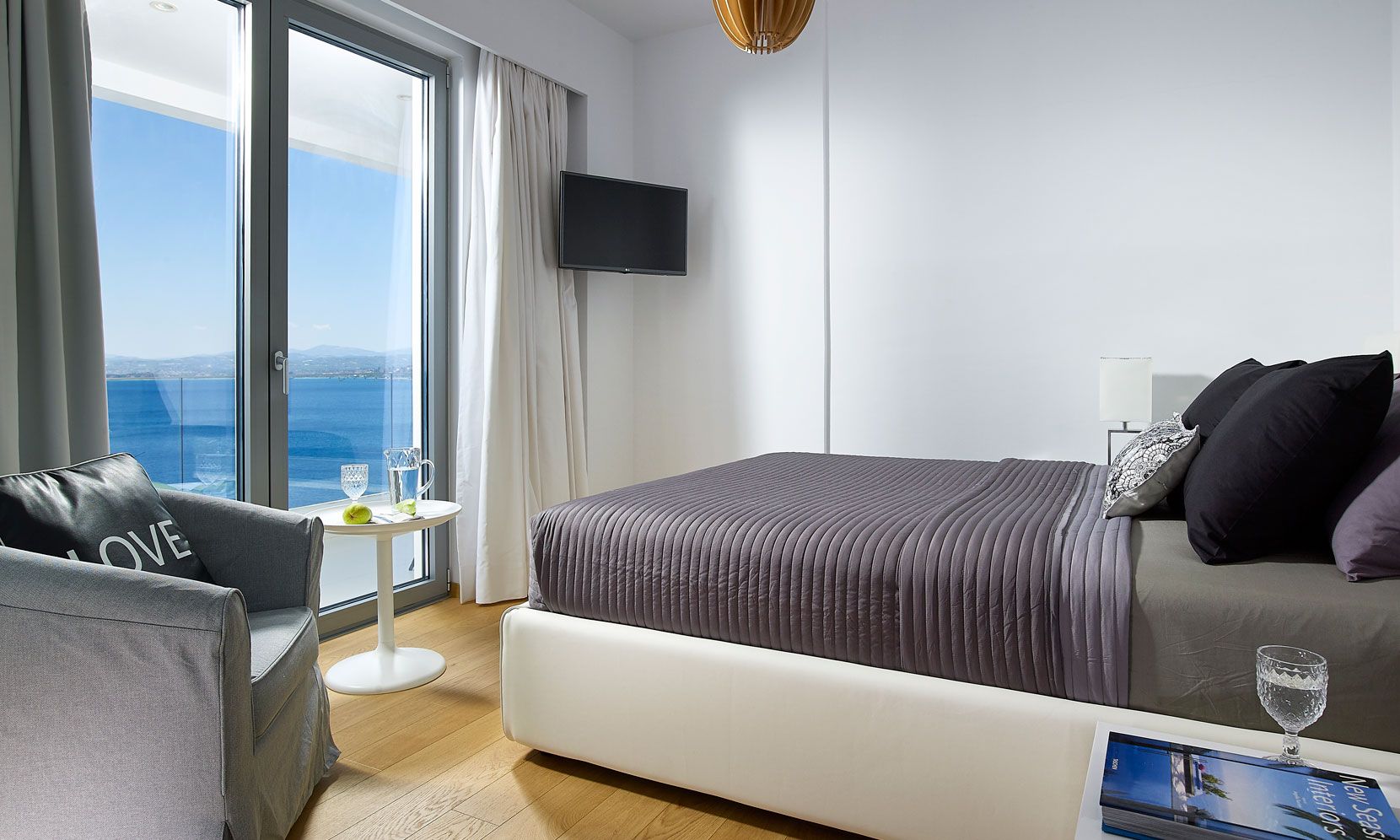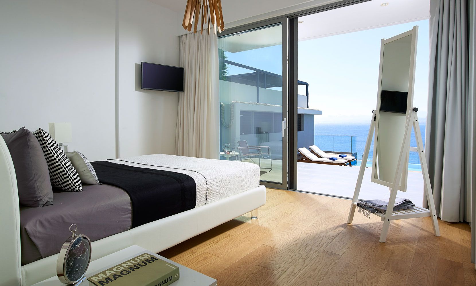 Luxury Crete Villa Tyrion is a brand new seafront stylish escape, build on a hilltop, just 25m from the turquise waters of Heraklion Gulf in the Cretan Sea, Greece. It features 5 en-suite bedrooms with a Spa-inspired master bedroom, wrap around balcony with stunning sea views, a private Gym, an Infinity Pool, private Beach and an additinal apartment on the bellow.
