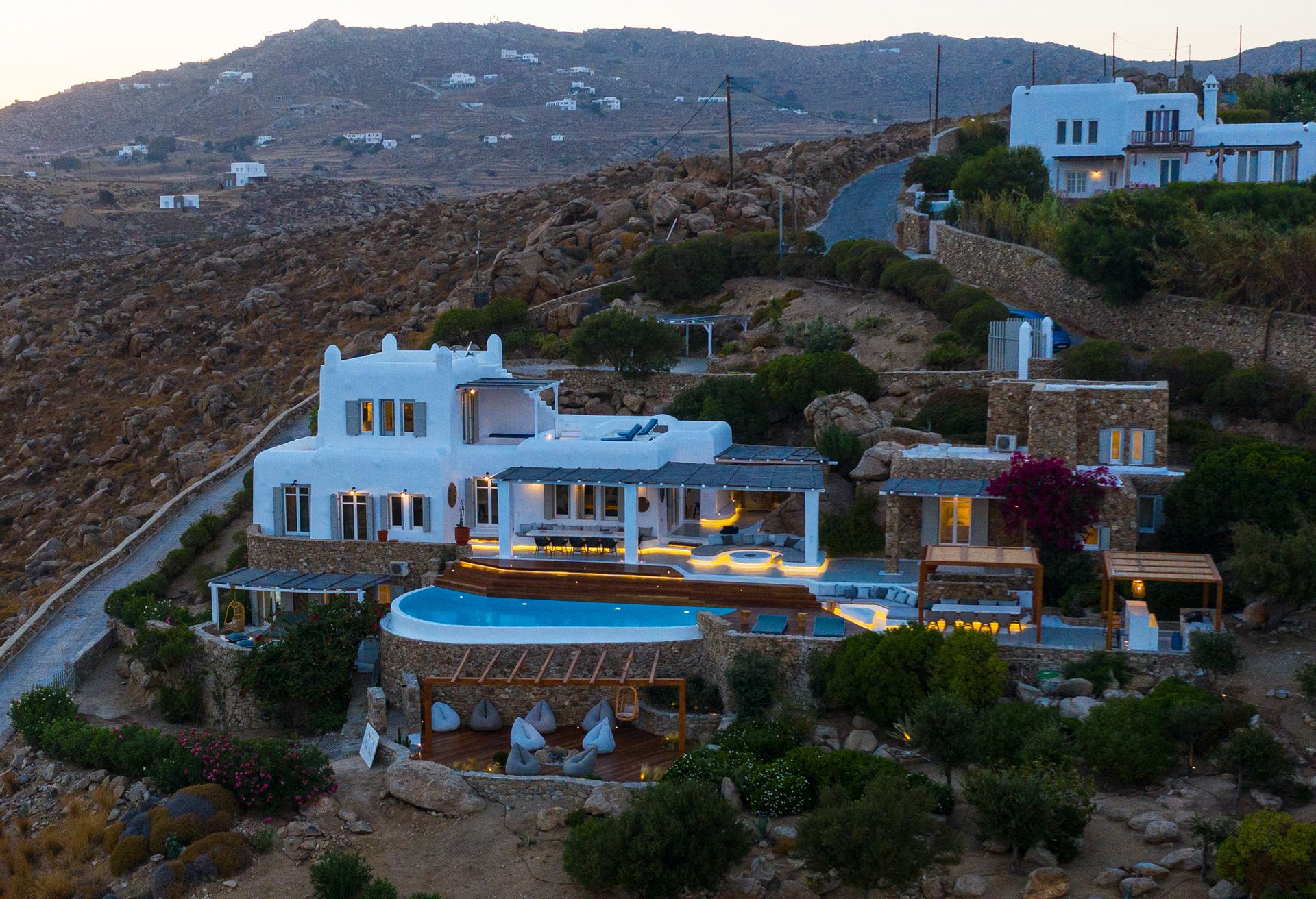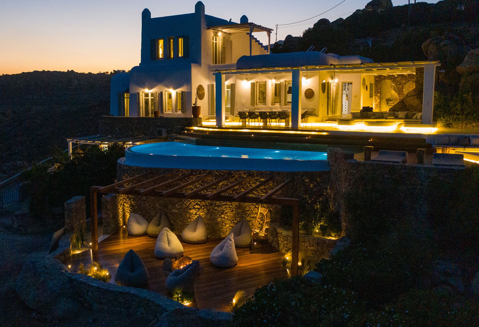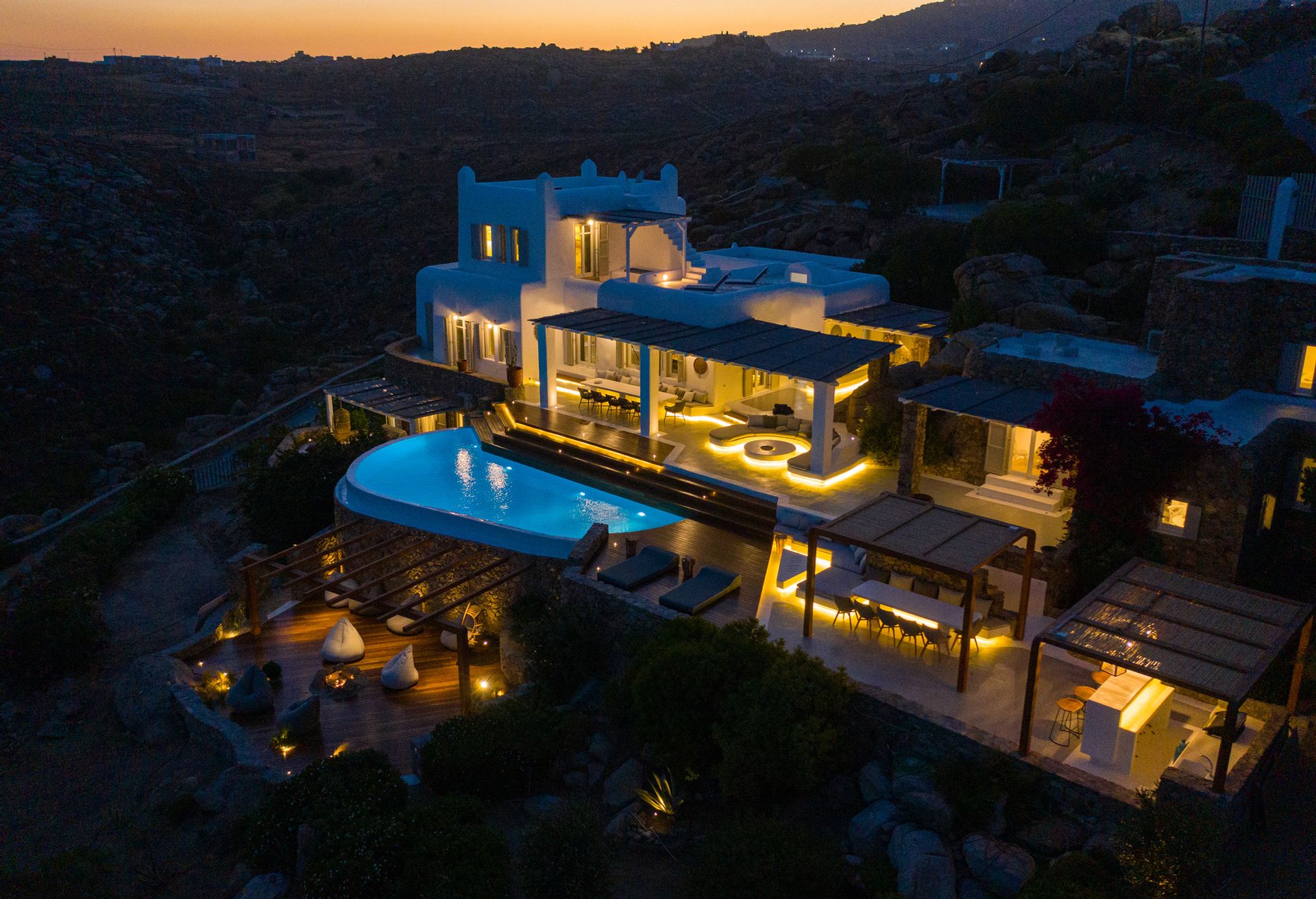 Outside there are a private yard and a balcony, overlooking the Aegean Sea and the most famous sunset, with a dining area for 6 persons to enjoy alfresco dining. In addition, there are an outdoor private heated hydro massage spa (for 5 persons) and two communal use swimming and sunbathing pools, which combined with the perfect sea view, will keep you there the whole day. The luxury combined with the ultimate privacy offers an unforgettable stay and a unique experience.