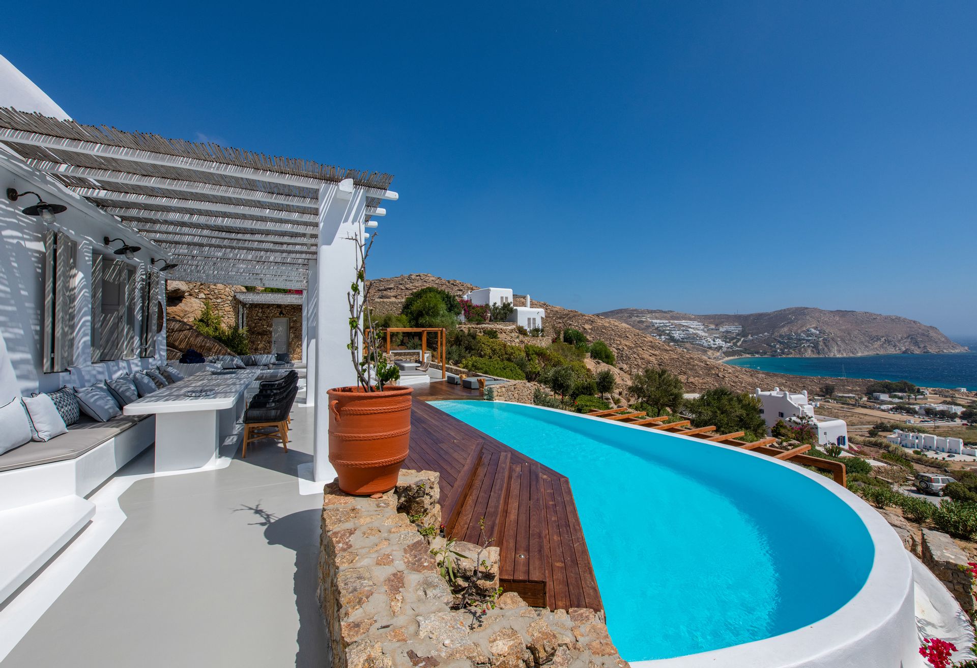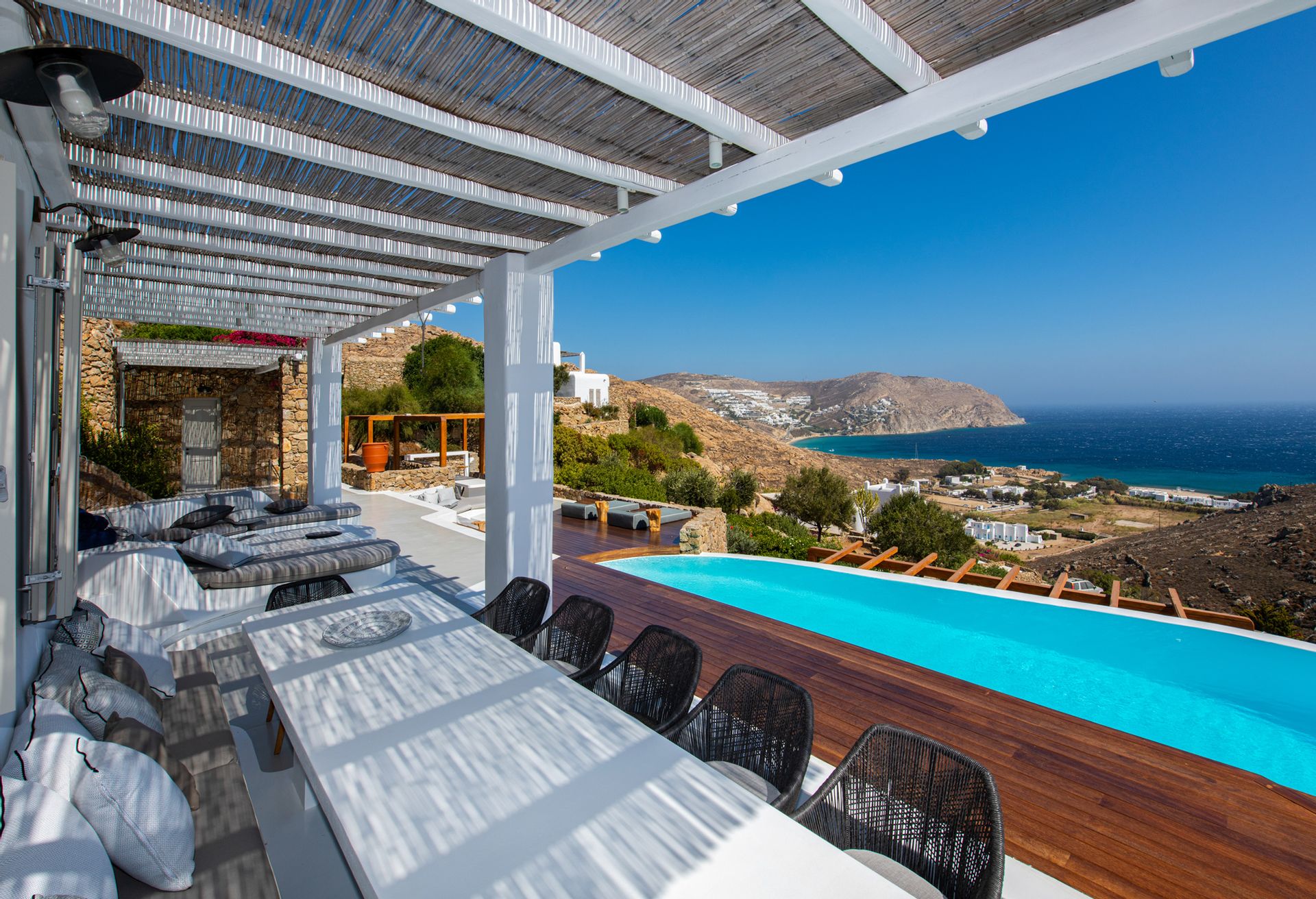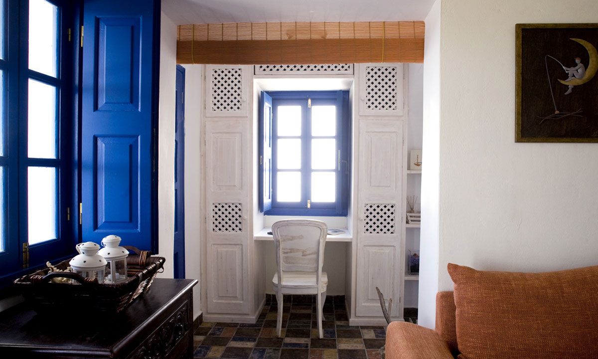 Outside there are a private yard and a balcony, overlooking the Aegean Sea and the most famous sunset, with a dining area for 6 persons to enjoy alfresco dining. In addition, there are an outdoor private heated hydro massage spa (for 5 persons) and two communal use swimming and sunbathing pools, which combined with the perfect sea view, will keep you there the whole day. The luxury combined with the ultimate privacy offers an unforgettable stay and a unique experience.
