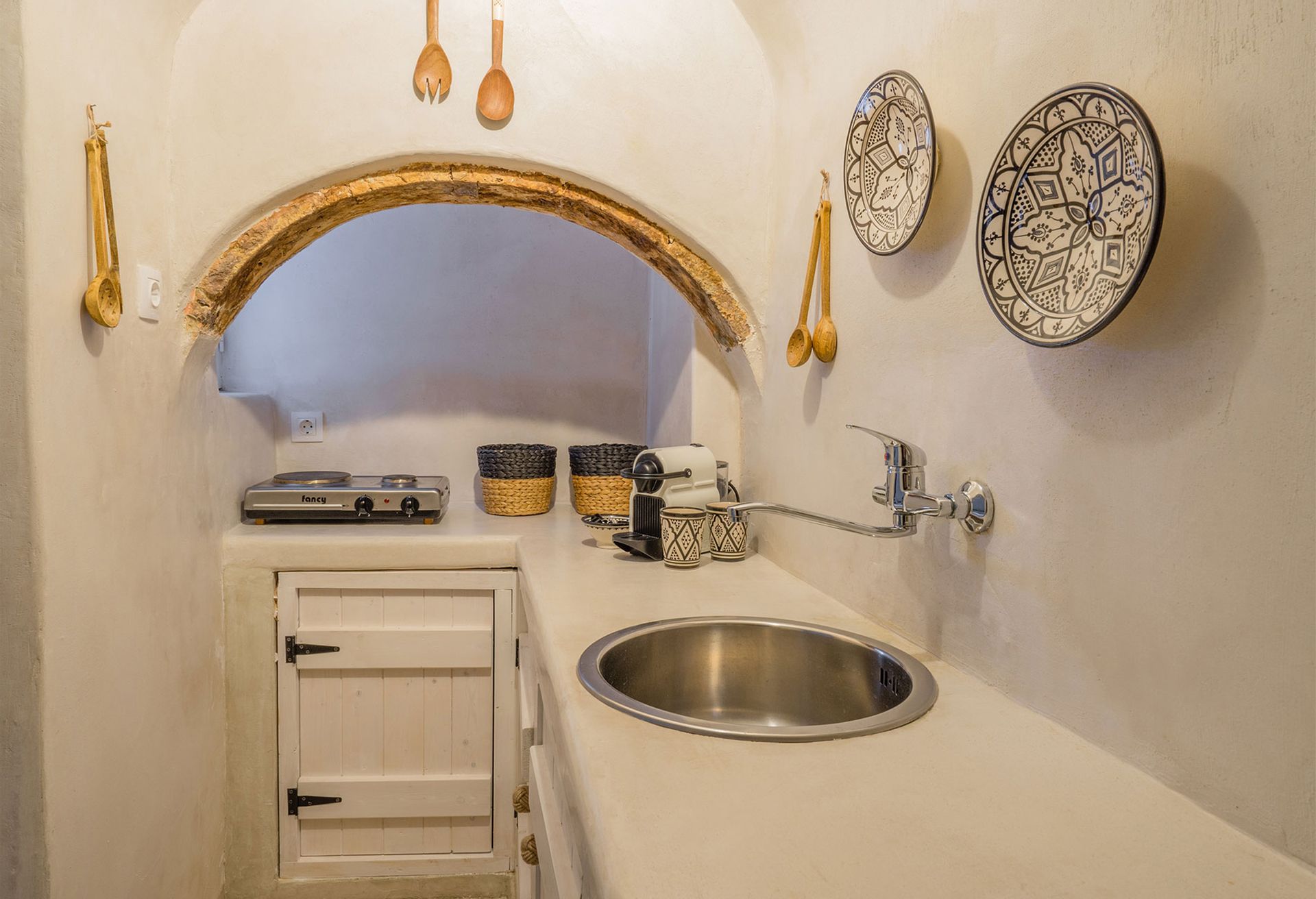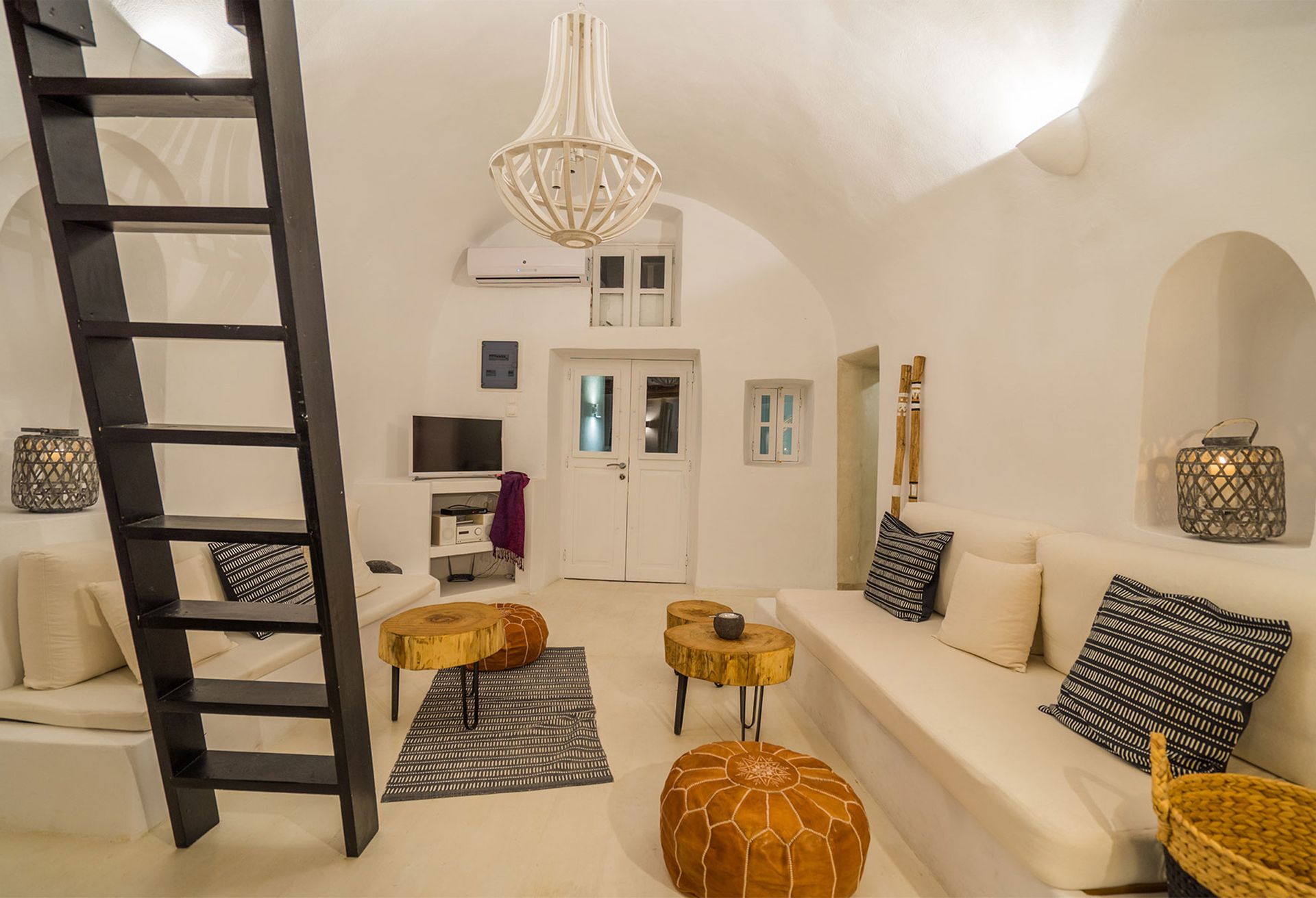Uniquely built inside the Caldera rock in traditional Santorini architecture style, the cave-like Villa Earth 1 can accommodate up to 6 guests. Featuring an outdoor heated jacuzzi on the upper floor, overlooking the Aegean Sea and the volcano, three distinct charming bedrooms and a terrace with sea view, the Villa Earth 1 is the perfect setting for an unforgettable, indigenous experience in Oia, Santorini.