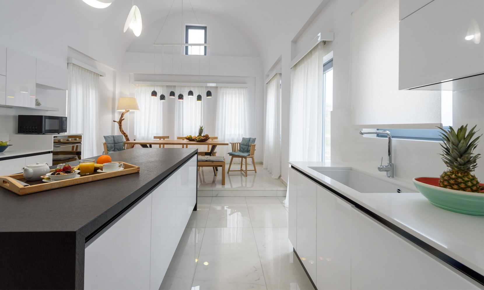 Surrounded by 32 acres of vineyard, Villa Lilium offers panoramic sea view to the South Coast of Santorini. Among its luxurious facilities is provided Heliport, Tennis Court and a stone – built underground Cellar with sitting and dining area, where our valued guests may taste some of the rarest and awarded wine and champagne labels.