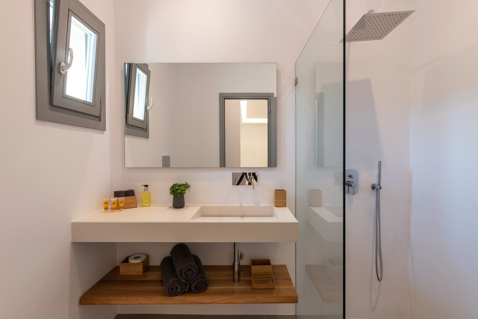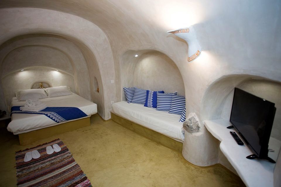 Villa Thais Aegean features a comfy queen size bed, air conditioning, a sitting area with table and chairs, a mini-fridge, and espresso maker, a beautiful bathroom with shower, complimentary toiletries, slippers, bath, and beach towels, flat-screen satellite TV, free Wi-Fi access, fiber optic lighting, and an indoor ultra-cool deep plunge pool.