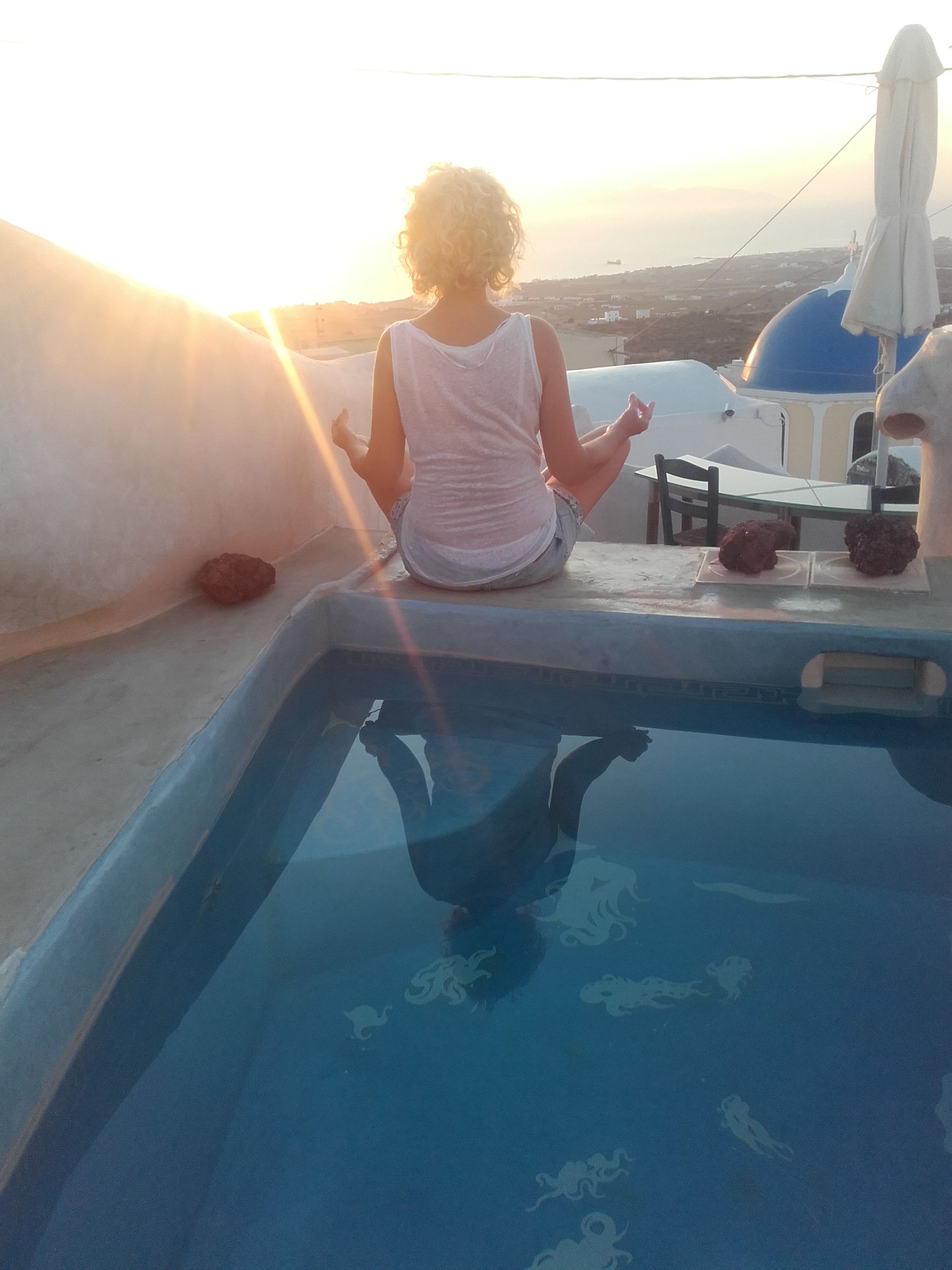 The villa is conveniently located in the entrance of Oia, close to the pedestrian street with all the restaurants, galleries, and shops.