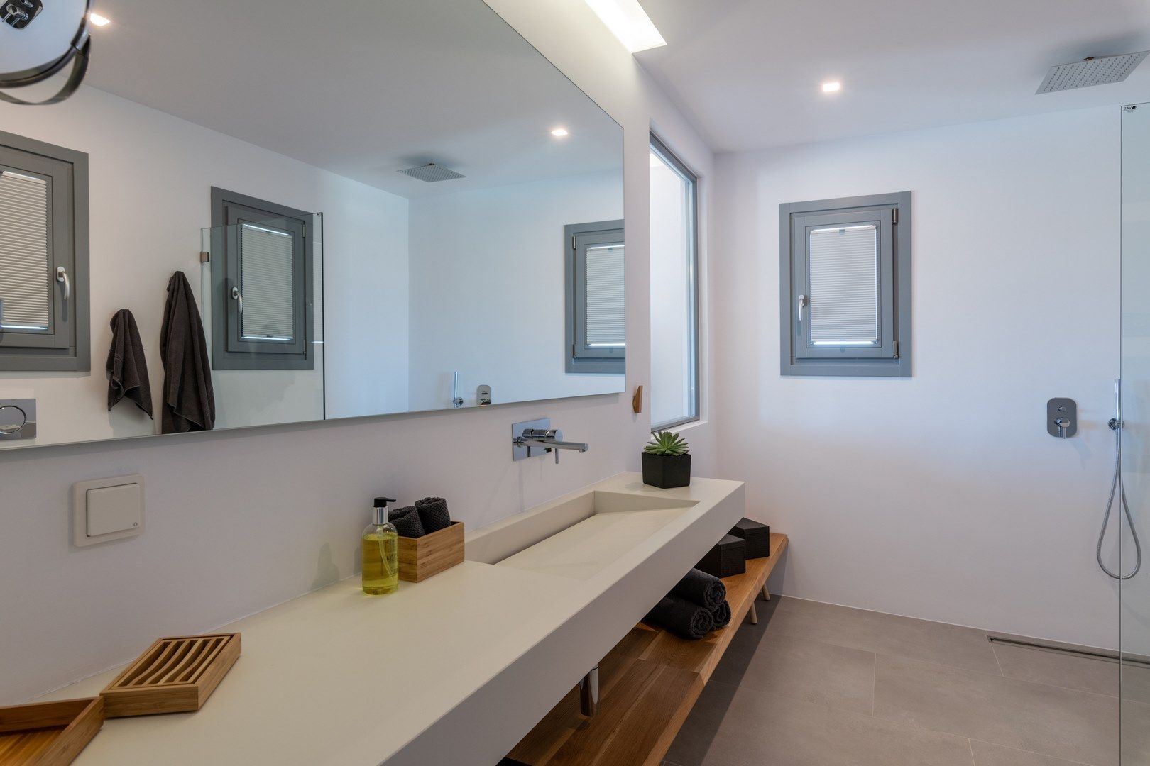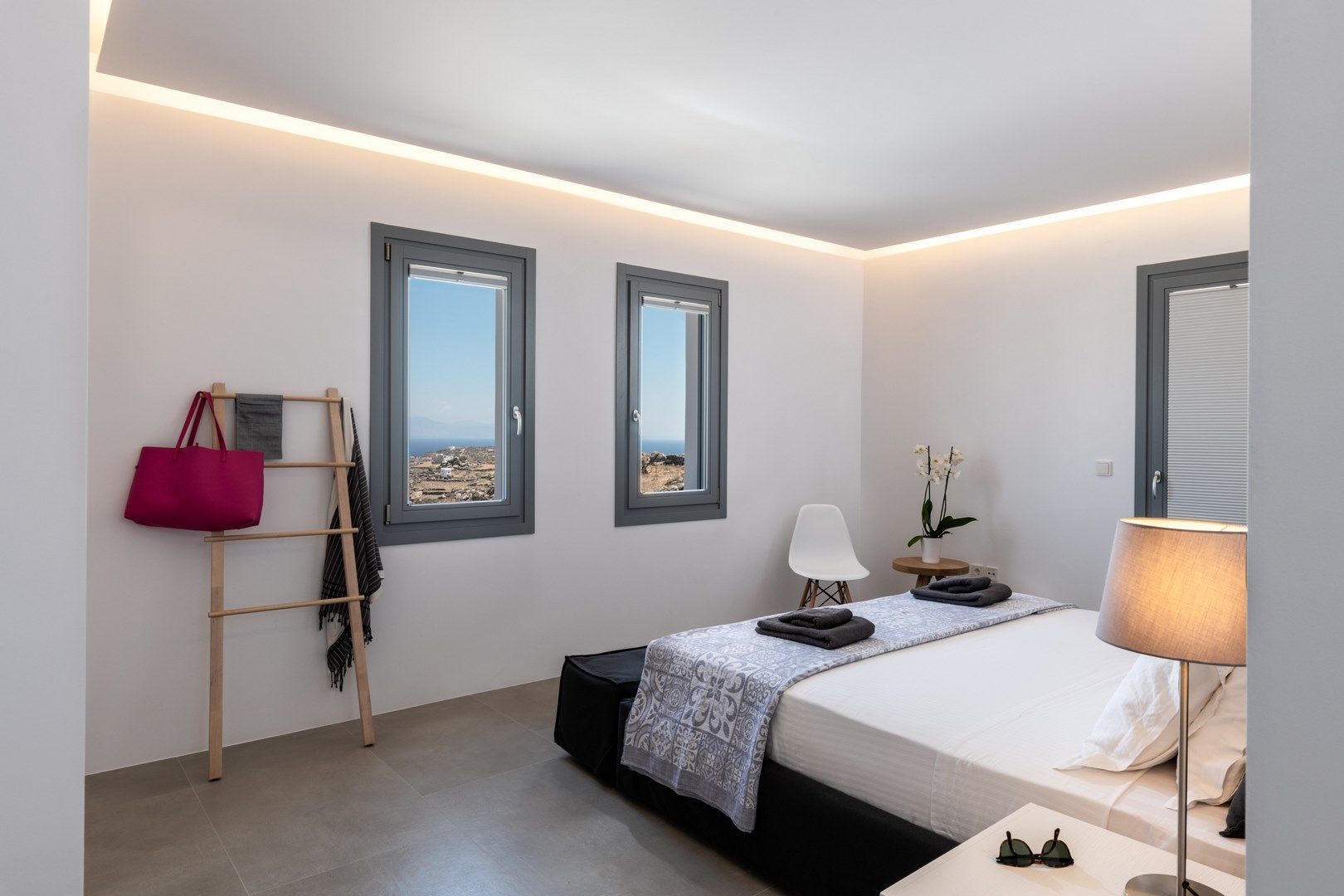 This exceptional 40 square meter villa is like a cozy nest. It has its own terrace on an upper level, enjoying breathtaking views of the Aegean. The terrace is equipped with sunbeds and a chromatherapy Jacuzzi tub, for magical relaxation sessions under the sizzling Mediterranean sun, or a canopy of stars, on a nice, cool night.