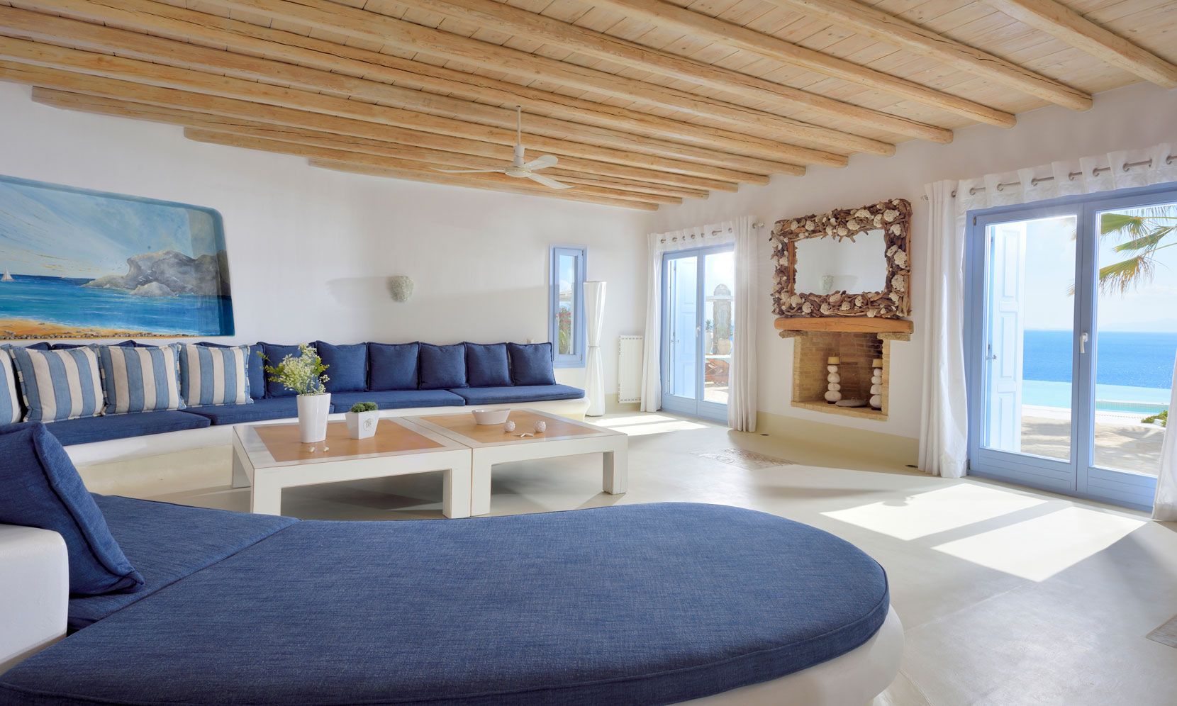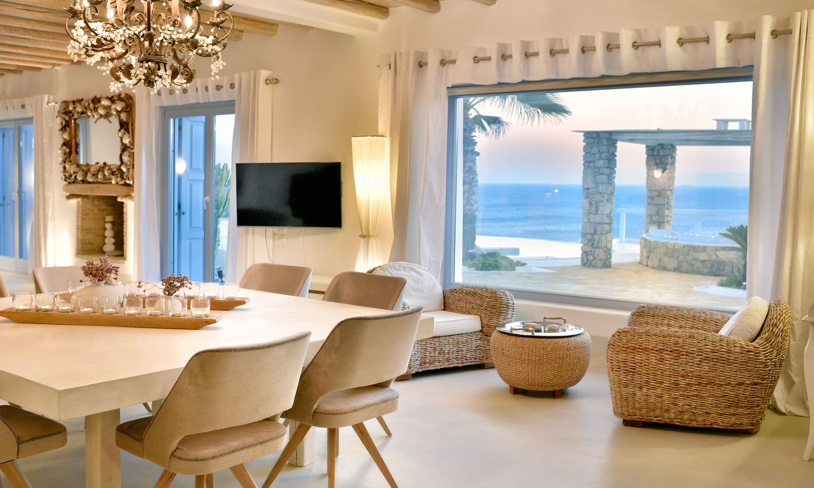 The distances are also extremely convenient: only a 10 minute drive from Mykonos Town, 10 minutes to the airport, just 6 minutes to Psarrou beach and the ever popular Nammos and about 12 minutes to Scorpios.