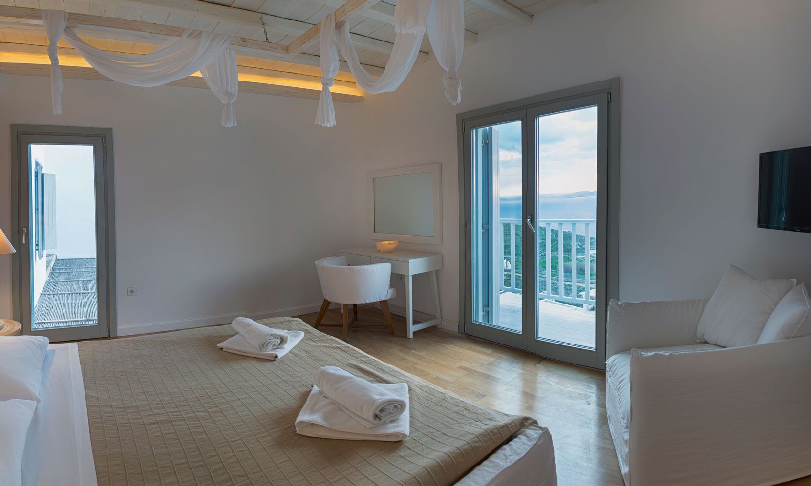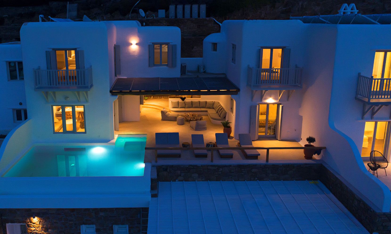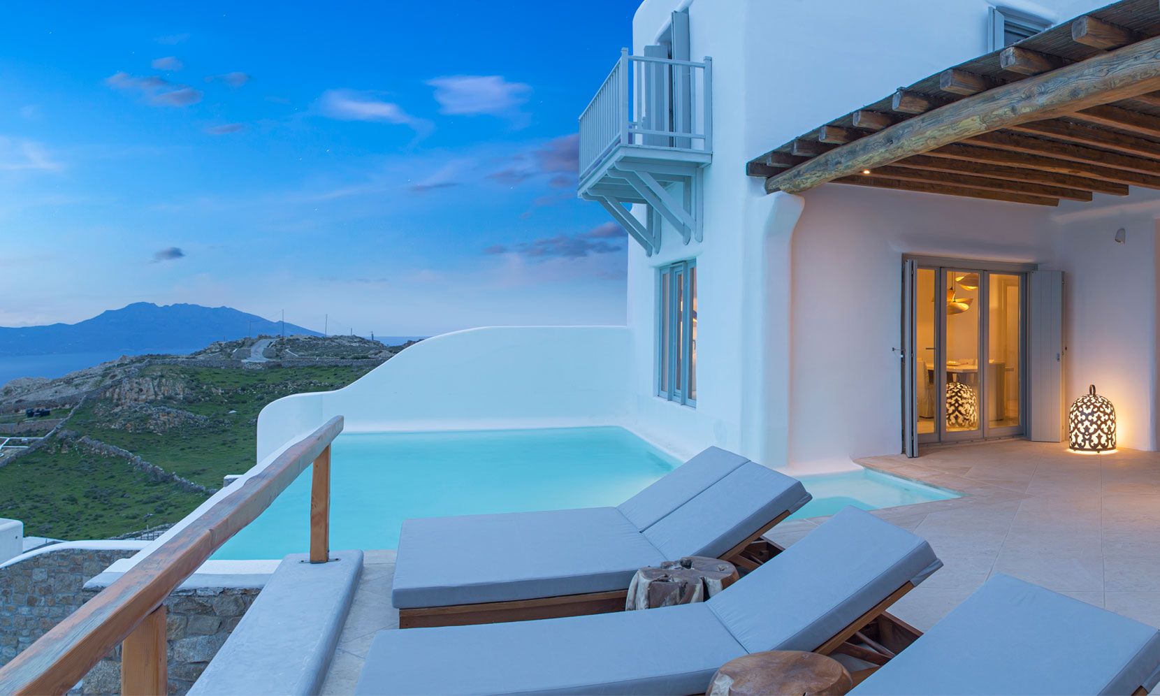 The Luxury Villa Aloe 2 is located at the highest point of the complex, with views that range from island of Tinos to the island of Delos and the sunset within the blink of an eye.
