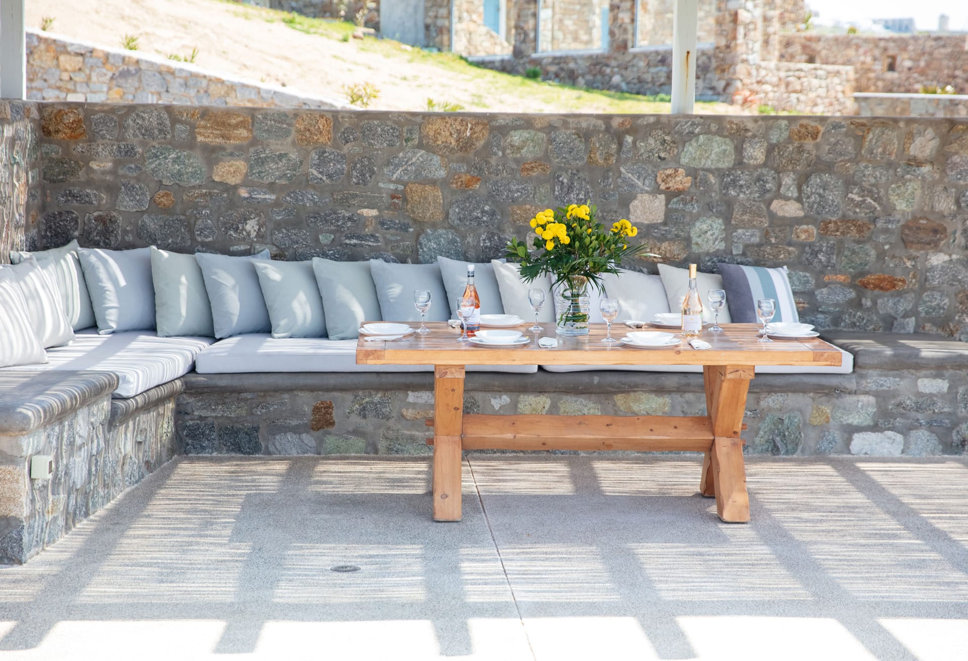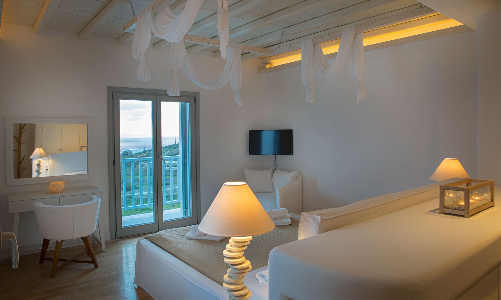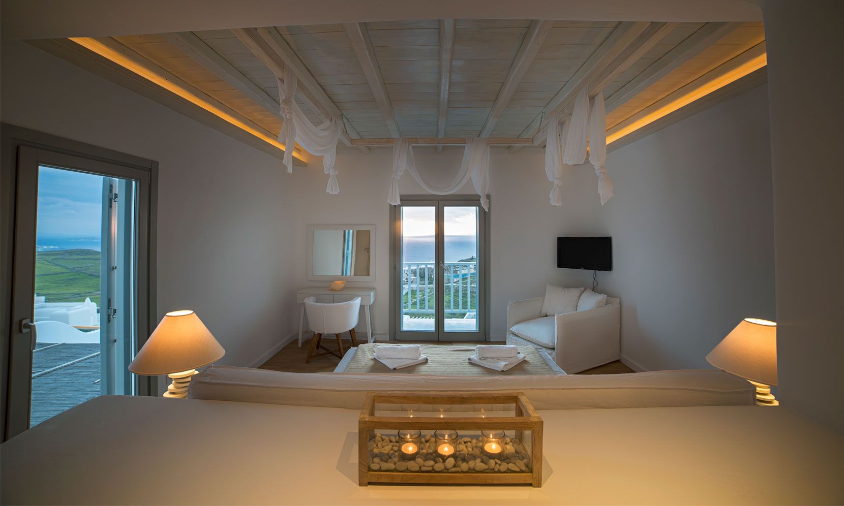 The Luxury Villa Aloe 2 is located at the highest point of the complex, with views that range from island of Tinos to the island of Delos and the sunset within the blink of an eye.