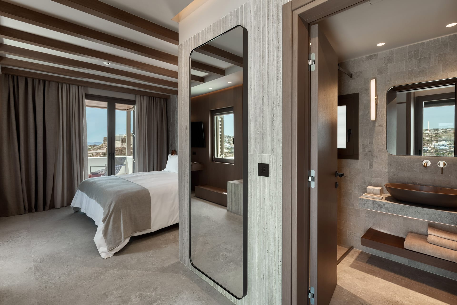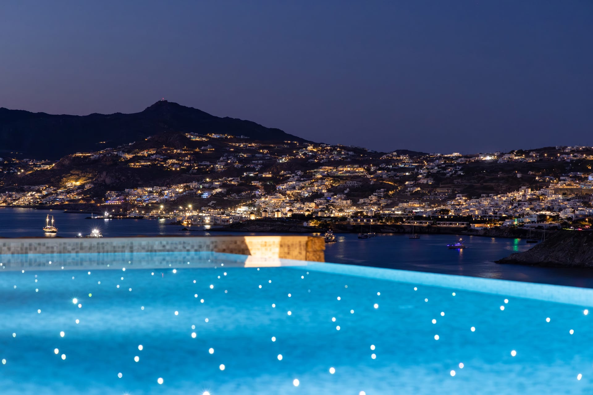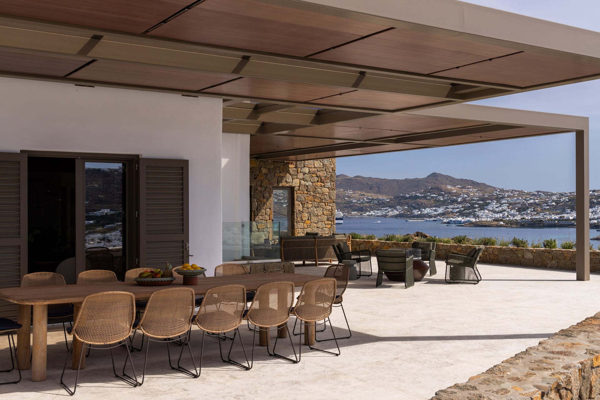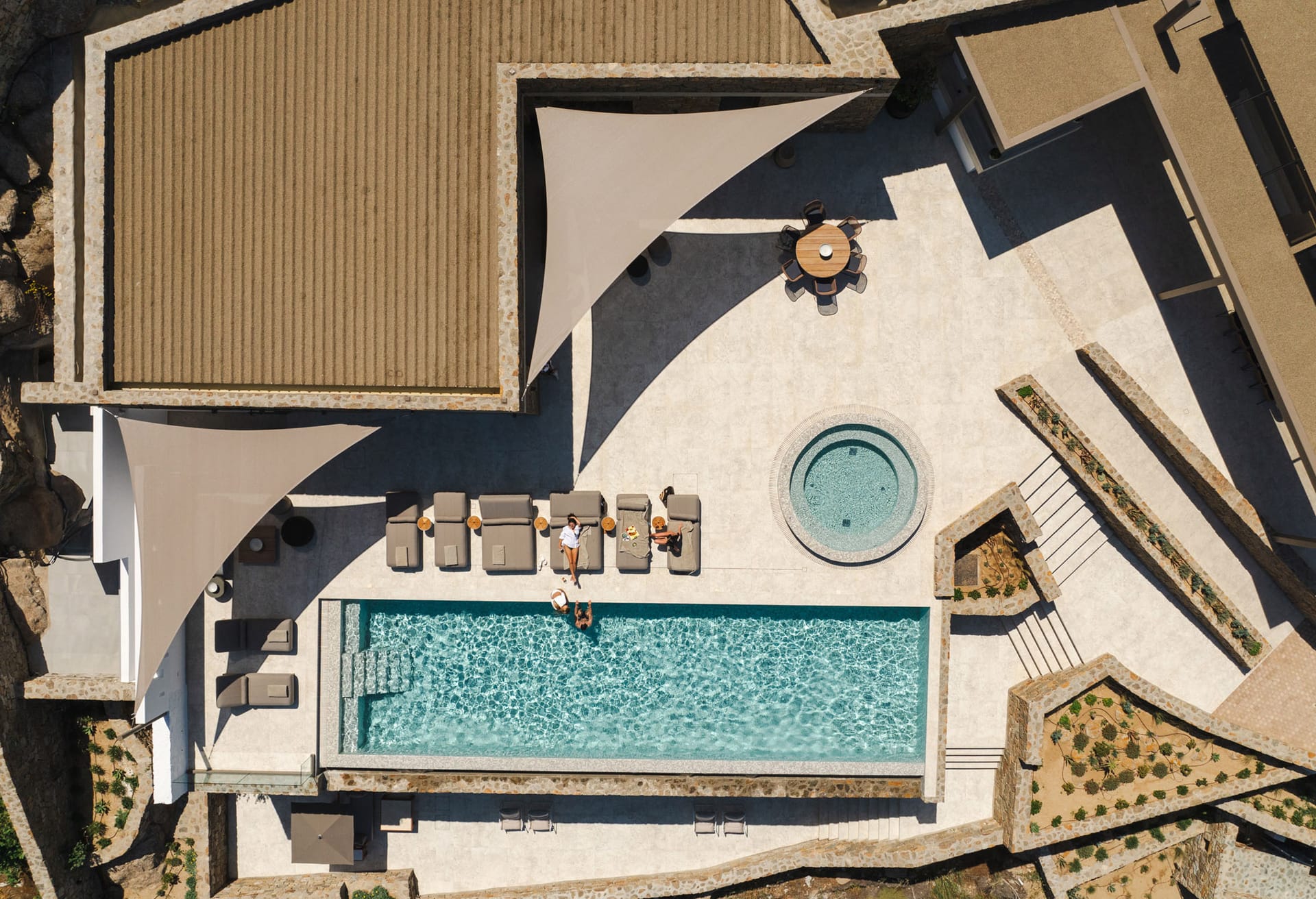 From its elevated setting, guests can take in 180° sea views that stretch to the lights of Mykonos Town and the charm of Little Venice. Whether you’re gathering with family or reconnecting with friends, our Estate feels like a place to belong.