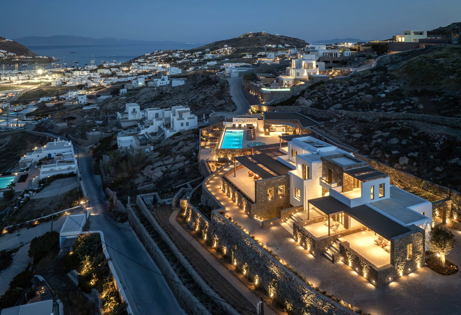 Nestled in the serene hills of Korfos. Nestled in the serene hills of Korfos, Mykonos Villa Amelia offers a refreshing new take on island living. With relaxed elegant style, sweeping views of the Aegean, and thoughtfully designed spaces that feel personal and warm, this 7-bedroom estate invites guests to slow down and simply enjoy.